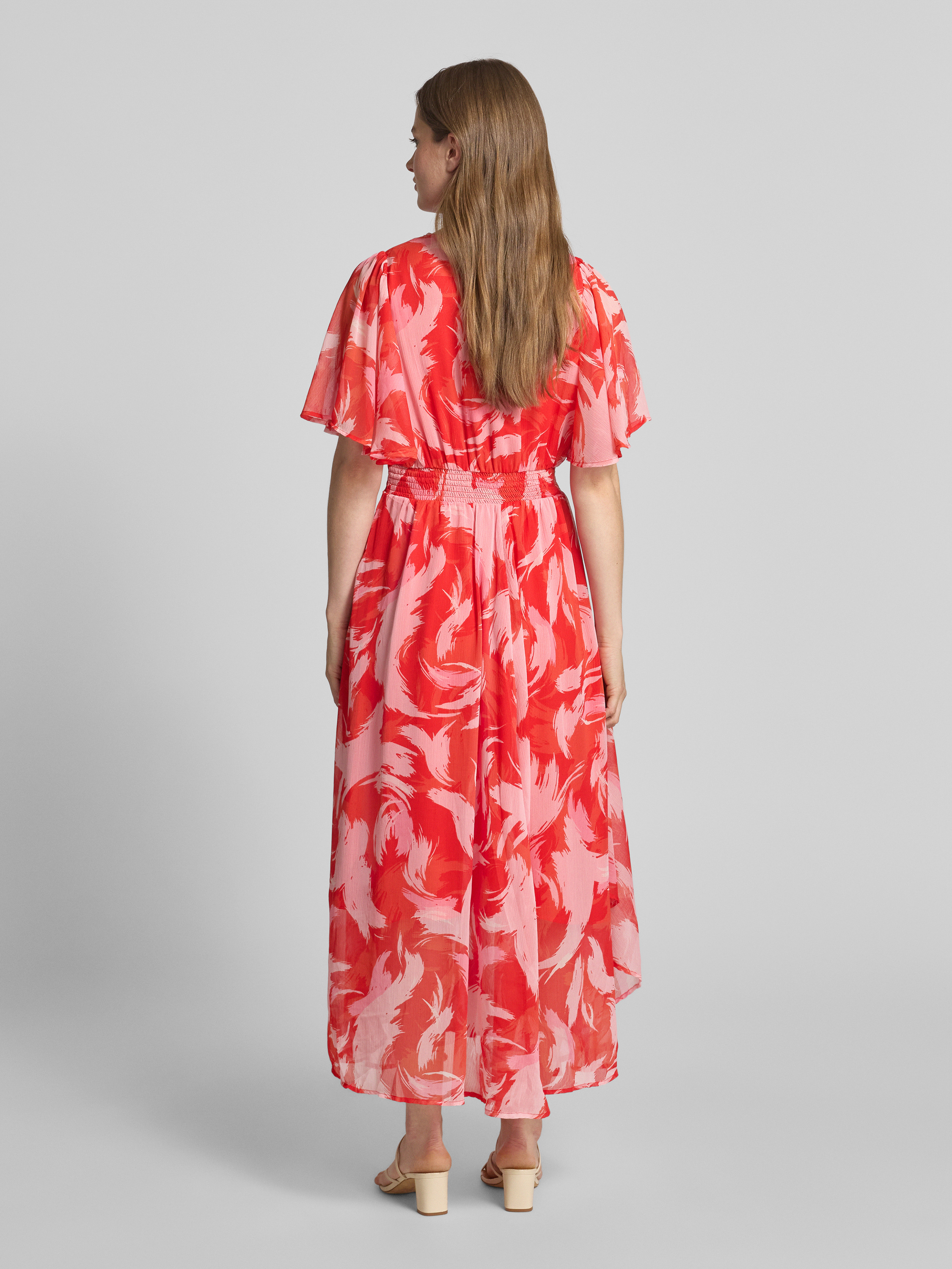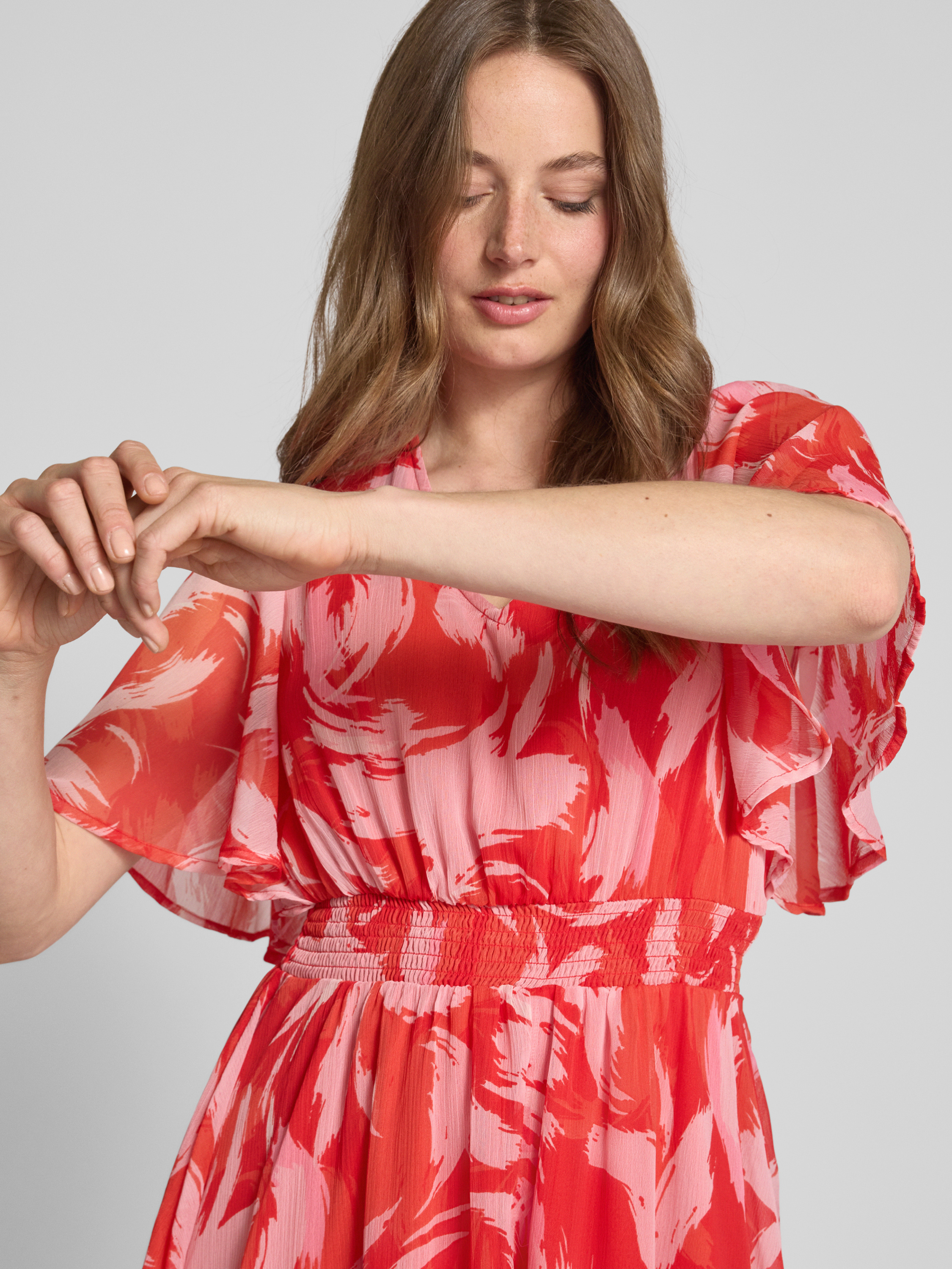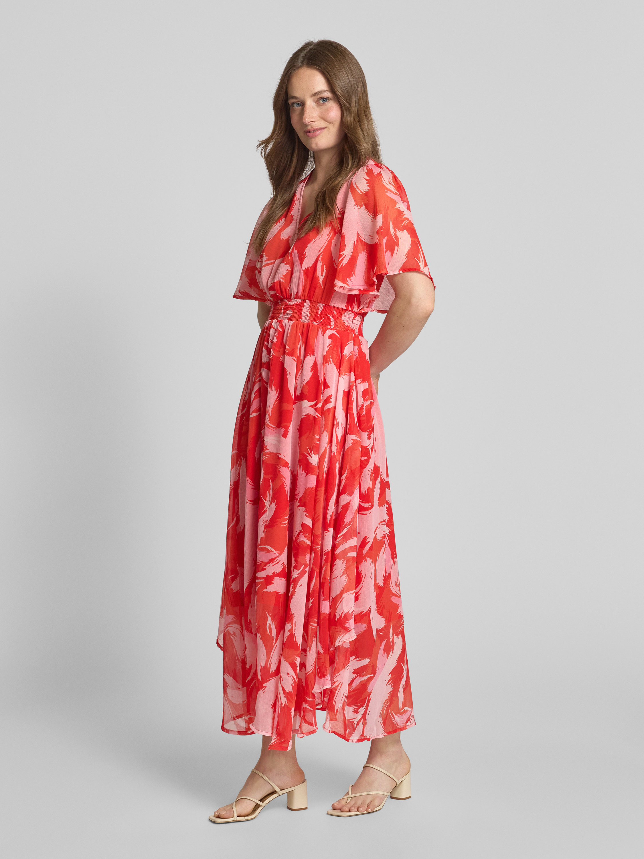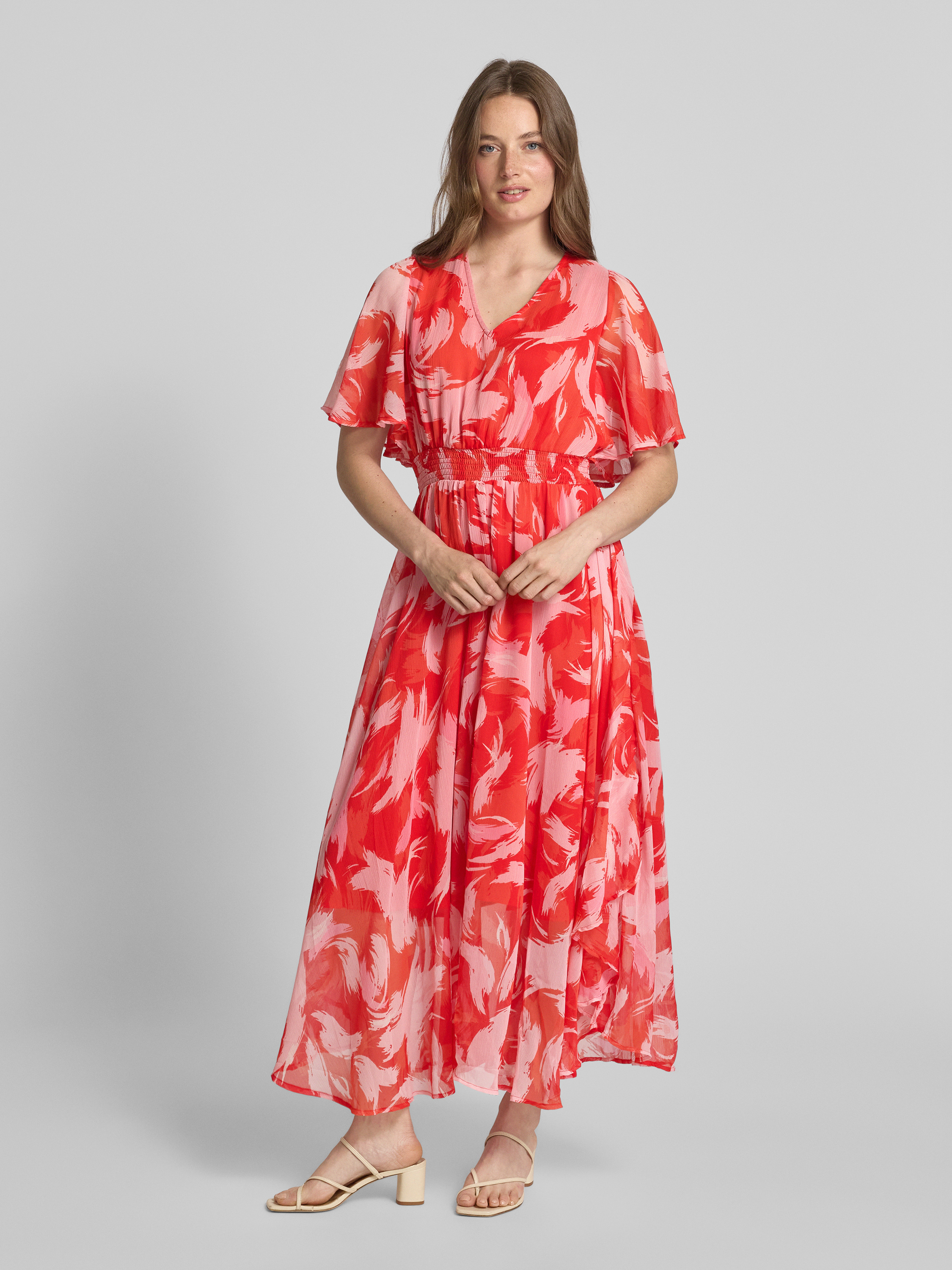 Długa sukienka taliowana ze wzorem na całej powierzchni - czerwony