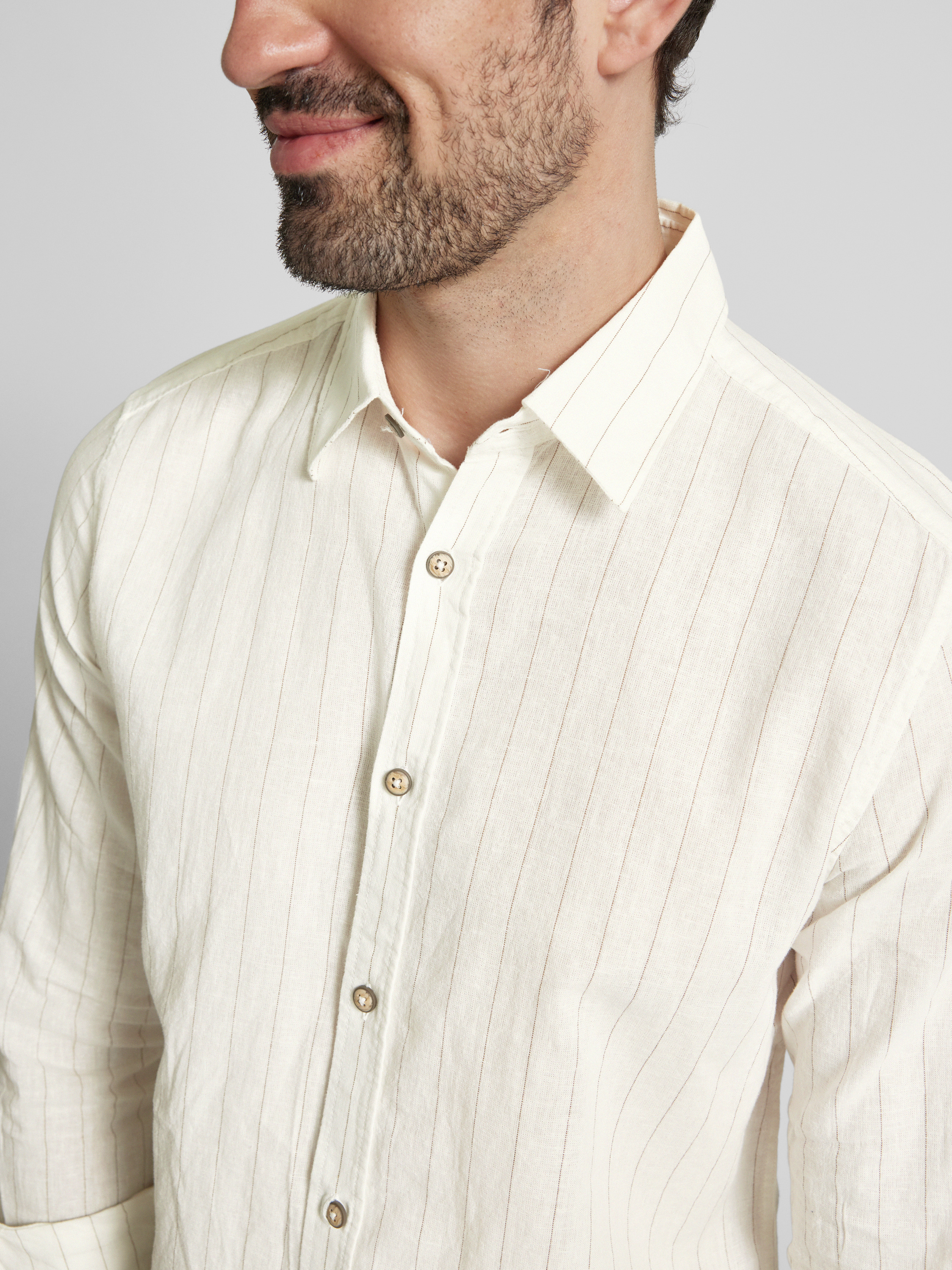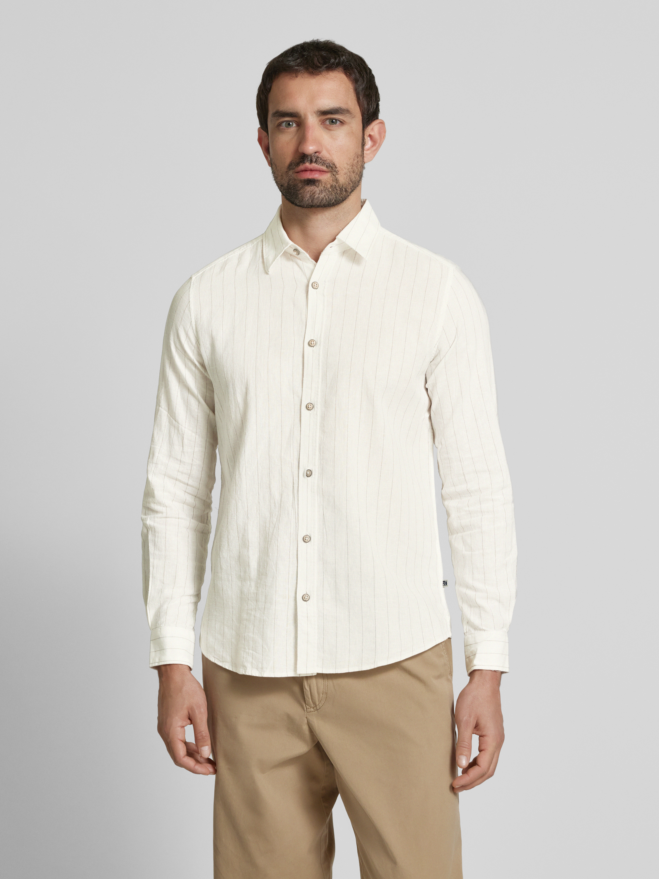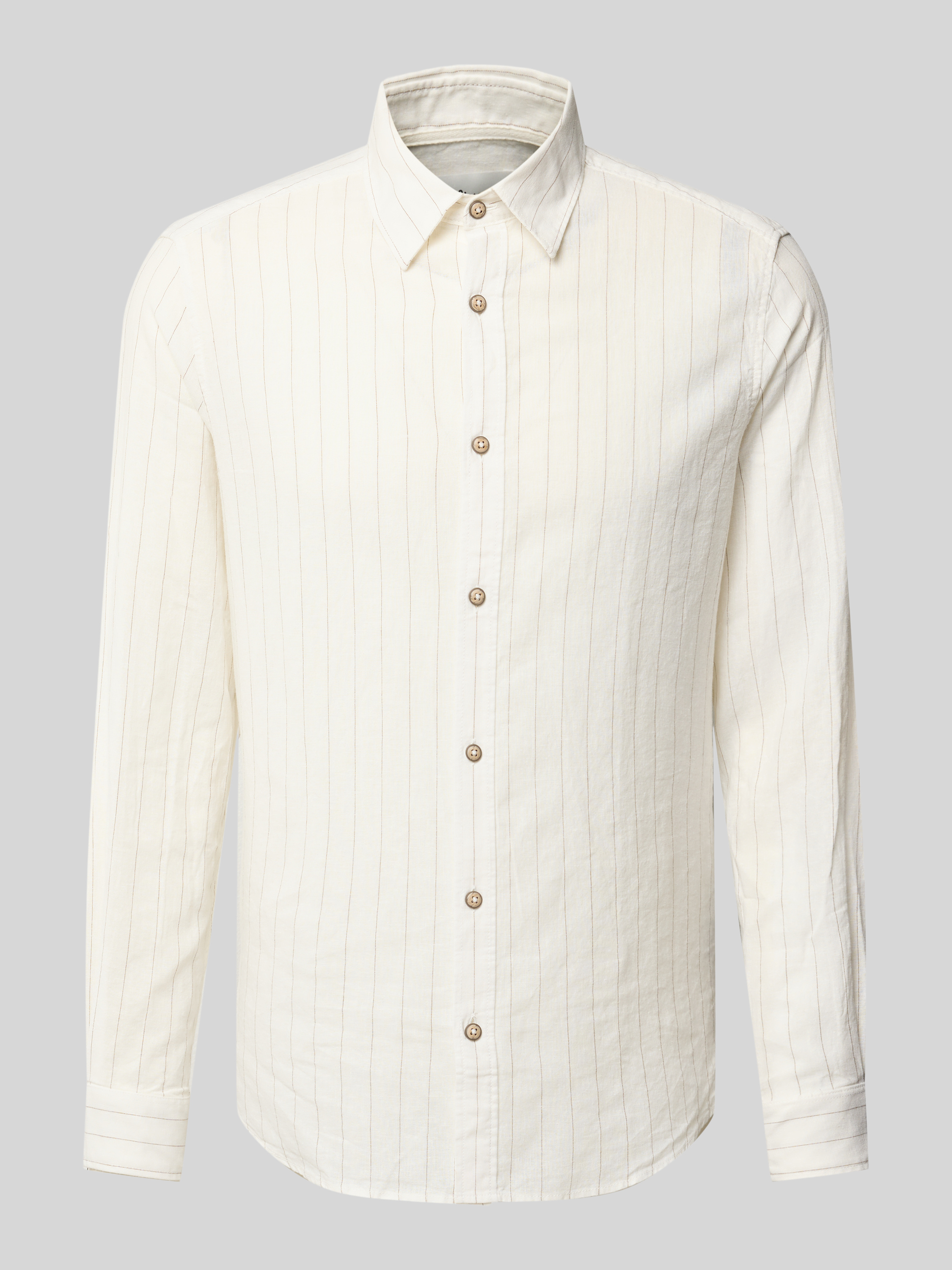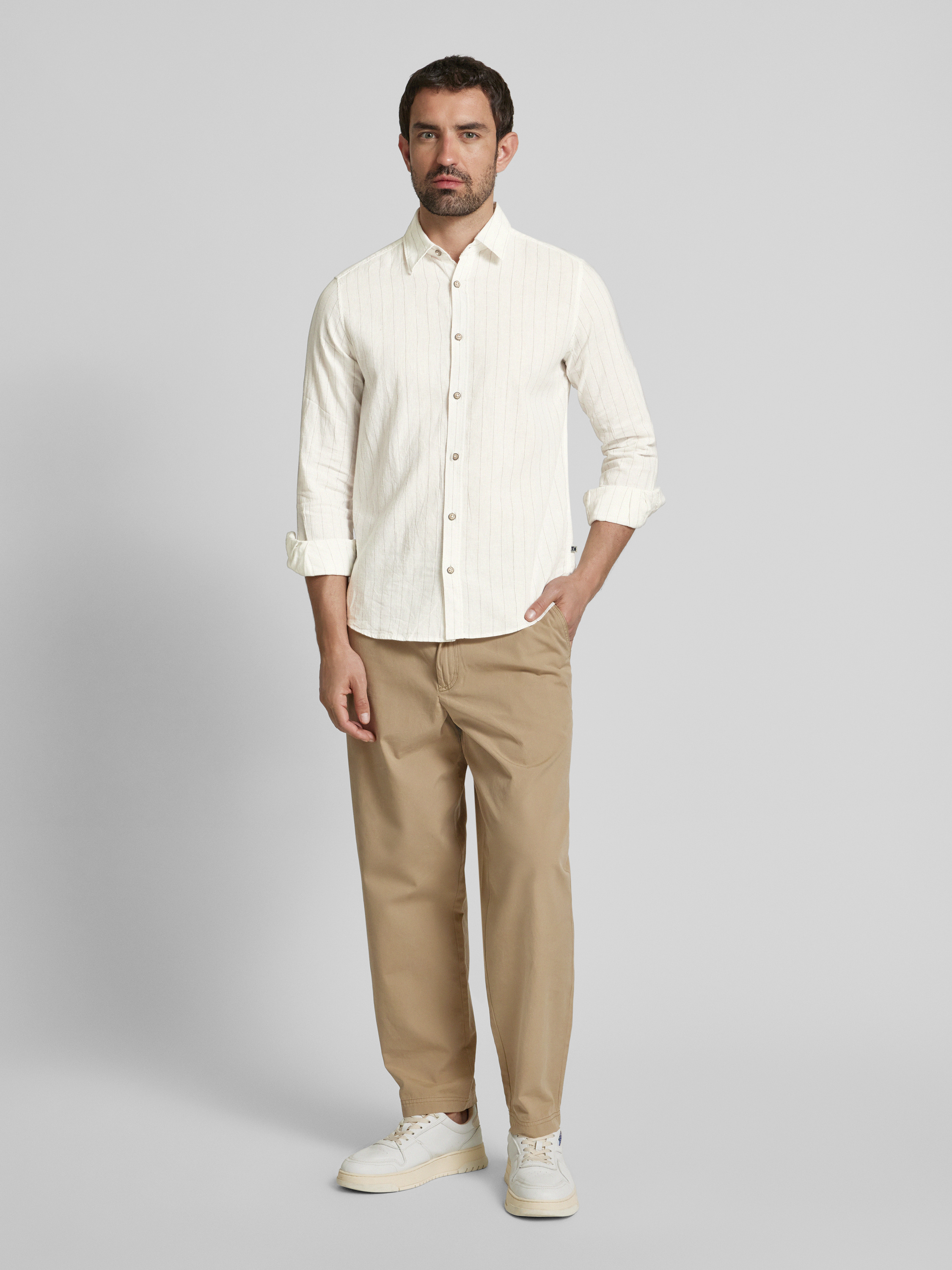 Koszula casualowa o kroju regular fit z mieszanki lnu i bawełny - biały