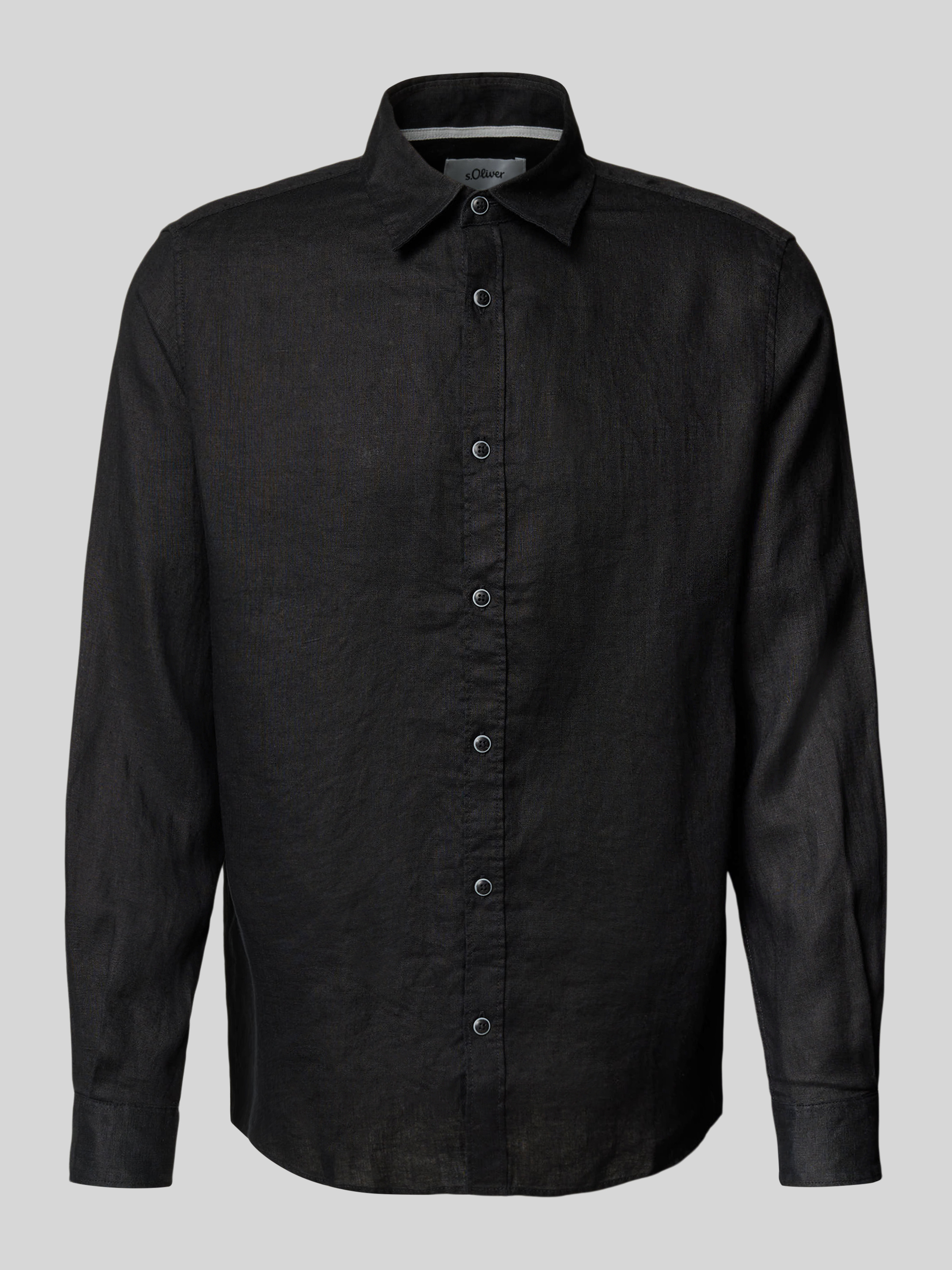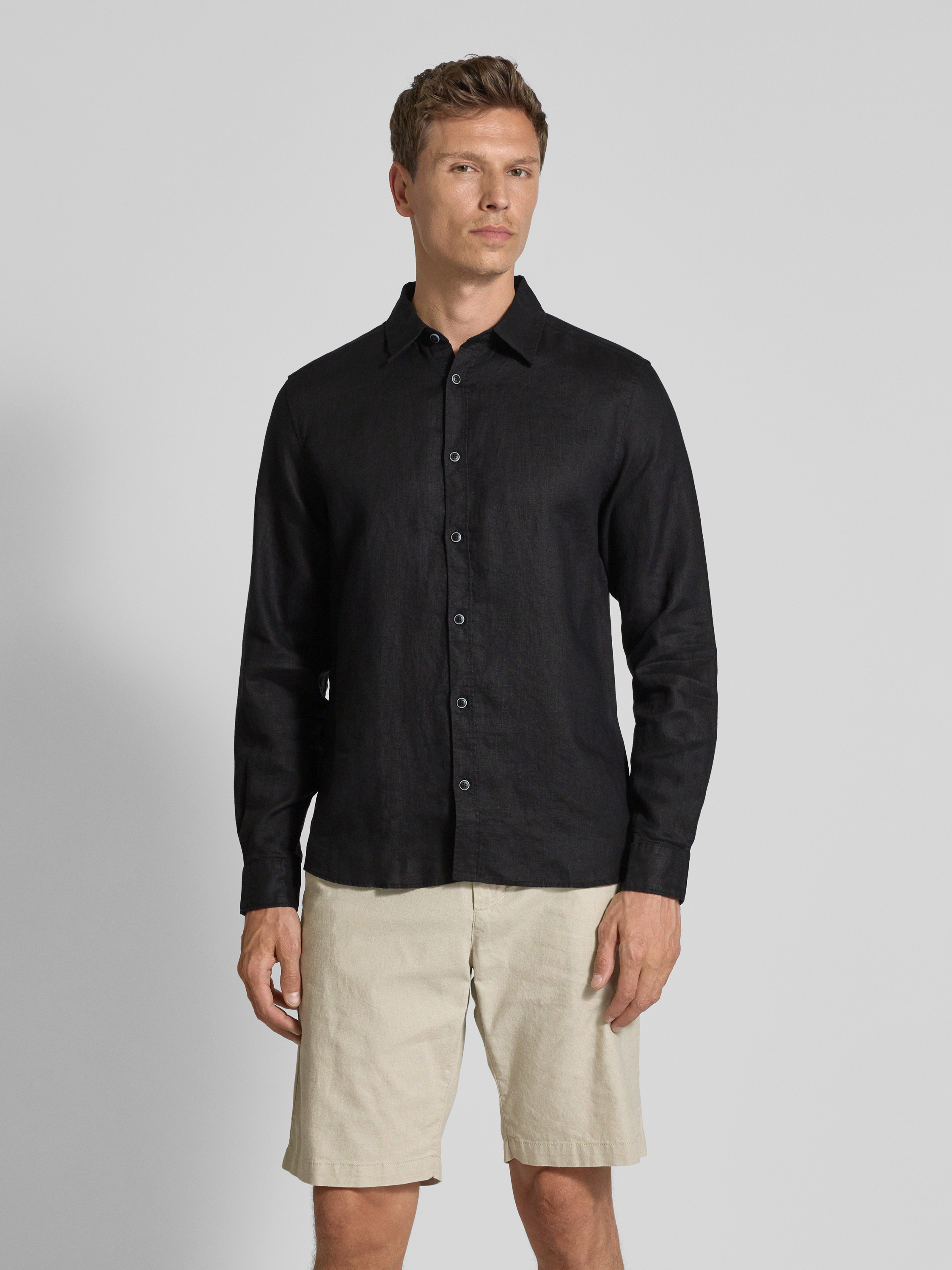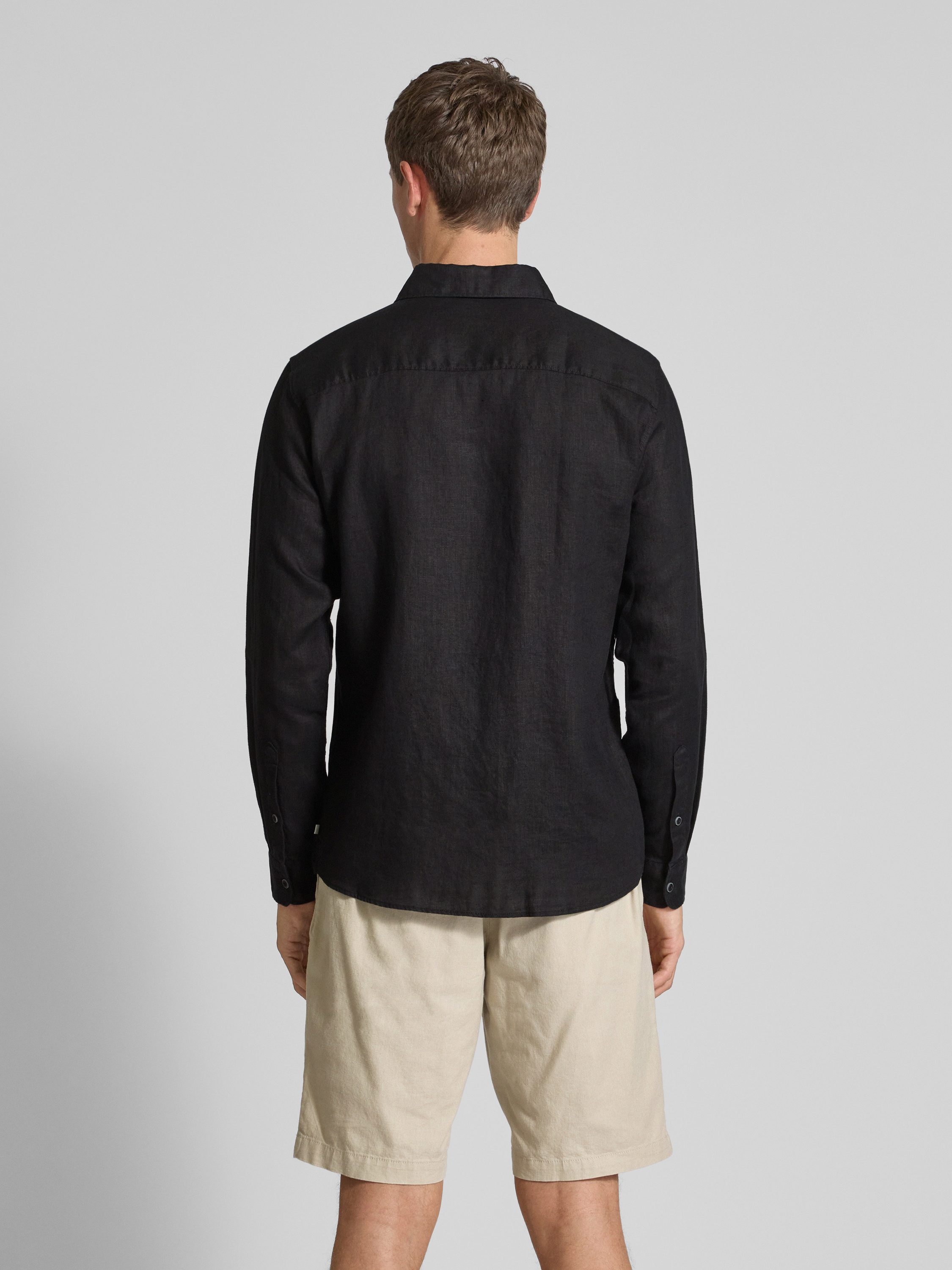 Koszula lniana o kroju regular fit ze sportowymi mankietami - czarny