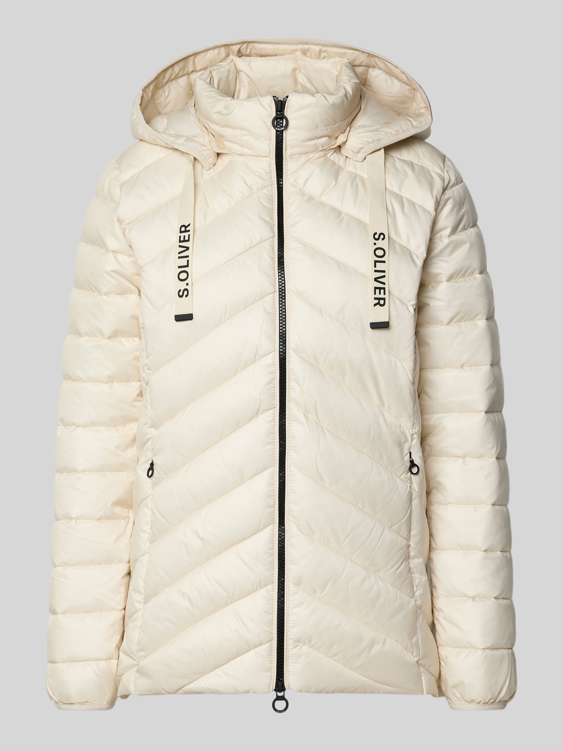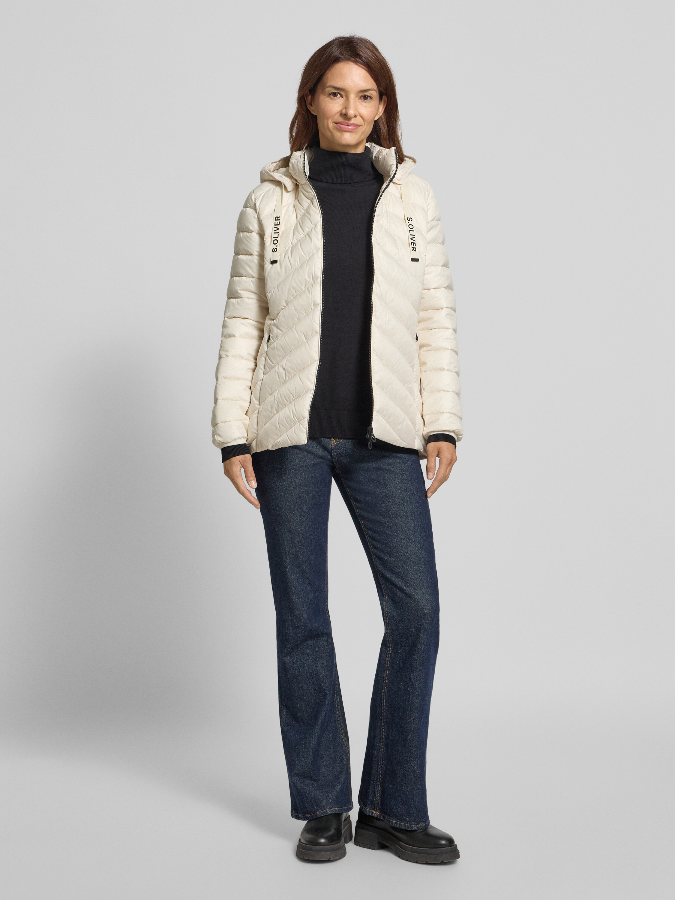 Kurtka pikowana o kroju shaped fit z nadrukiem z logo - złamany biały