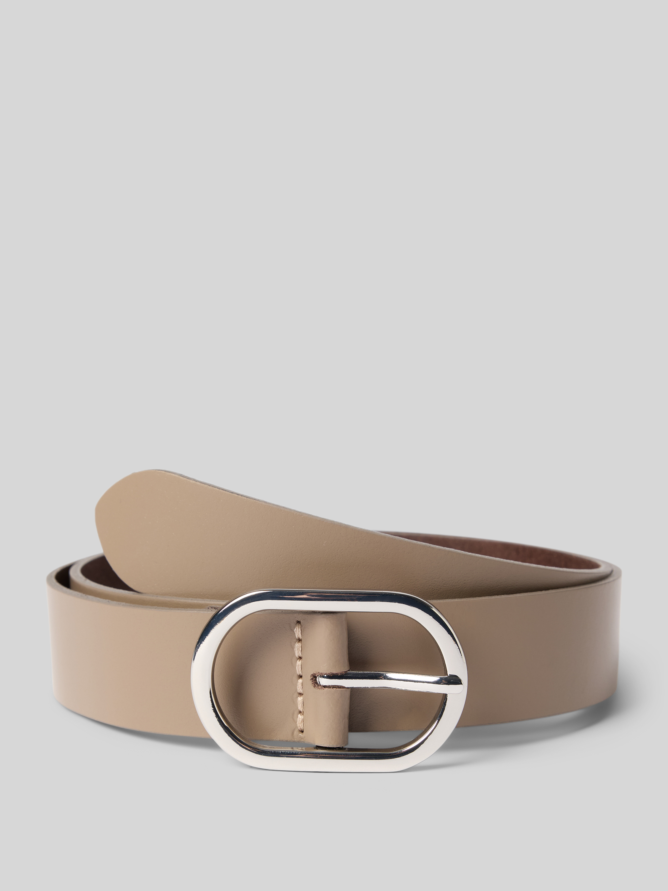 Pasek damski z wysokiej jakości skóry z owalną sprzączką - orzechowy