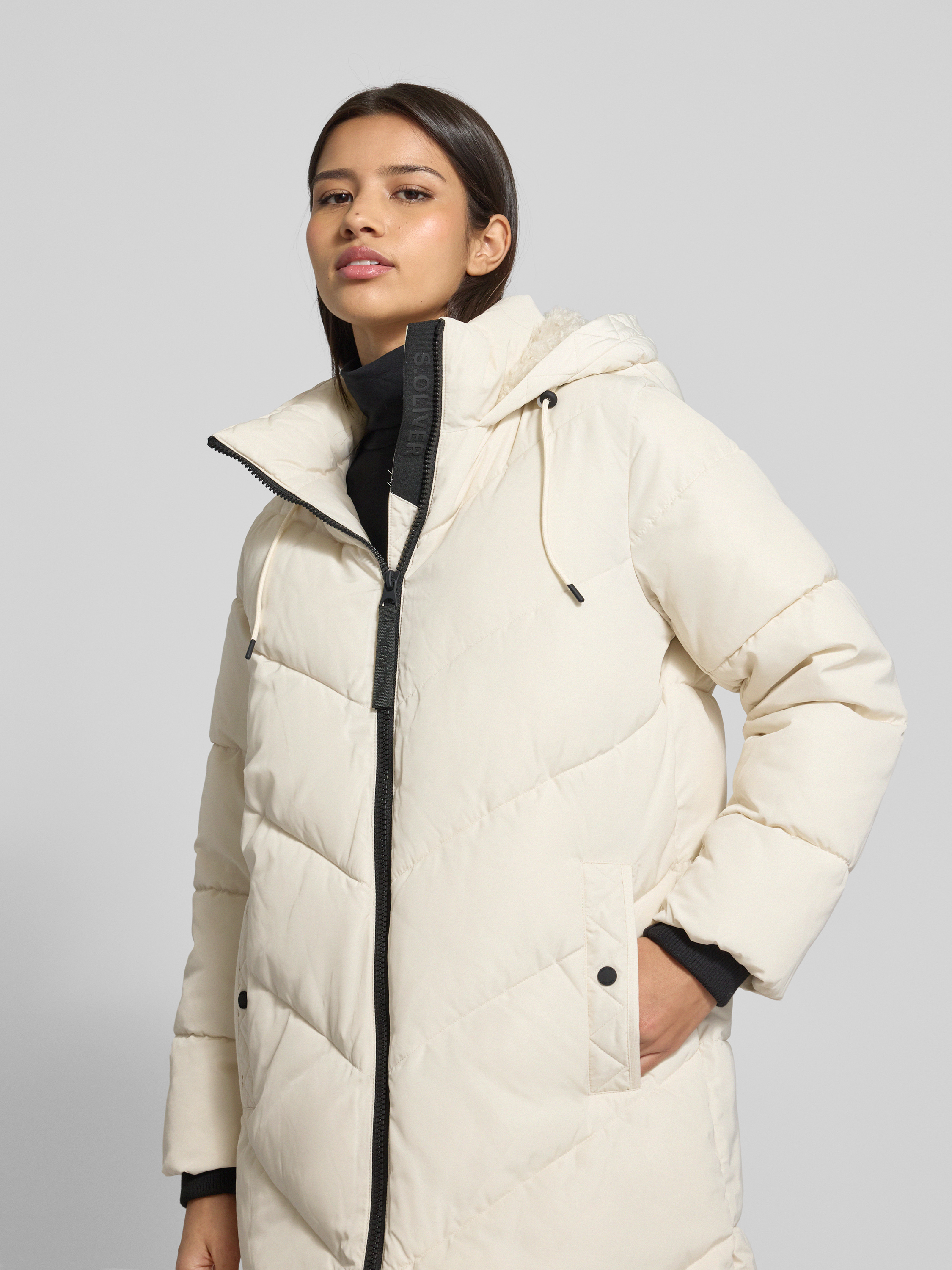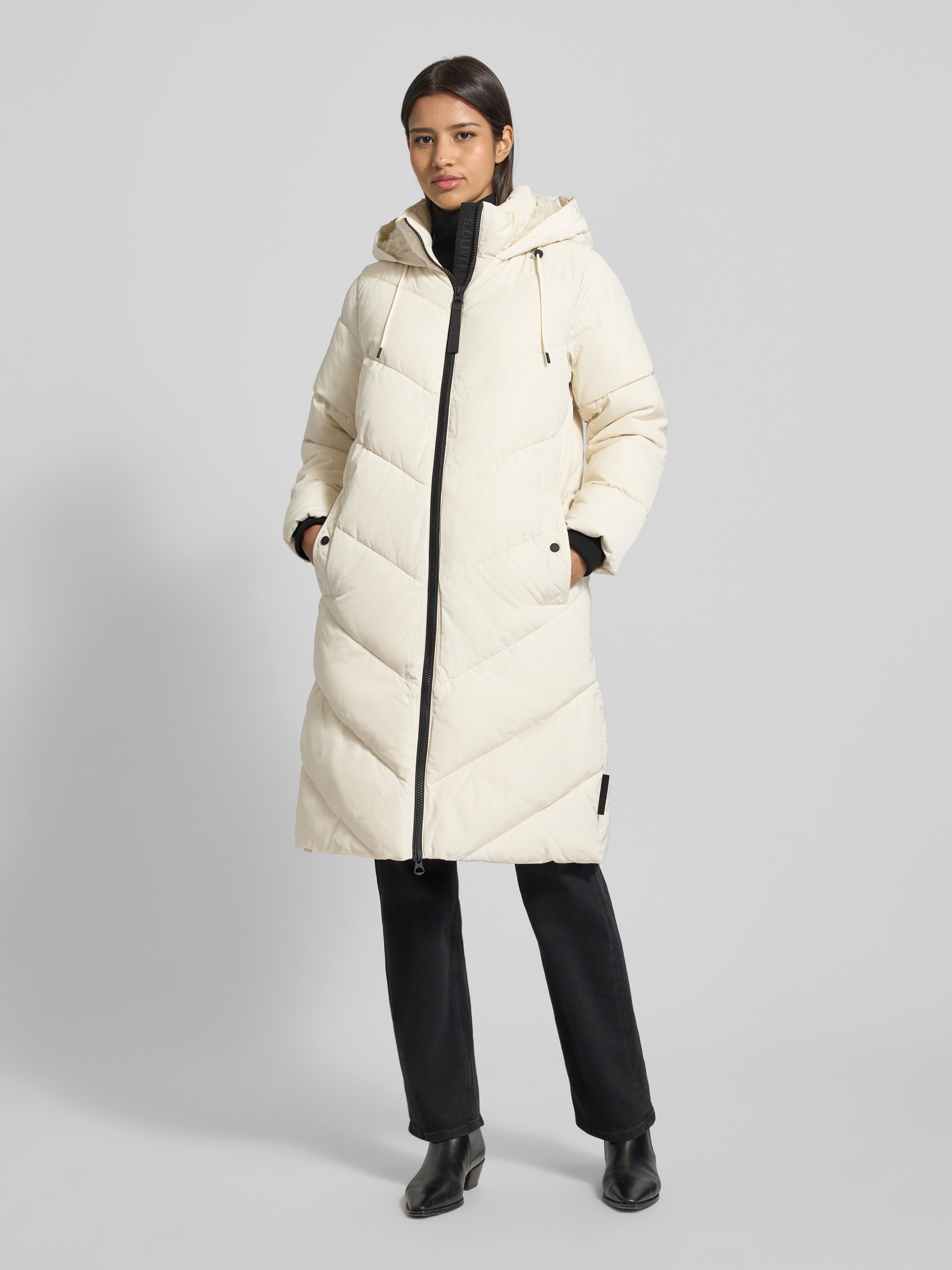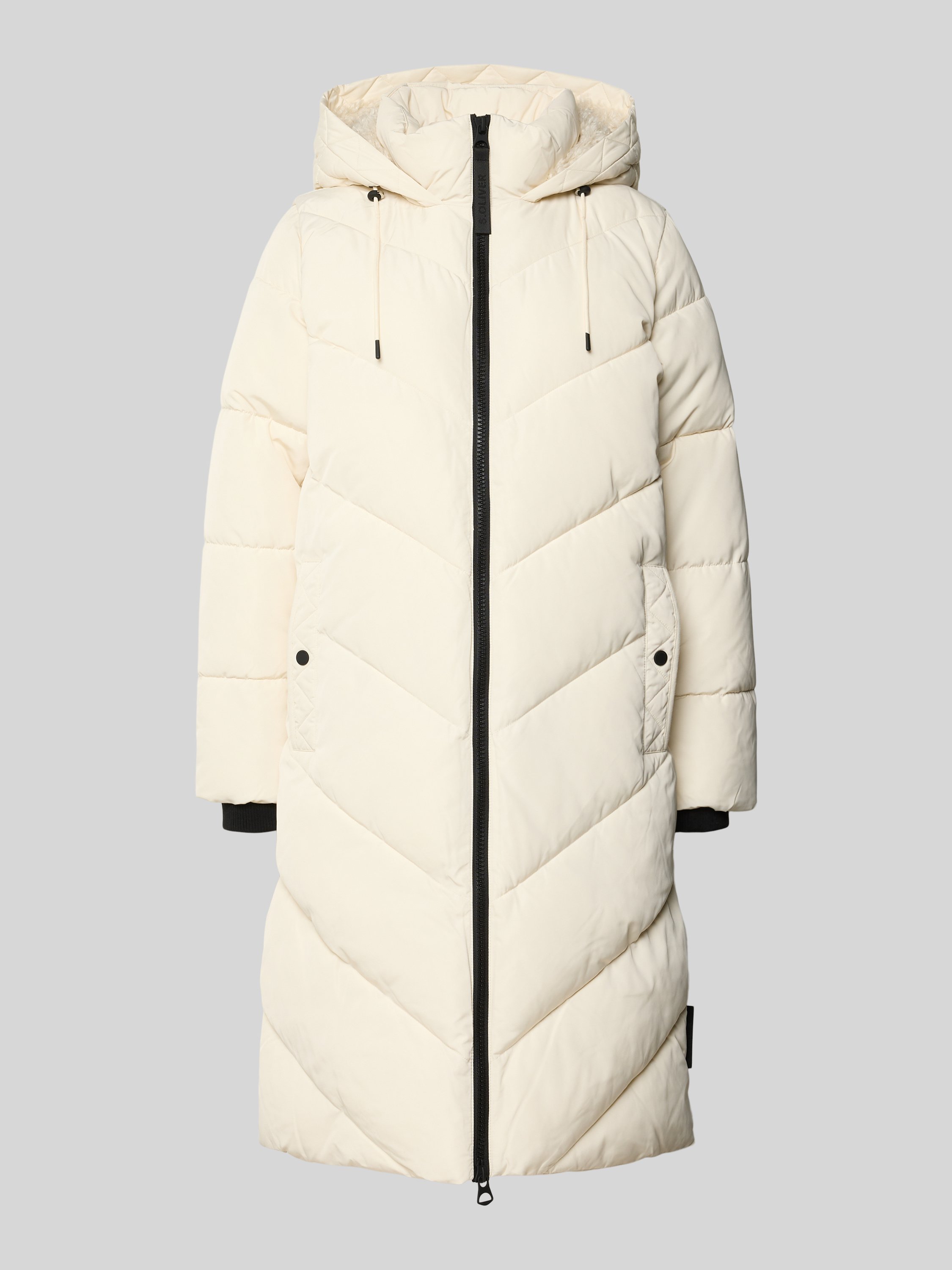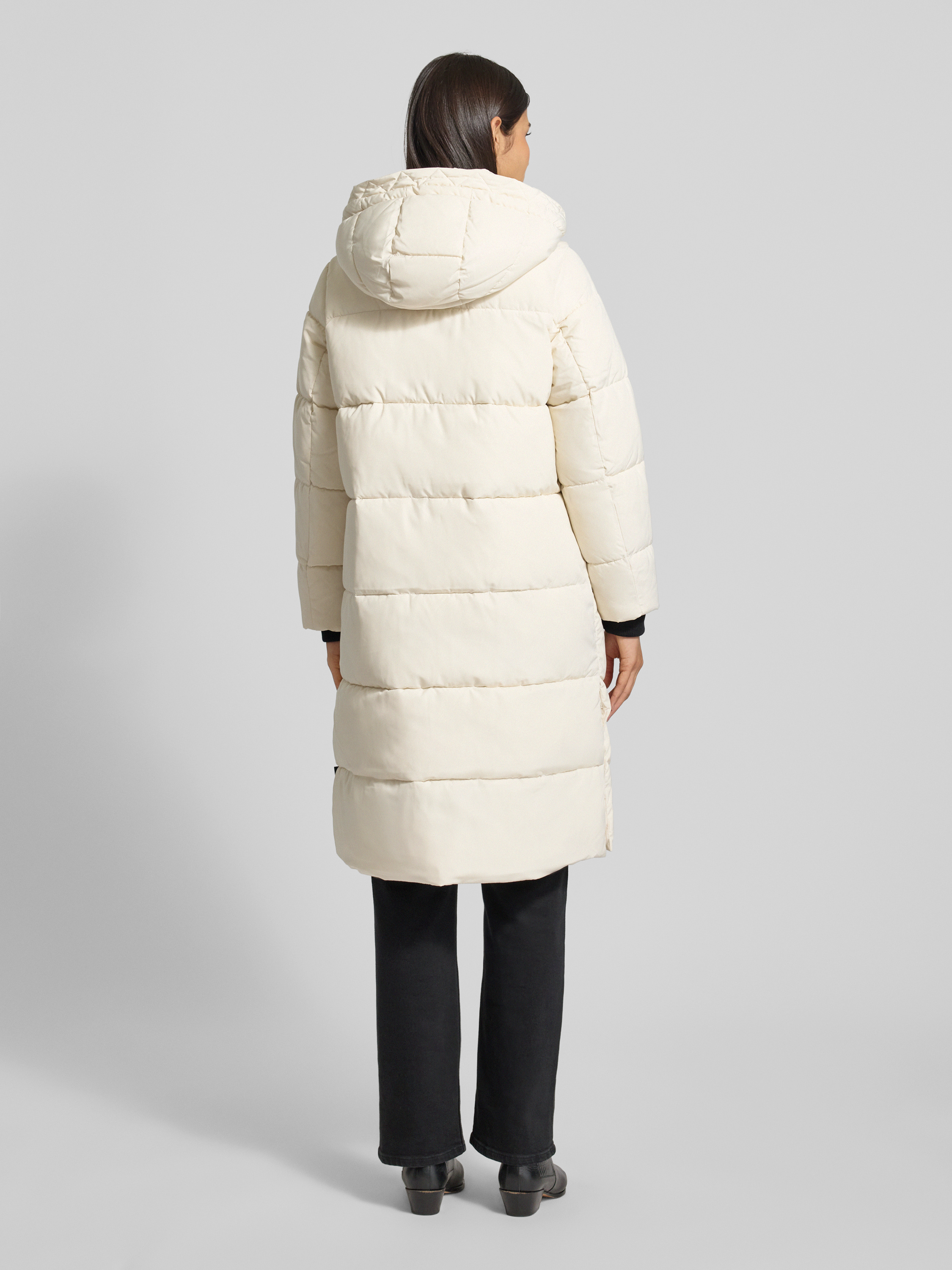 Płaszcz pikowany o prostym kroju z kapturem - złamany biały