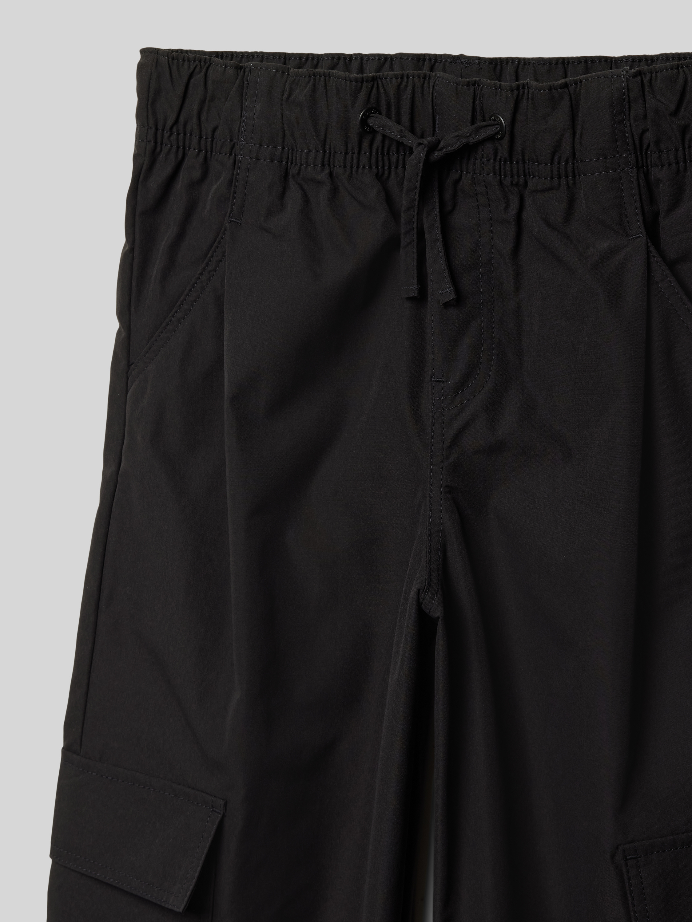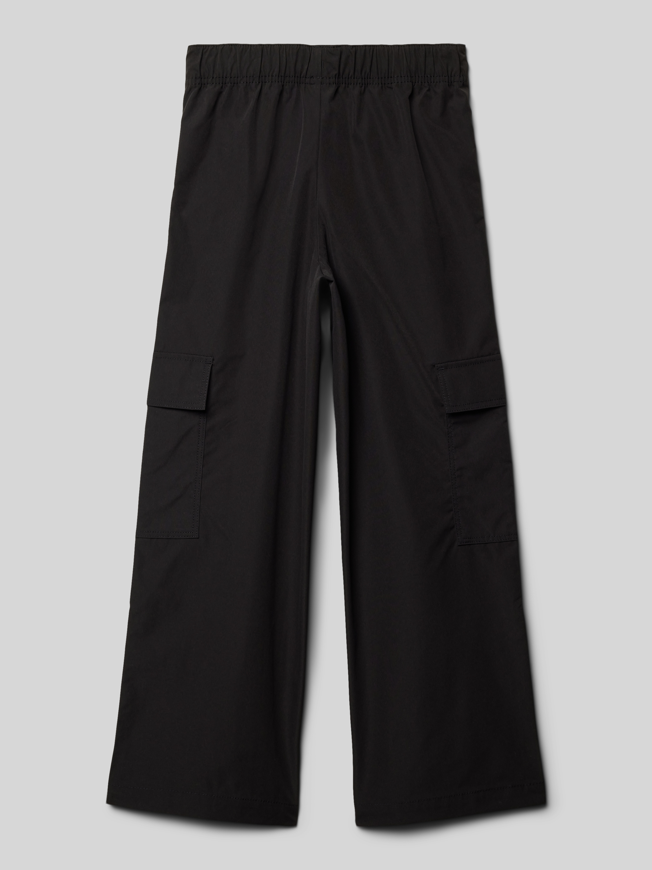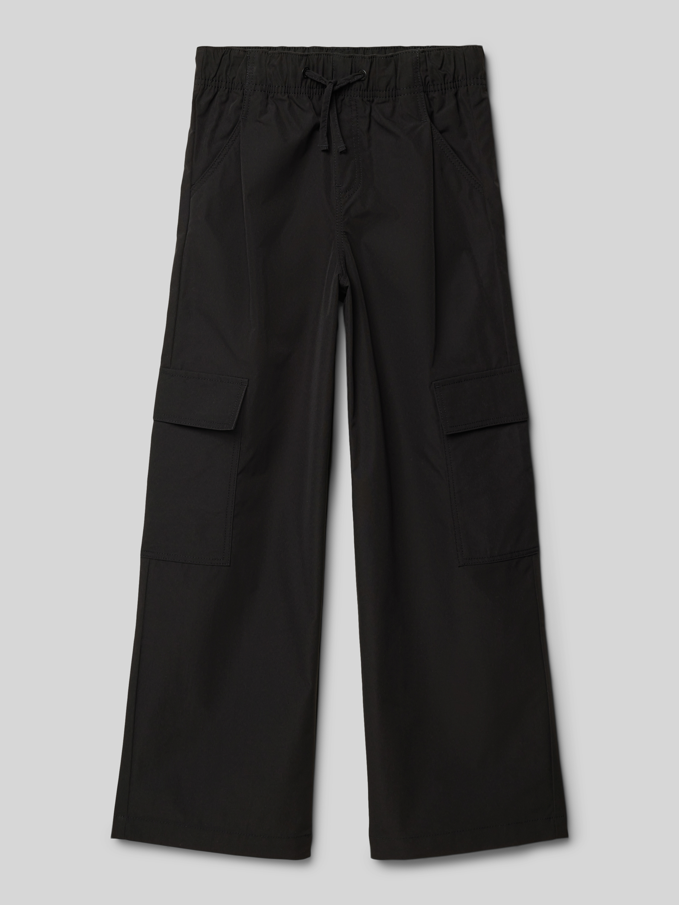 Spodnie materiałowe o kroju regular fit z poliestru - czarny