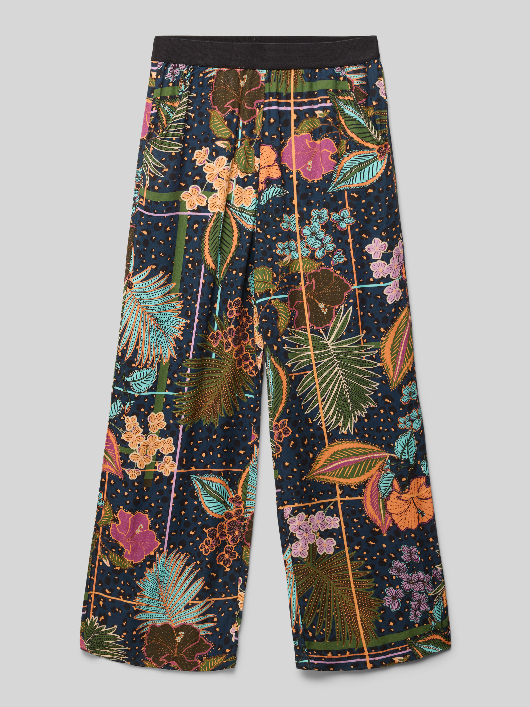 Spodnie szerokie o luźnym kroju z czystej wiskozy - granatowy
