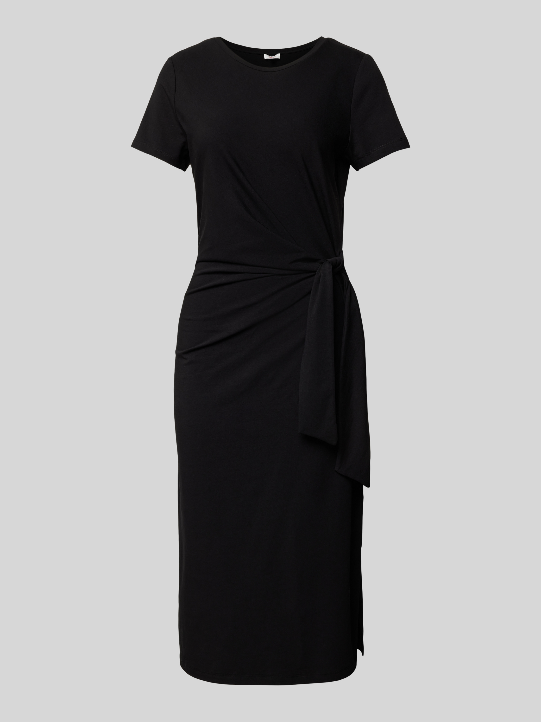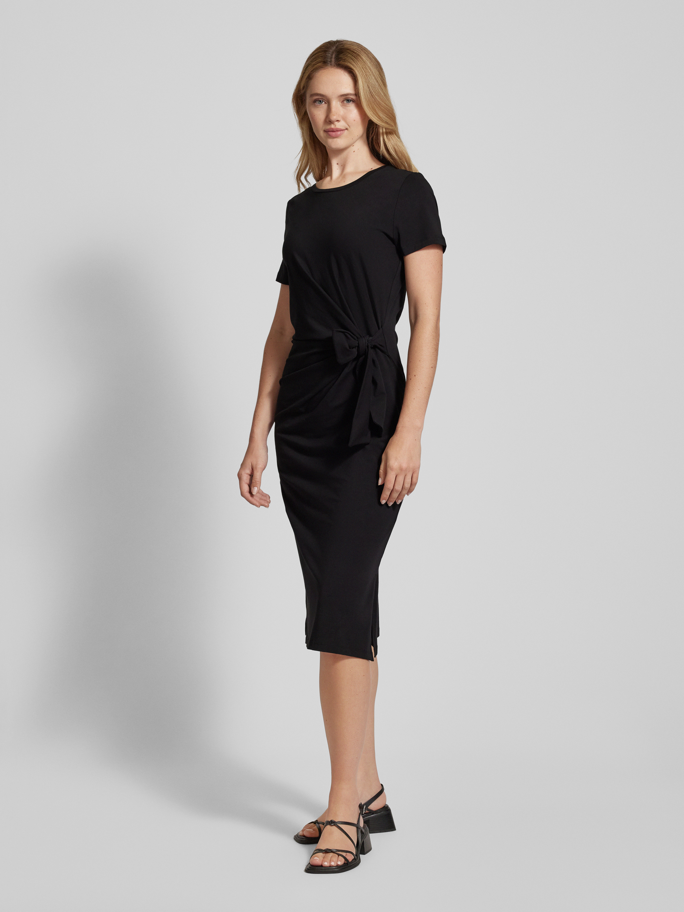 Sukienka T-shirtowa z wiązanym paskiem - czarny