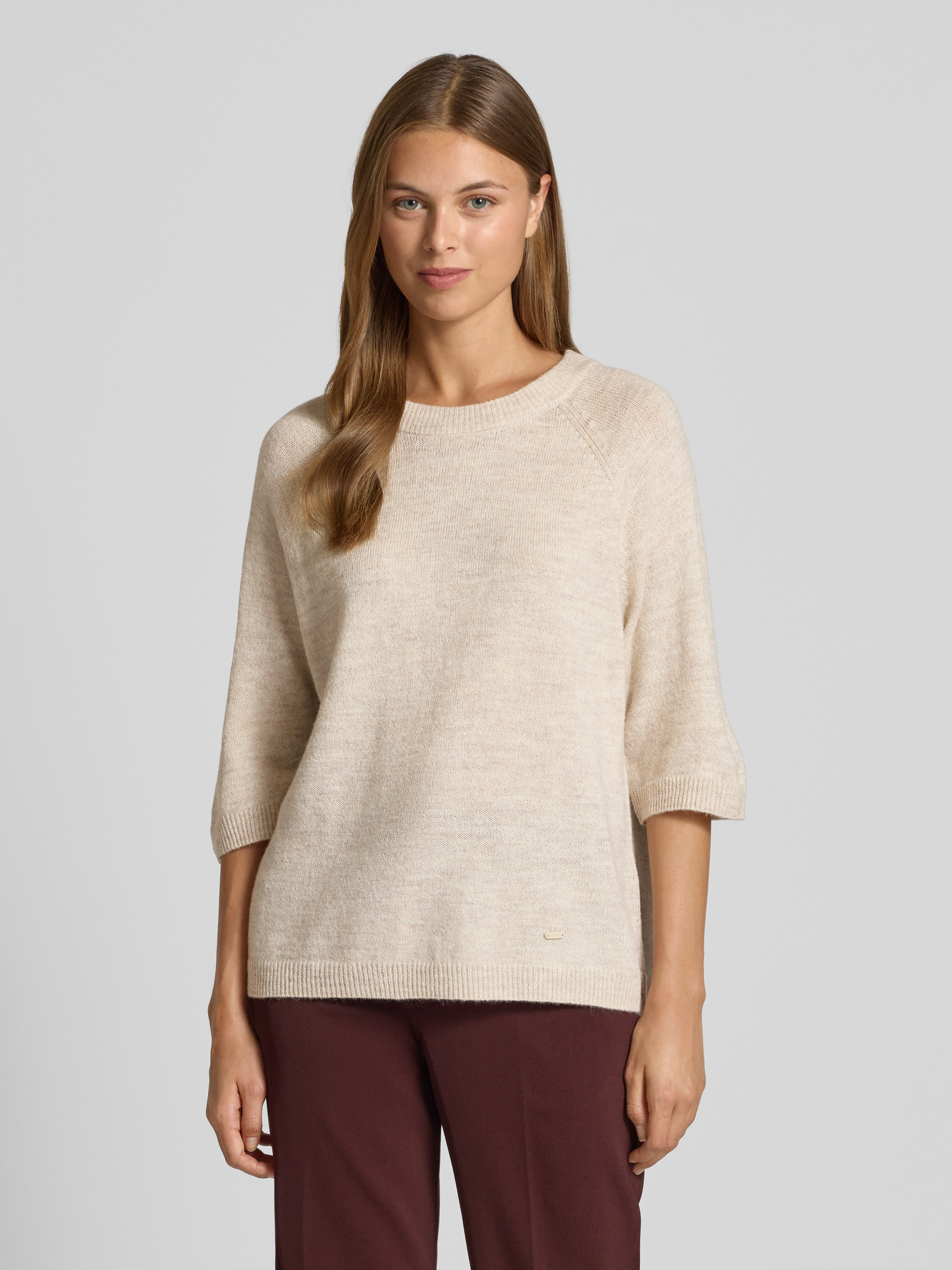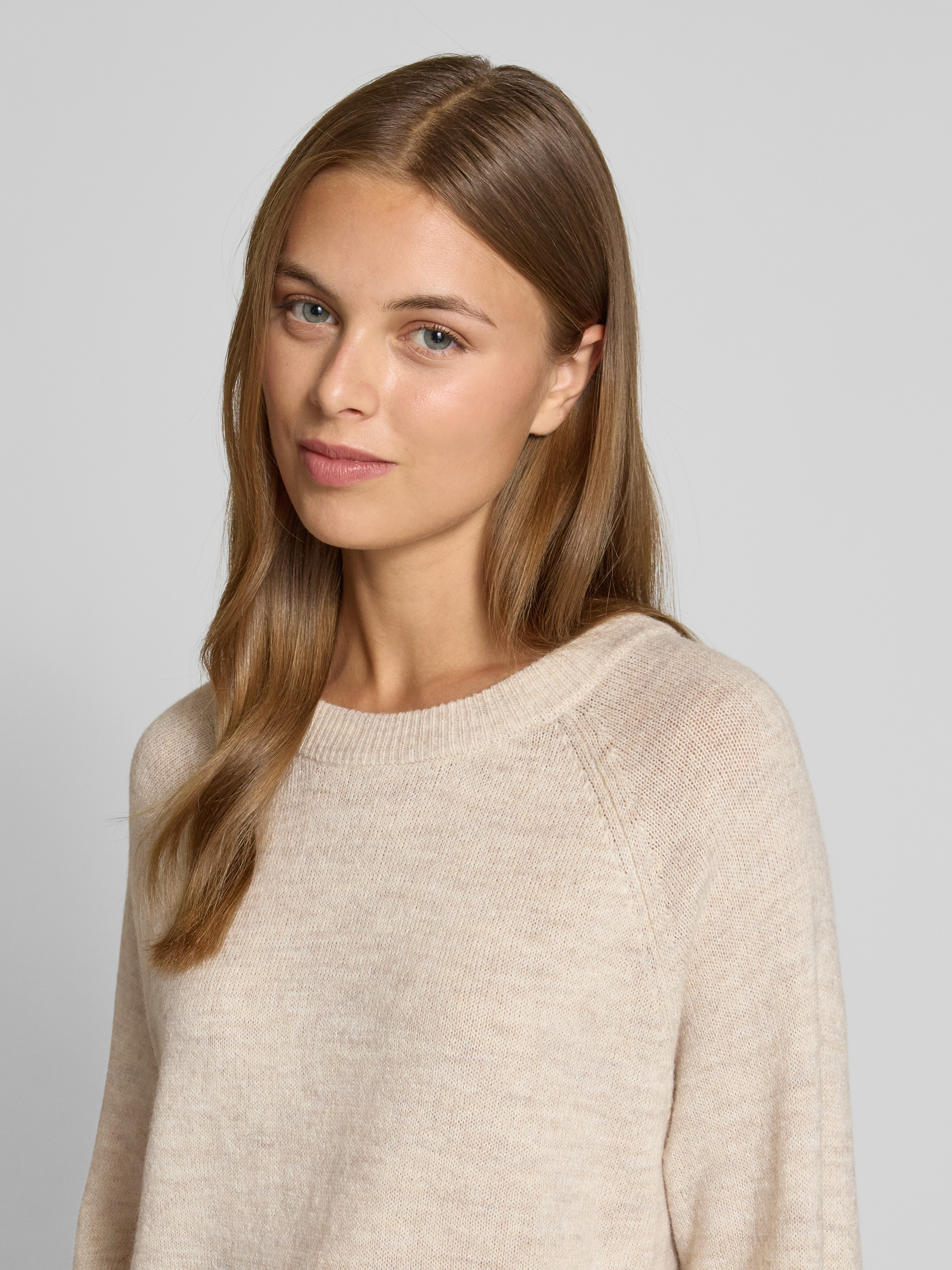 Sweter o kroju regular fit z dzianiny z dodatkiem wełny z alpaki - beżowy