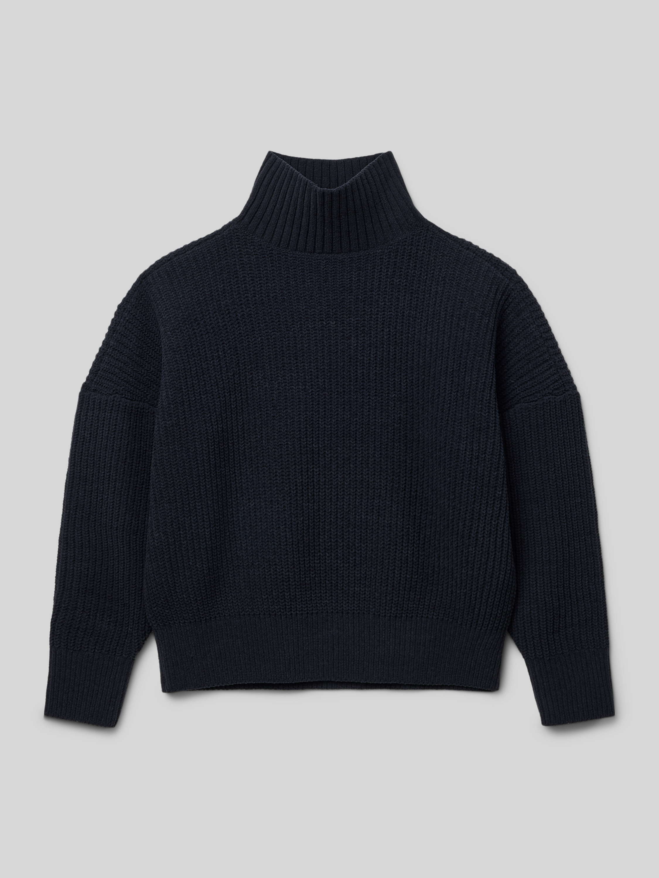 Sweter z dzianiny o kroju oversized z golfem - czarny