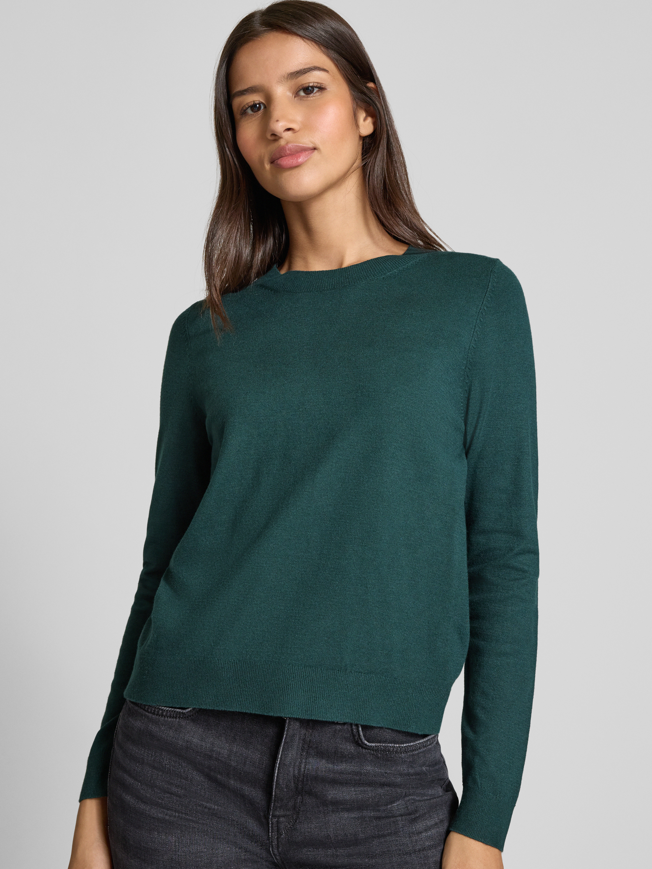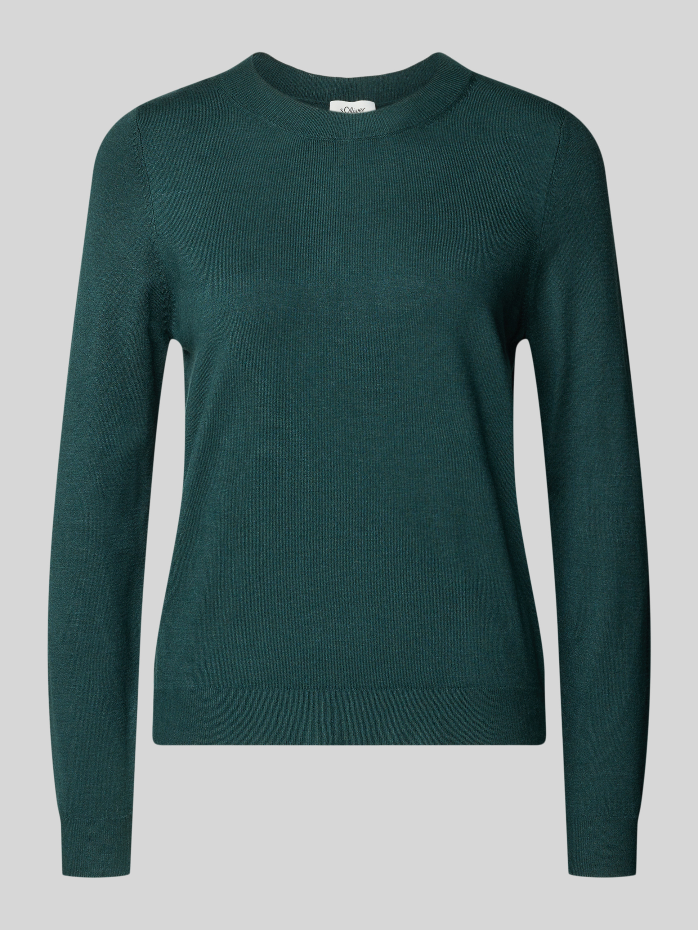 Sweter z dzianiny o kroju regular fit z mieszanki wiskozy - ciemnozielony