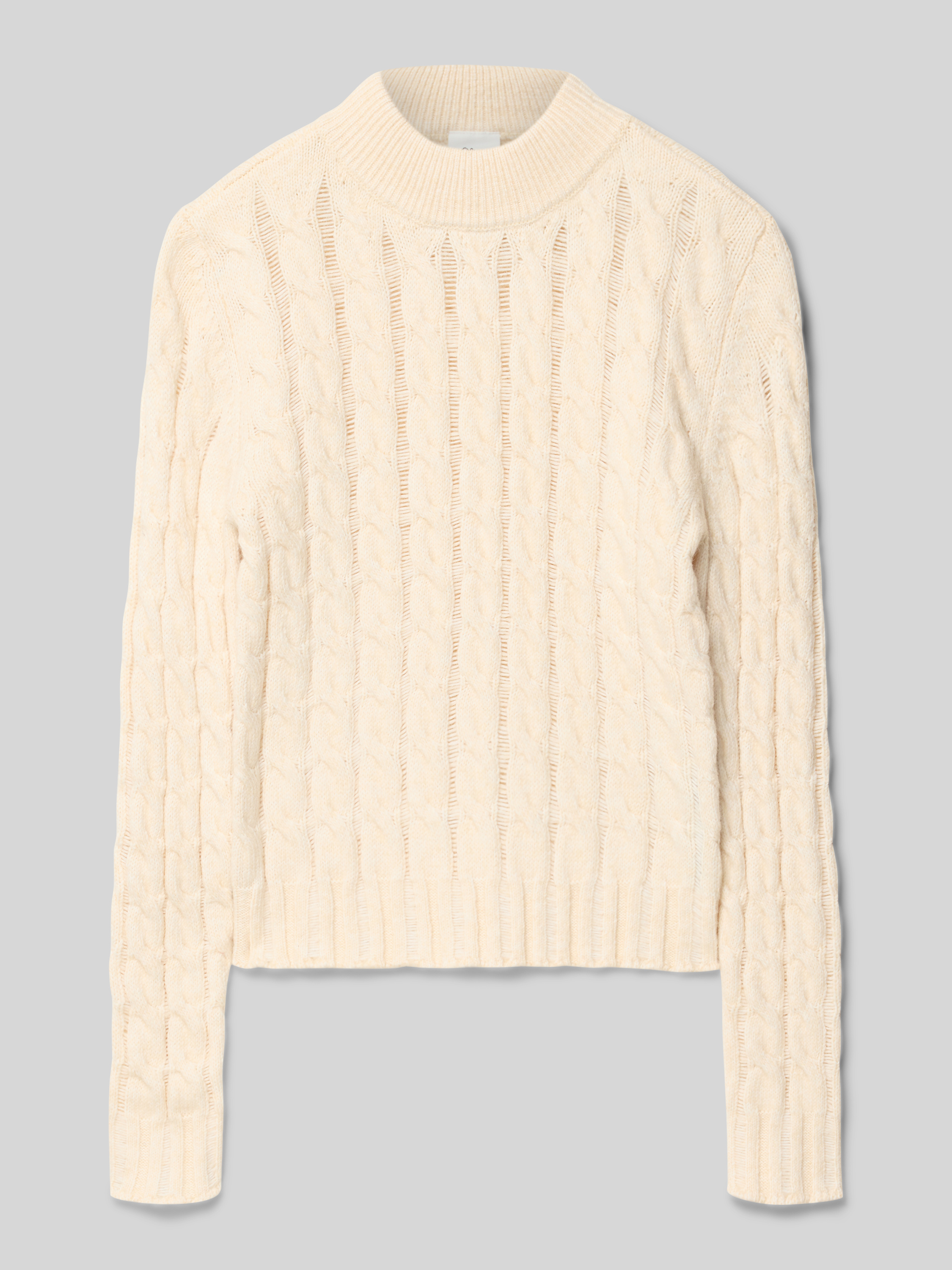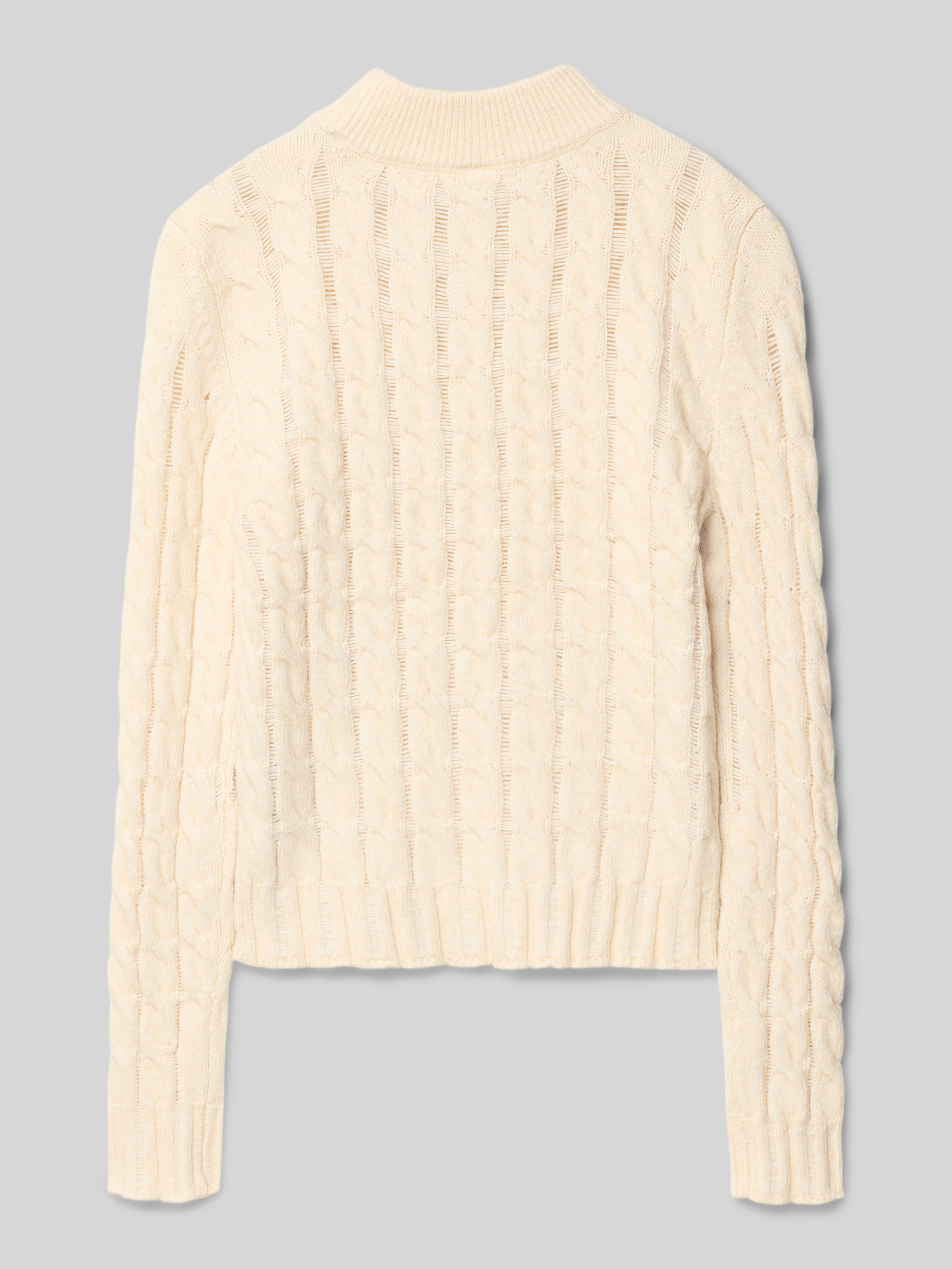 Sweter z dzianiny o kroju regular fit ze wzorem ze ściegu warkoczowego - écru melanż
