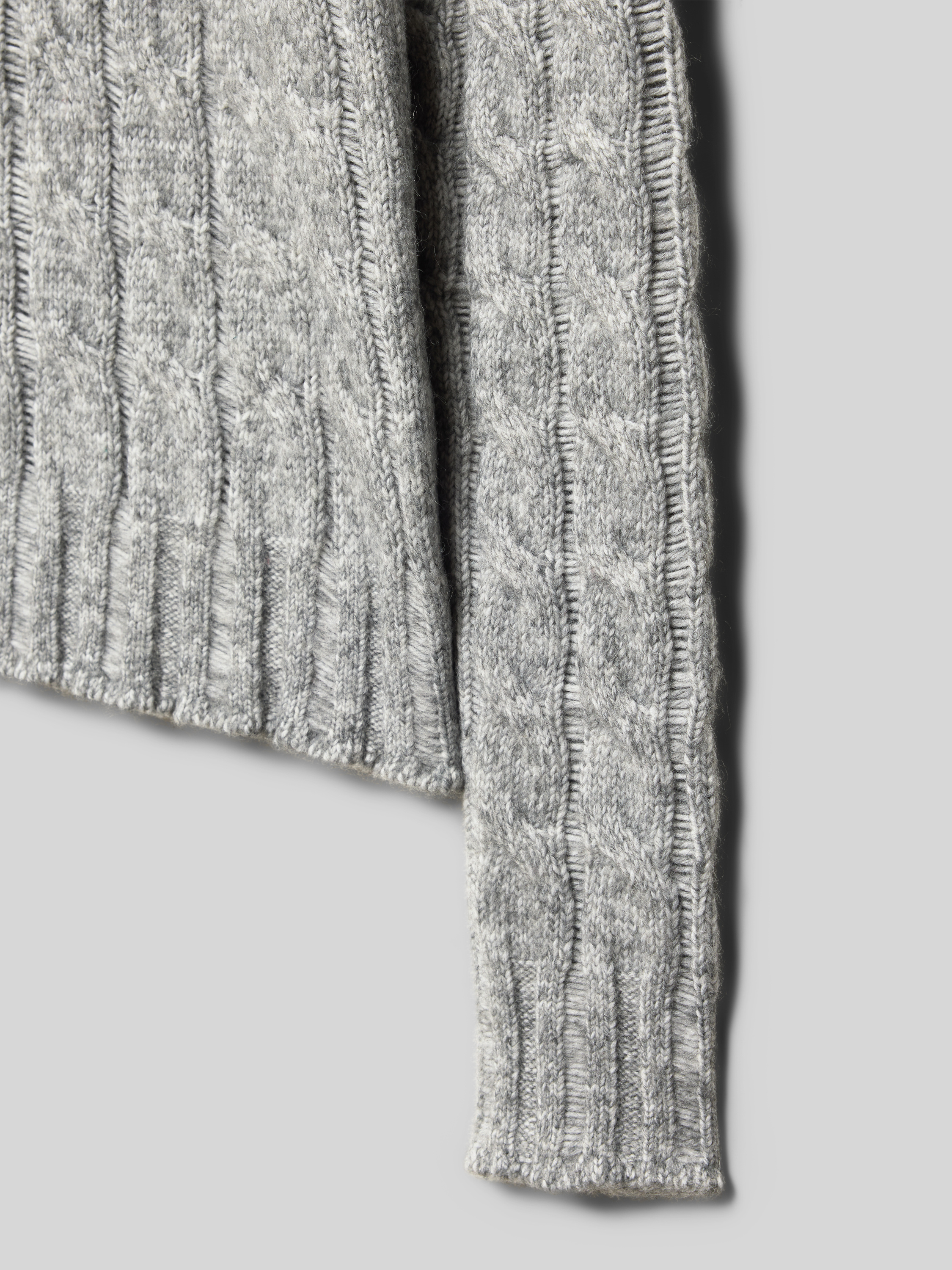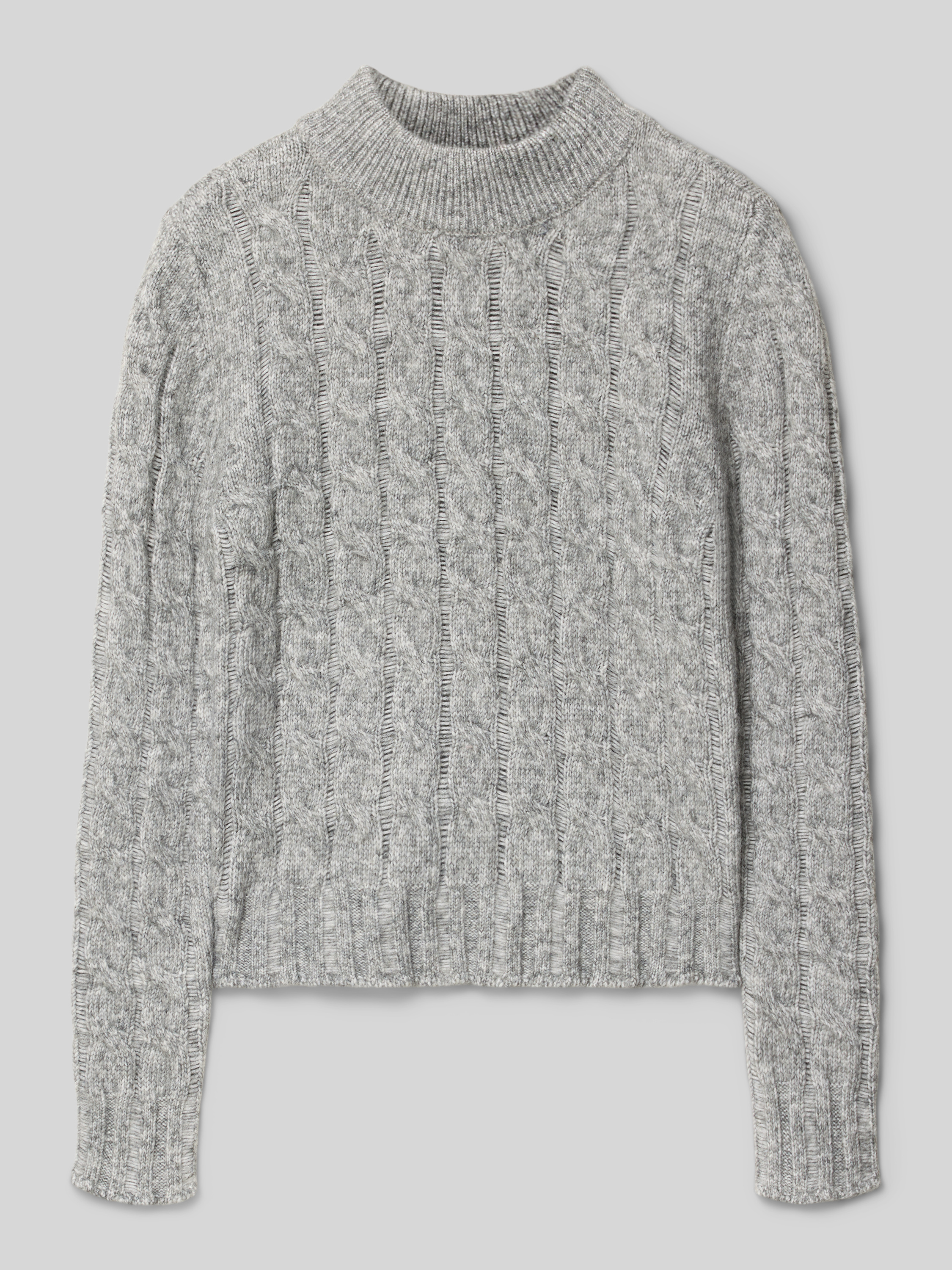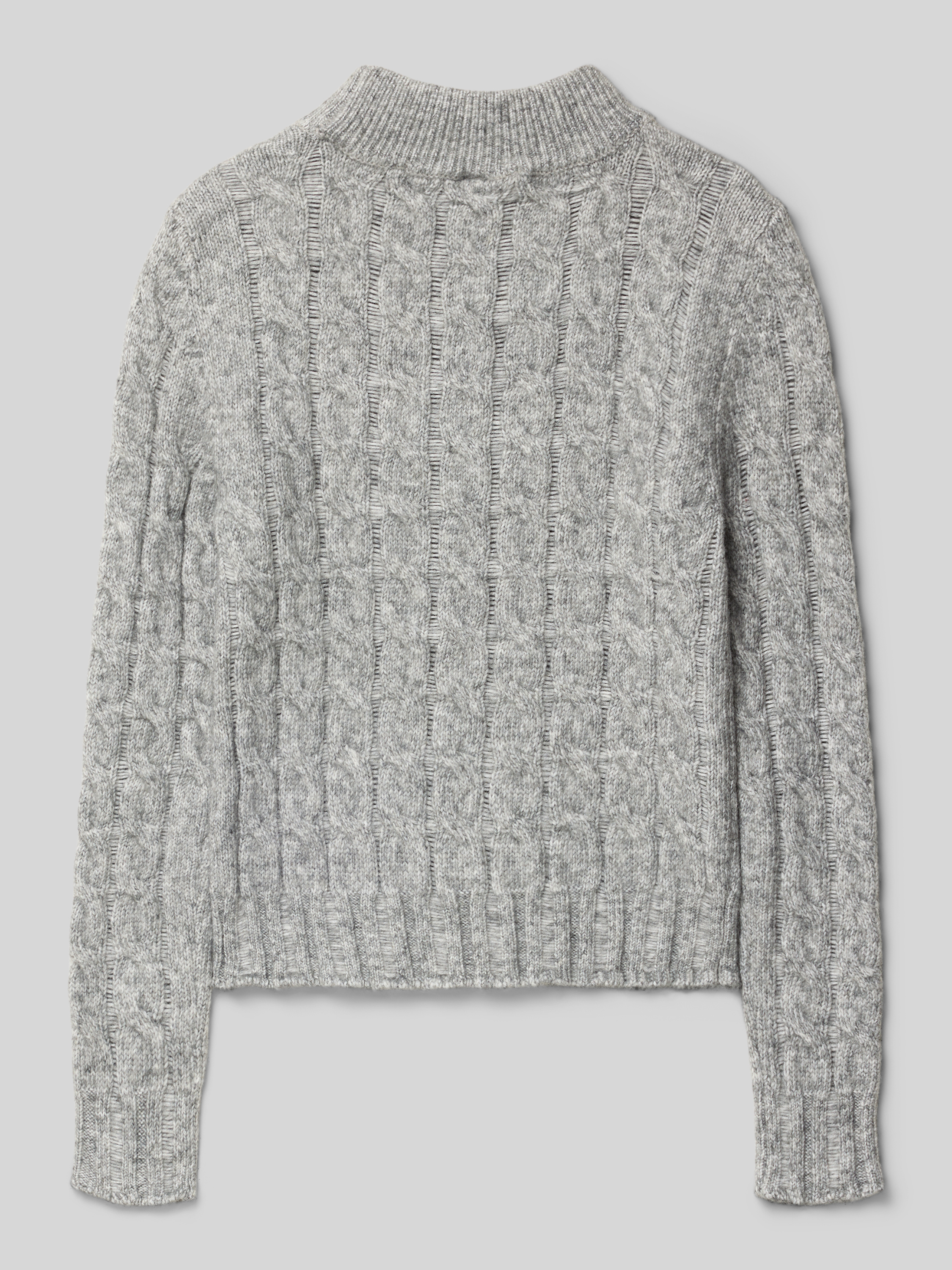 Sweter z dzianiny o kroju regular fit ze wzorem ze ściegu warkoczowego - średnioszary melanż