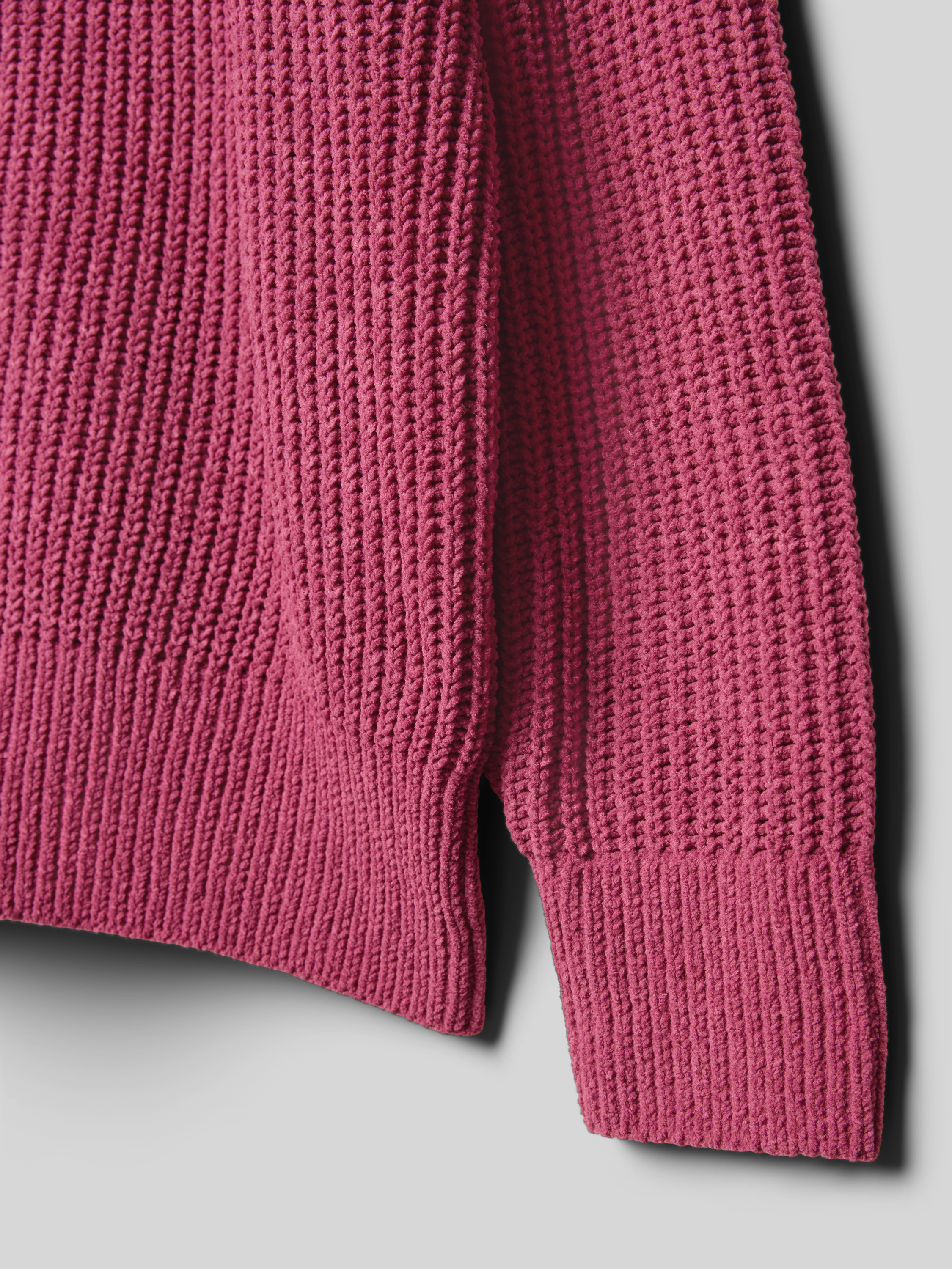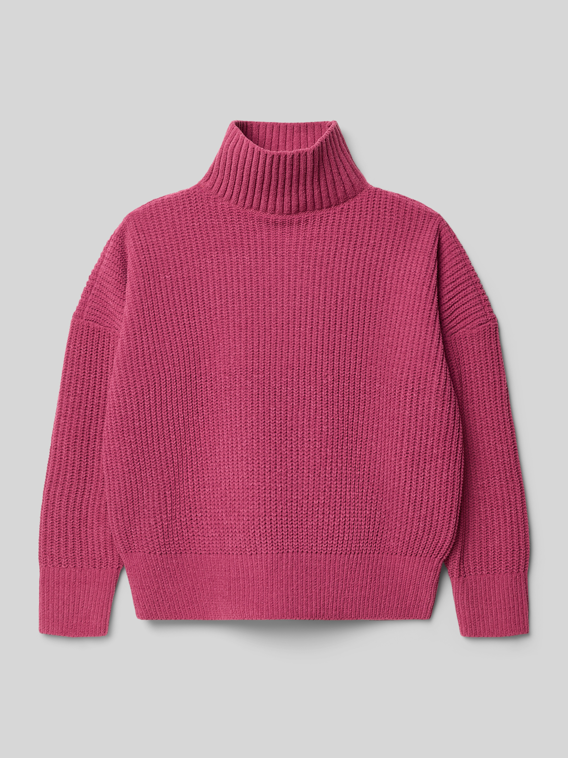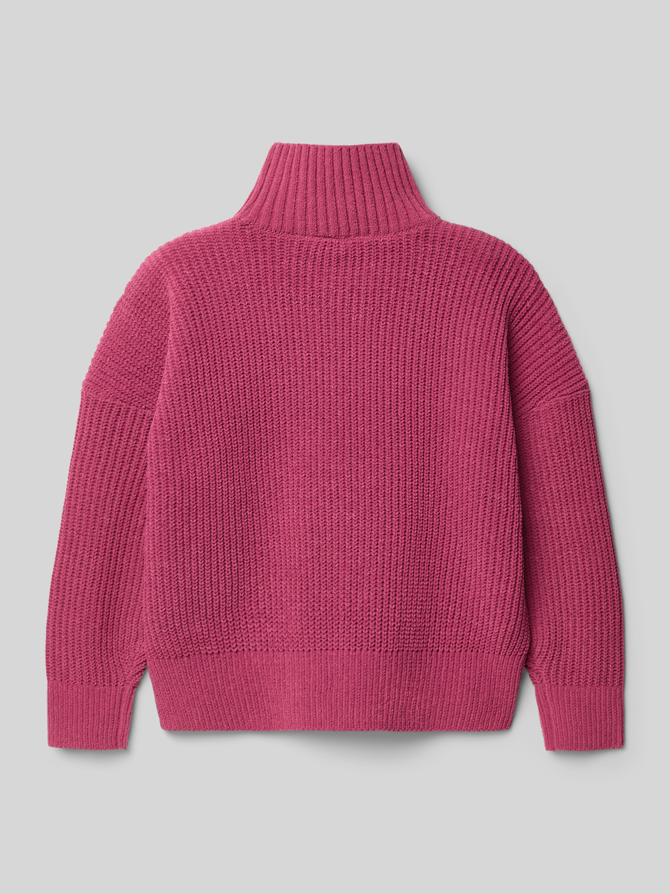 Sweter z dzianiny o luźnym kroju ze stójką - wiśniowy