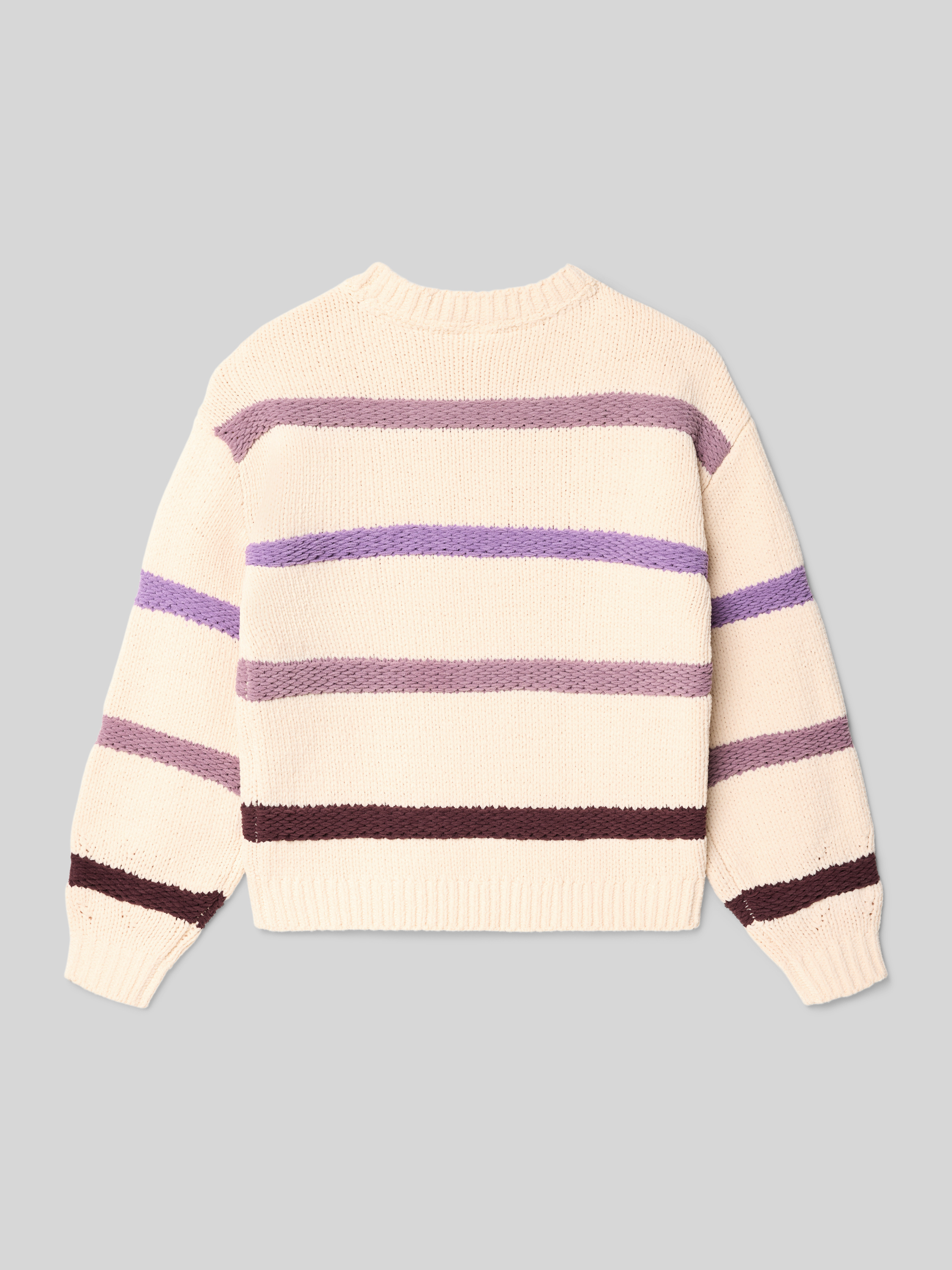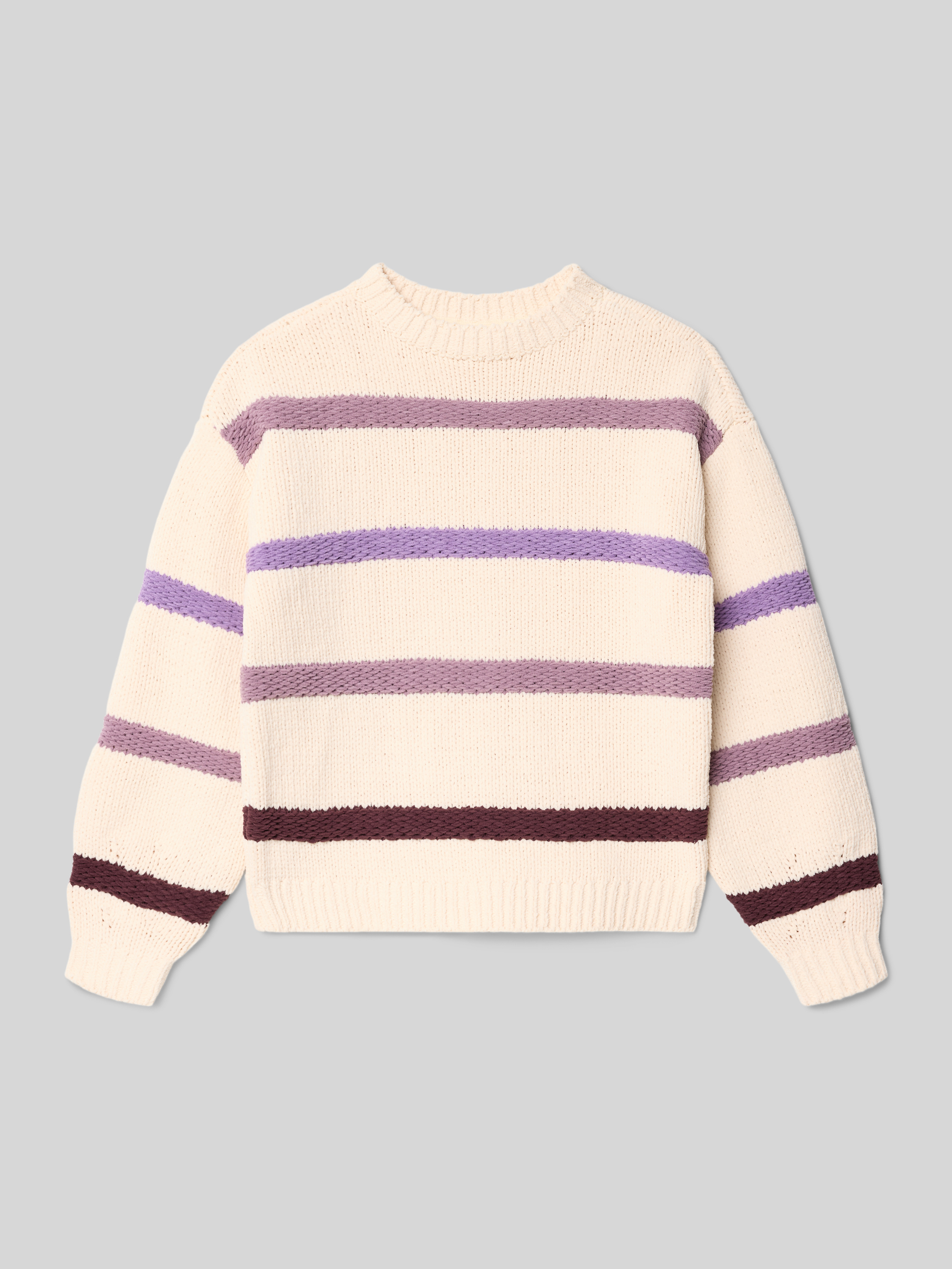 Sweter z dzianiny o luźnym kroju ze wzorem w paski - écru