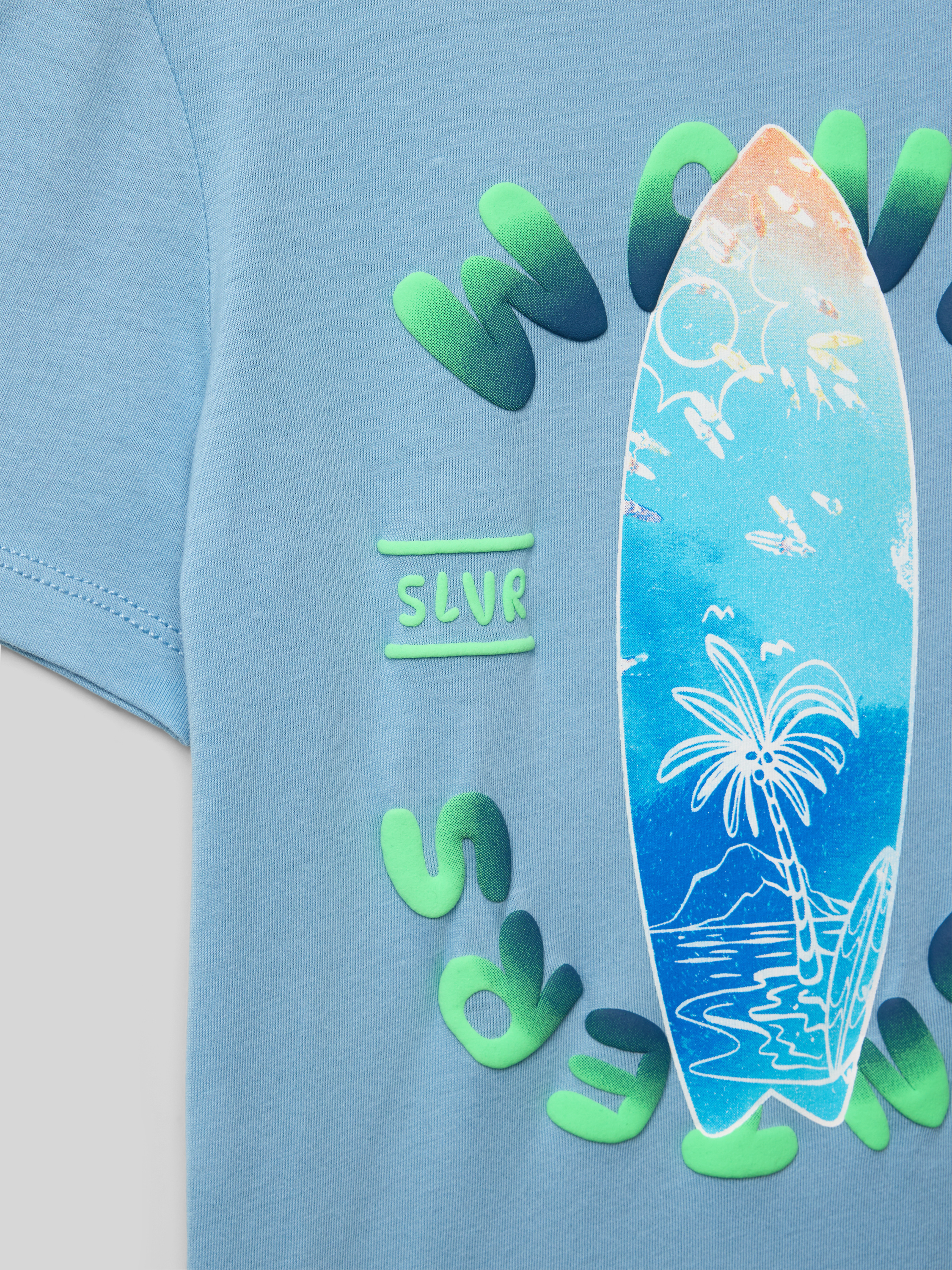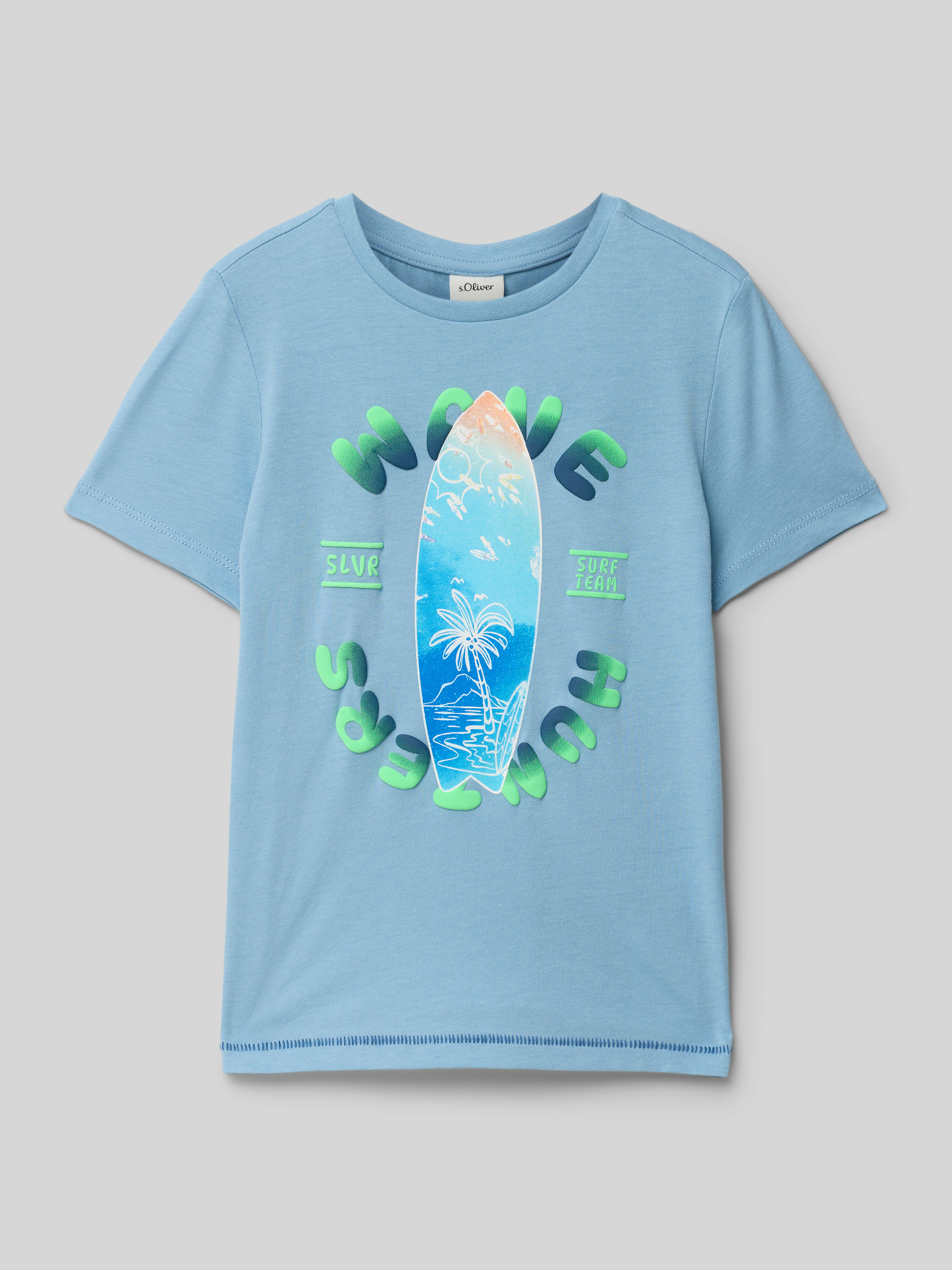 T-shirt o kroju regular fit z czystej bawełny - jasnoniebieski