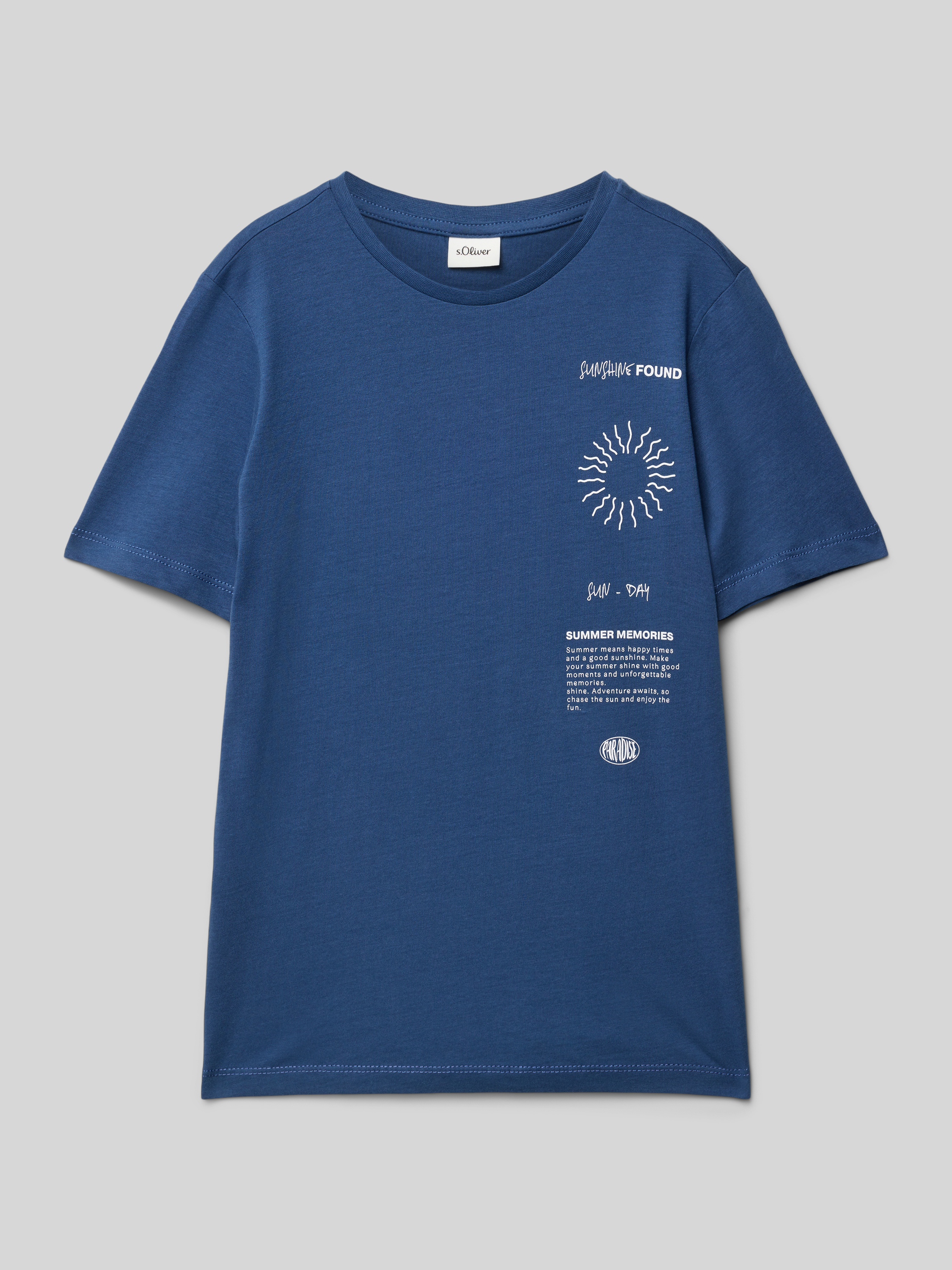 T-shirt o kroju regular fit z czystej bawełny - szaroniebieski