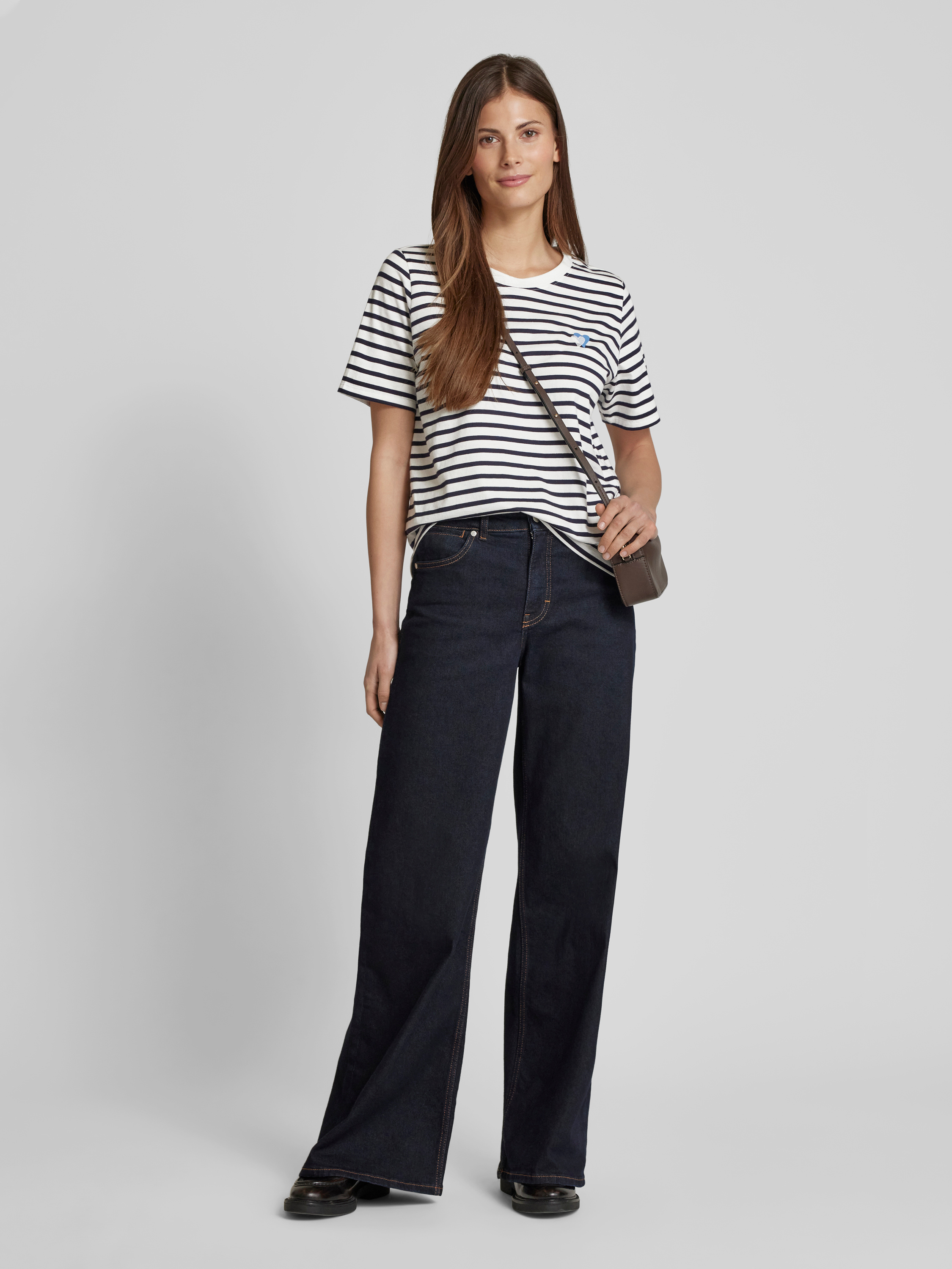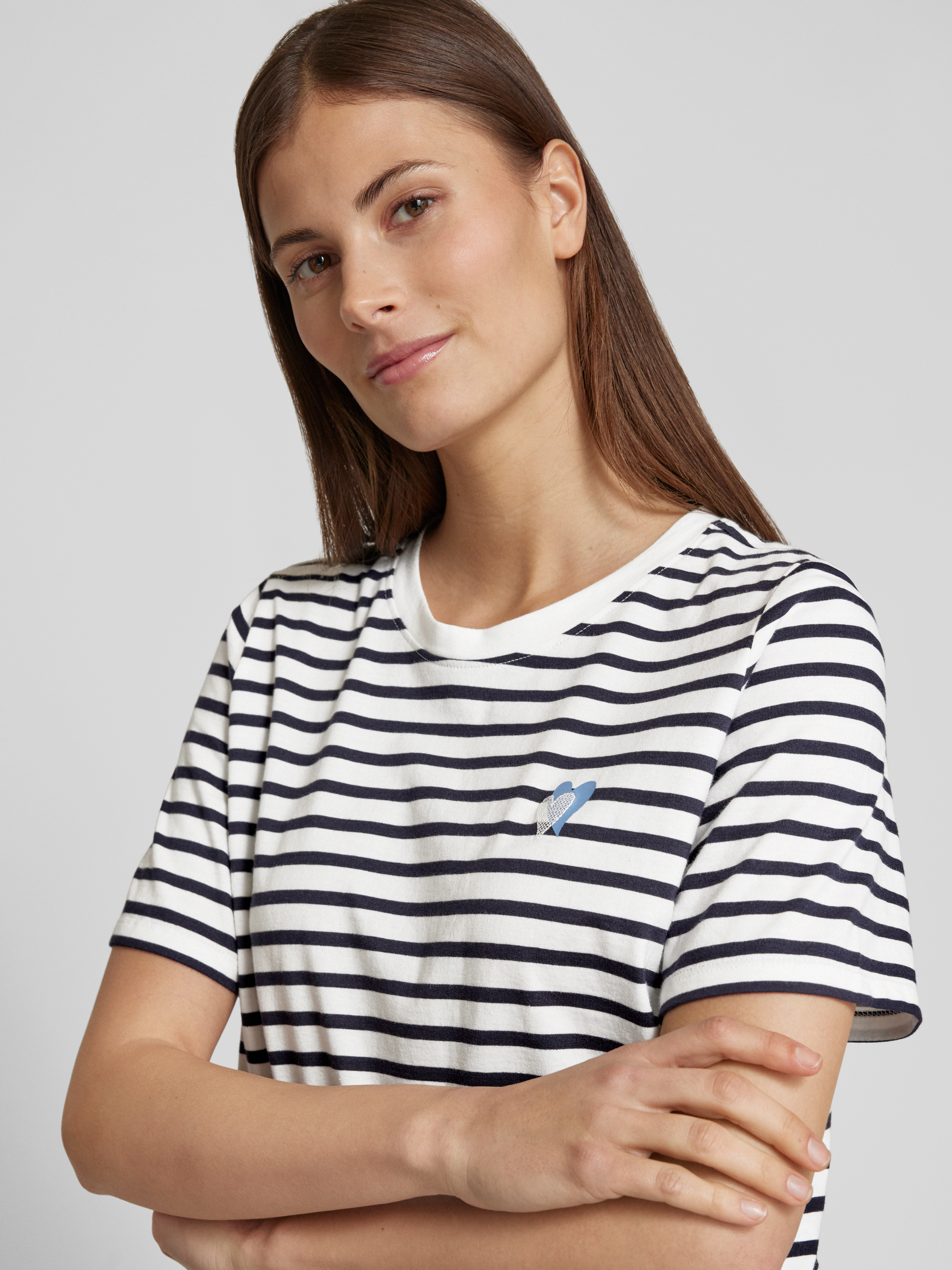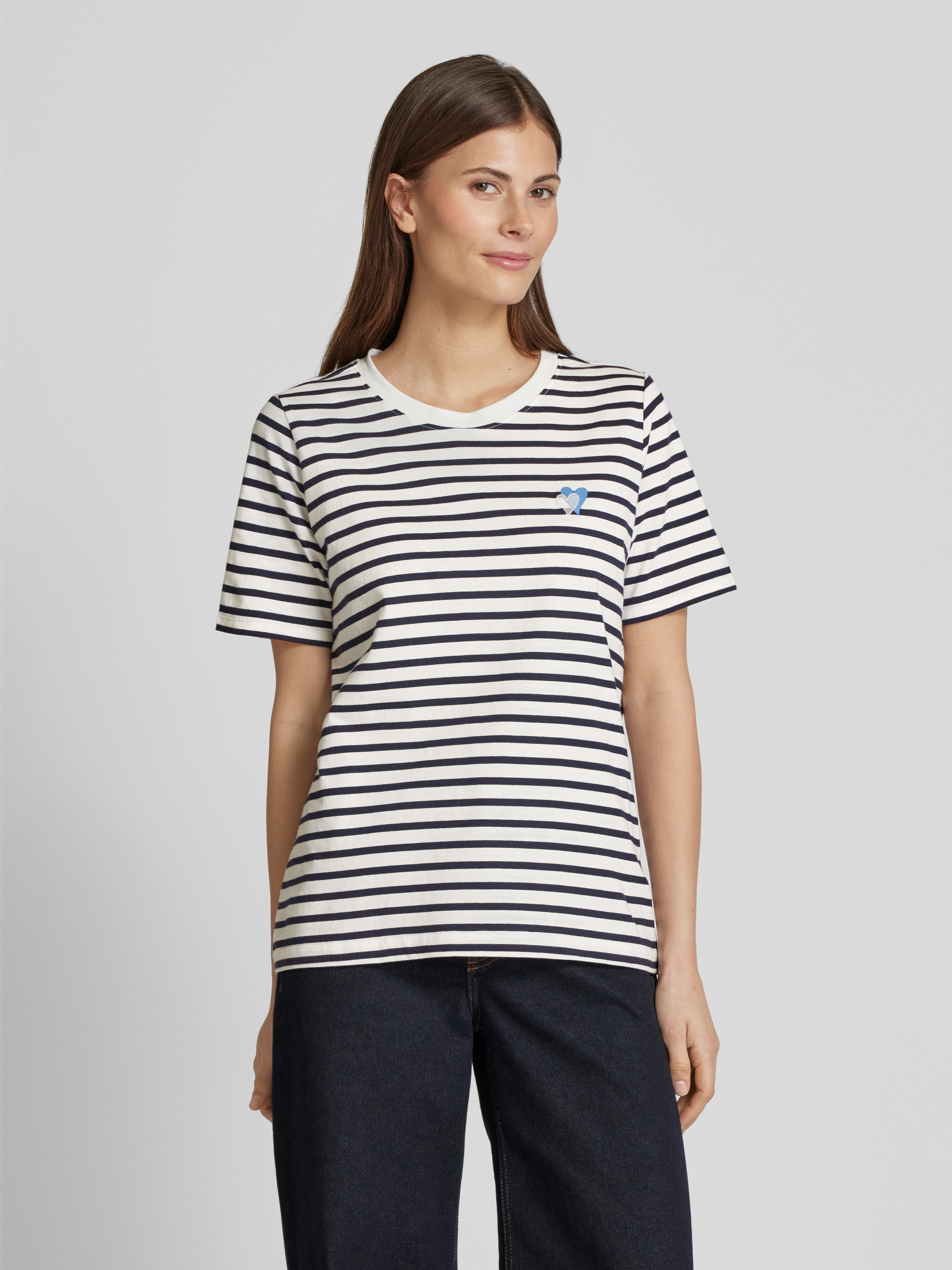 T-shirt o kroju relaxed fit z czystej bawełny z wyhaftowanym sercem - granatowy