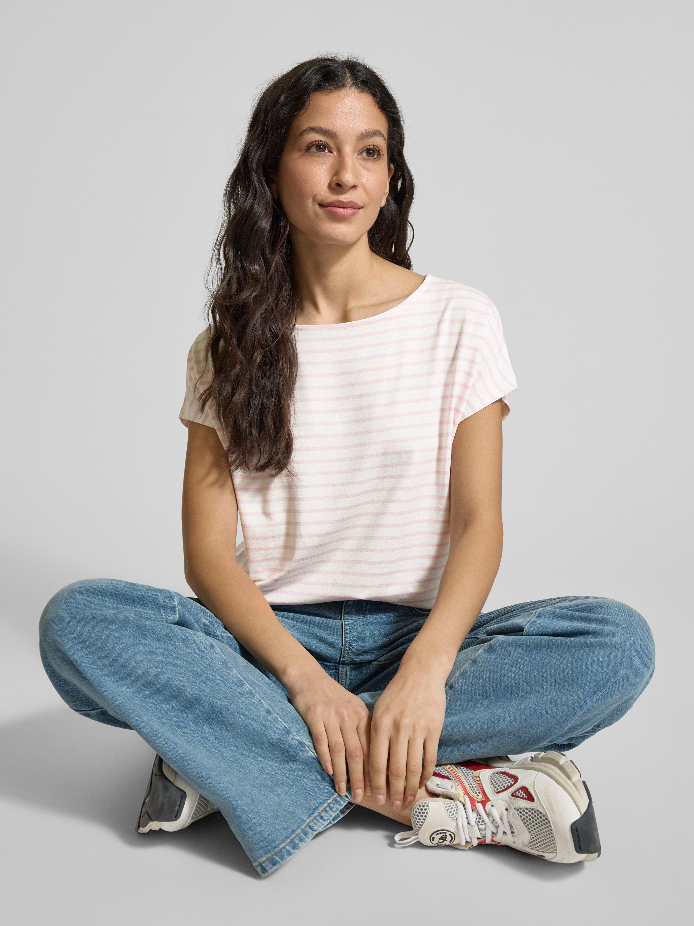 s.Oliver RED LABELT-shirt o kroju relaxed fit z mieszanki wiskozy z obniżonymi ramionami - biały