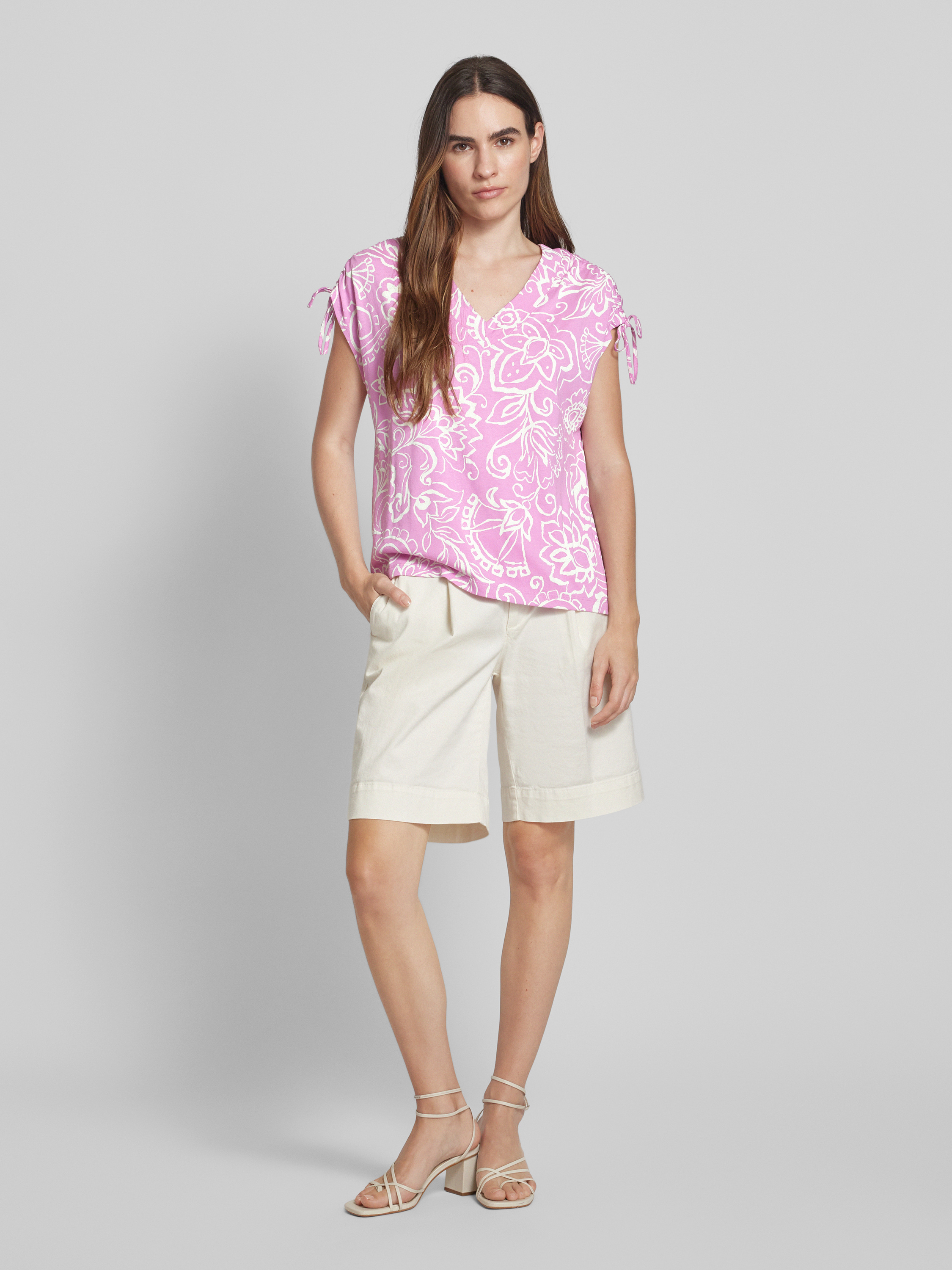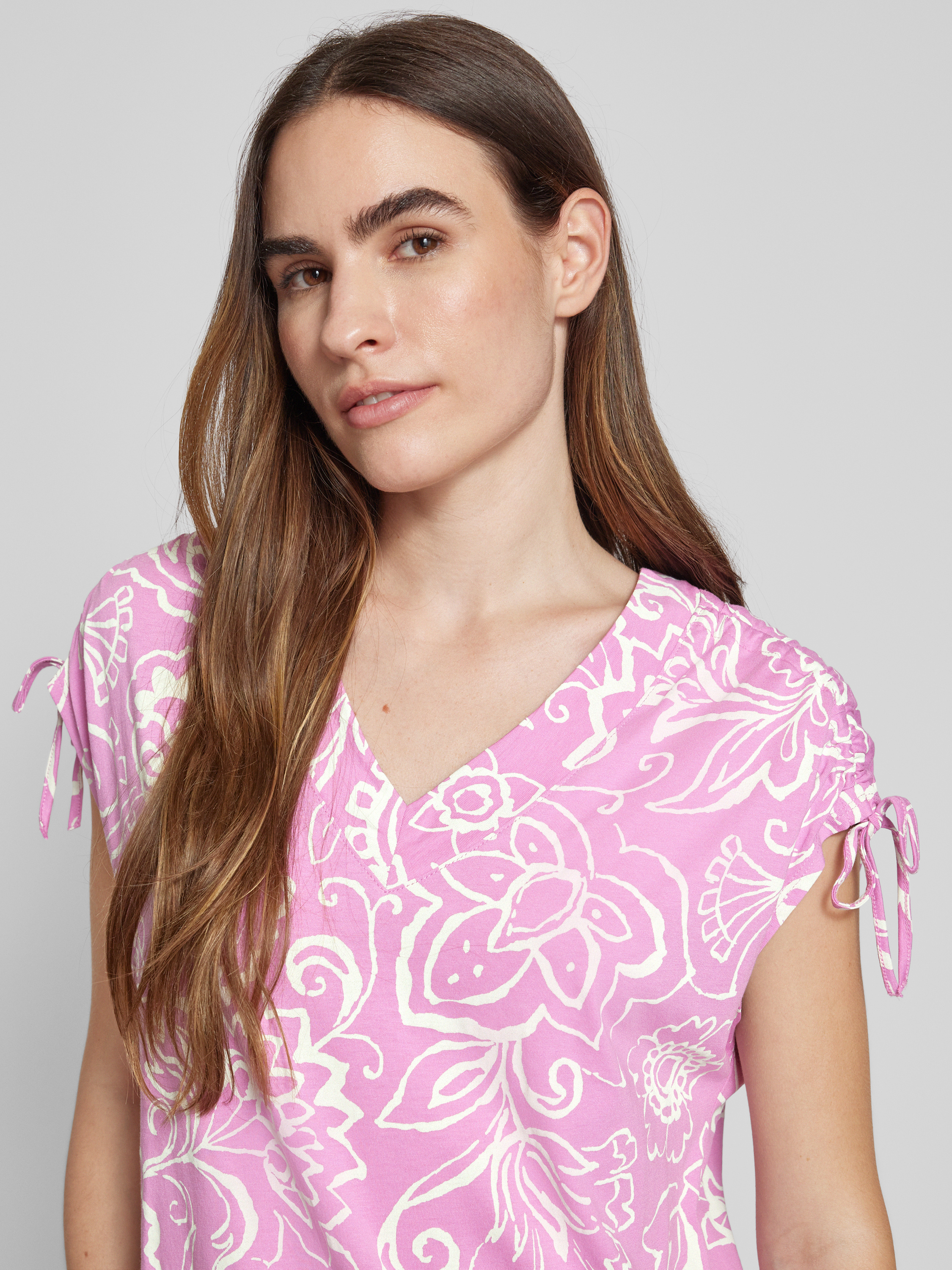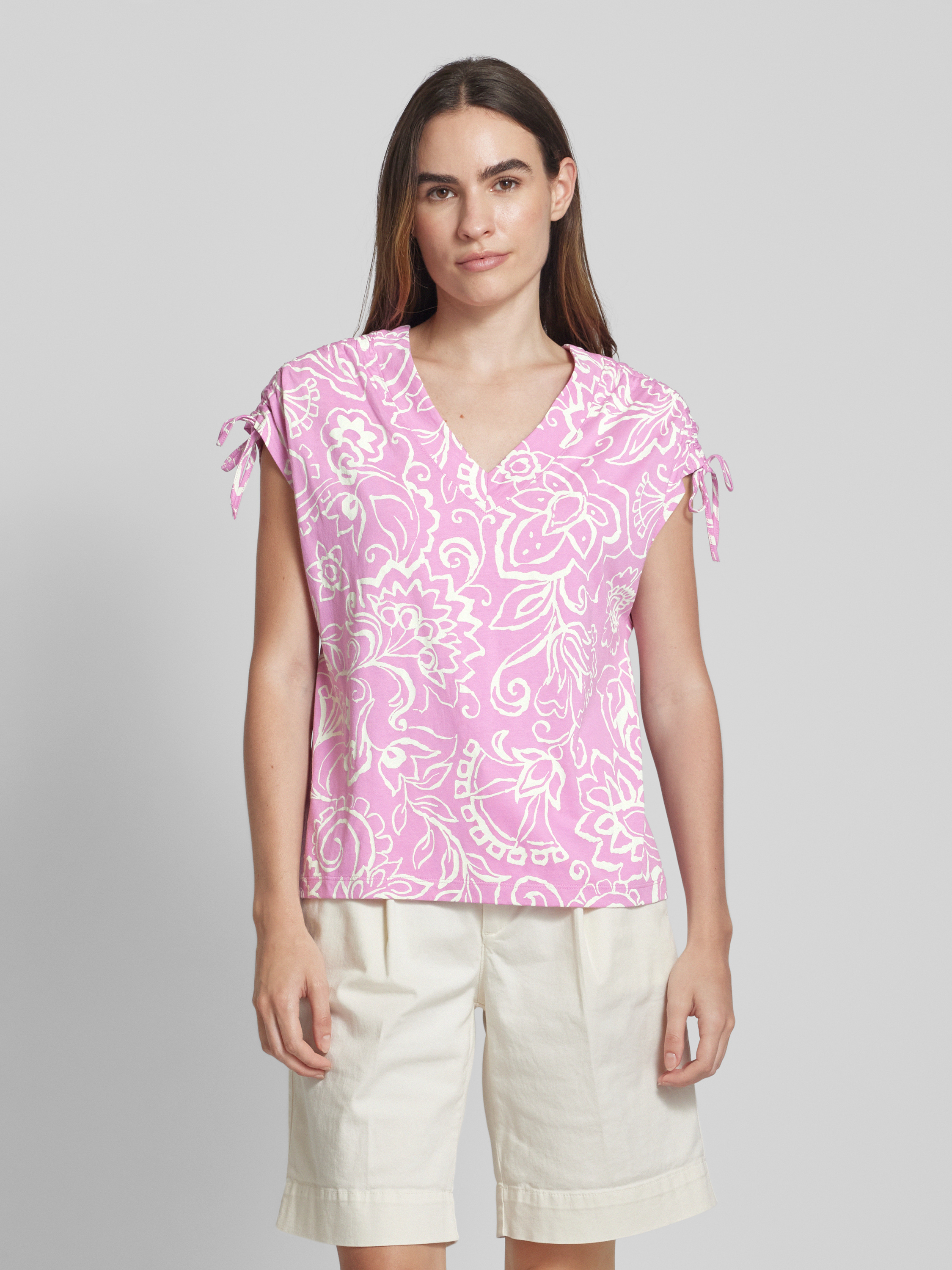 T-shirt z dekoltem w serek - różowawy