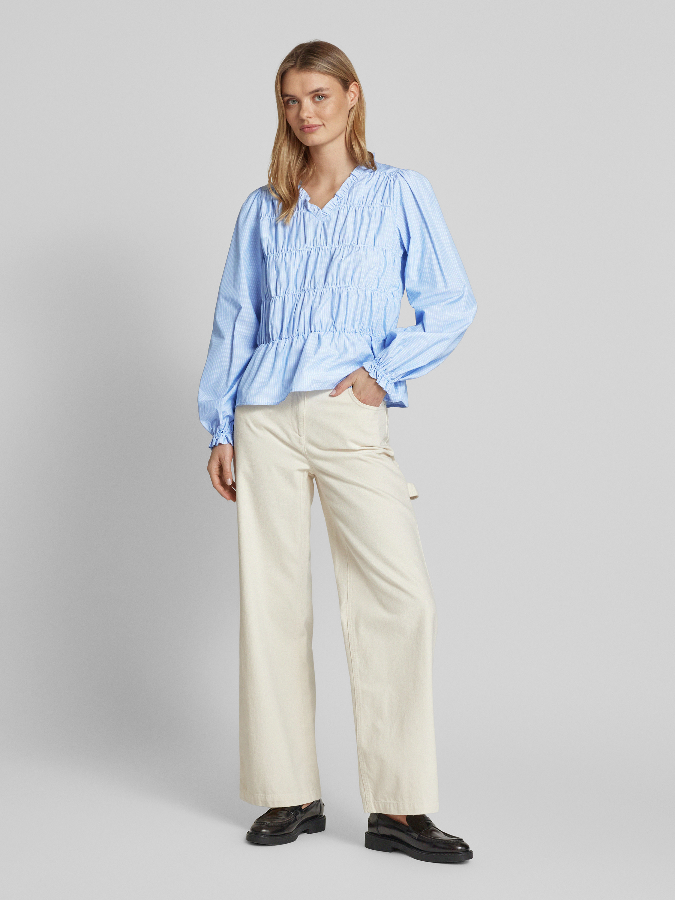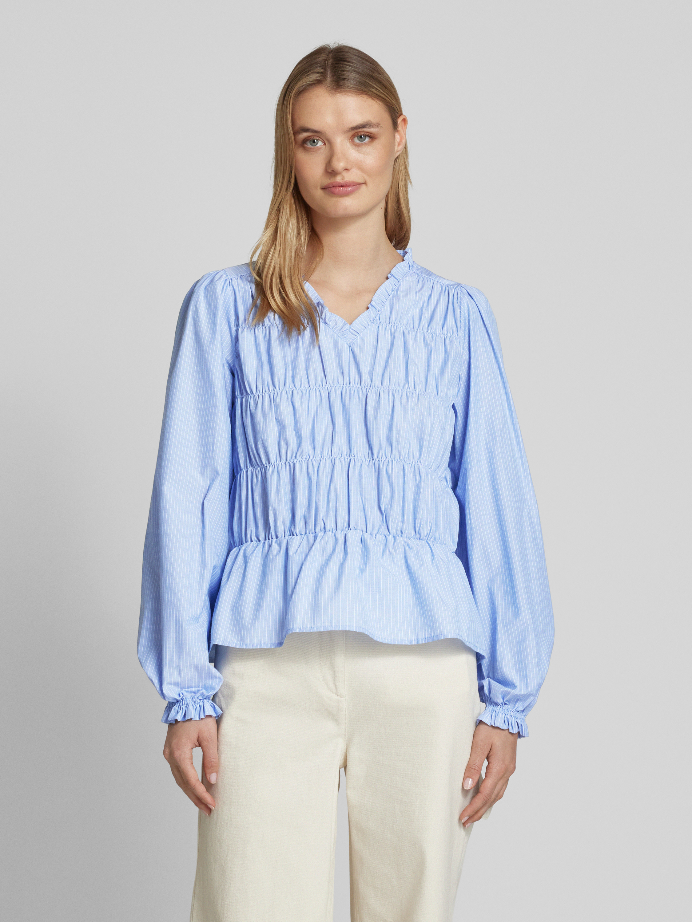 Bluzka o kroju regular fit z dekoltem w serek model ‘ONARI’ - jasnoniebieski