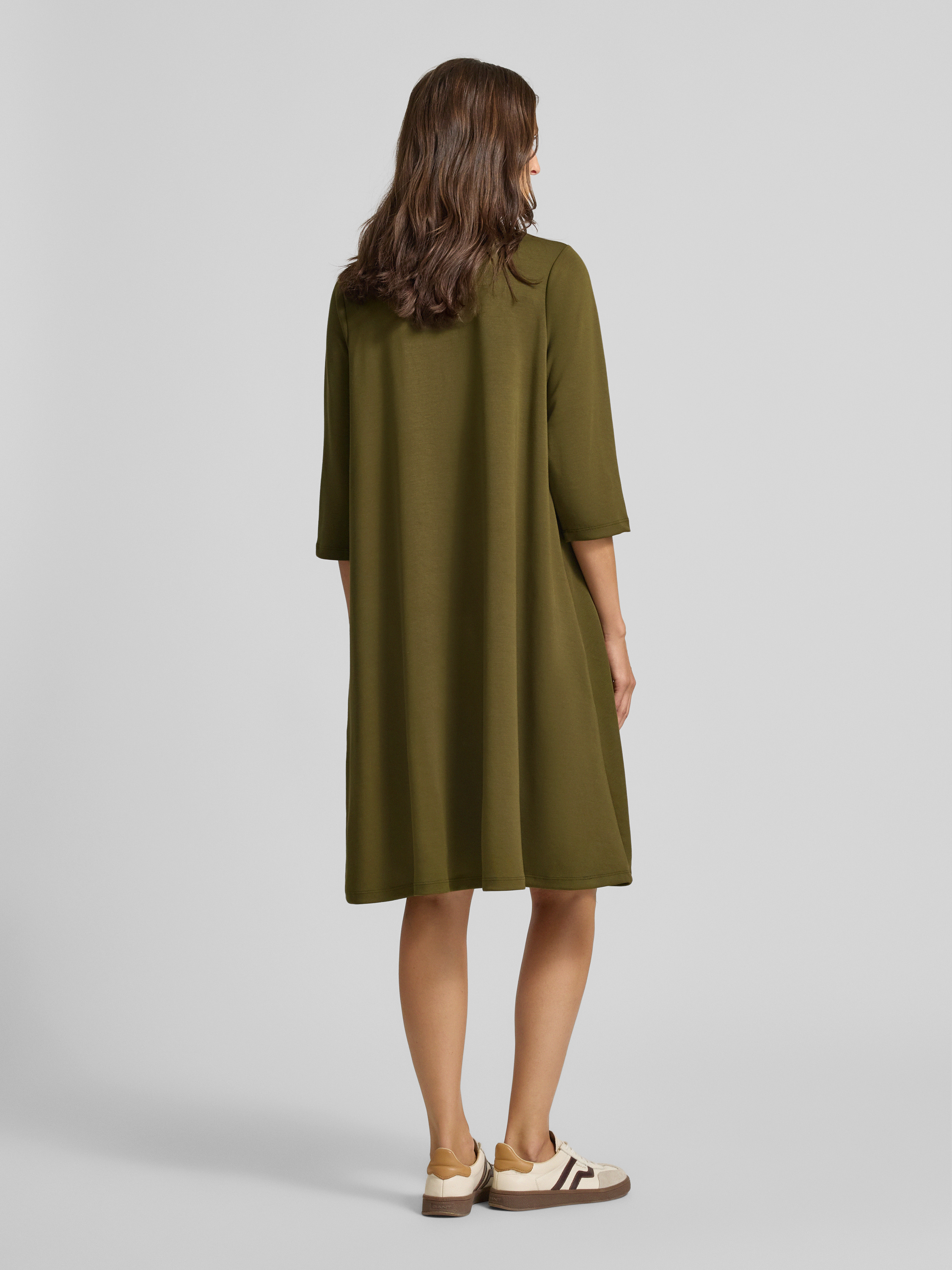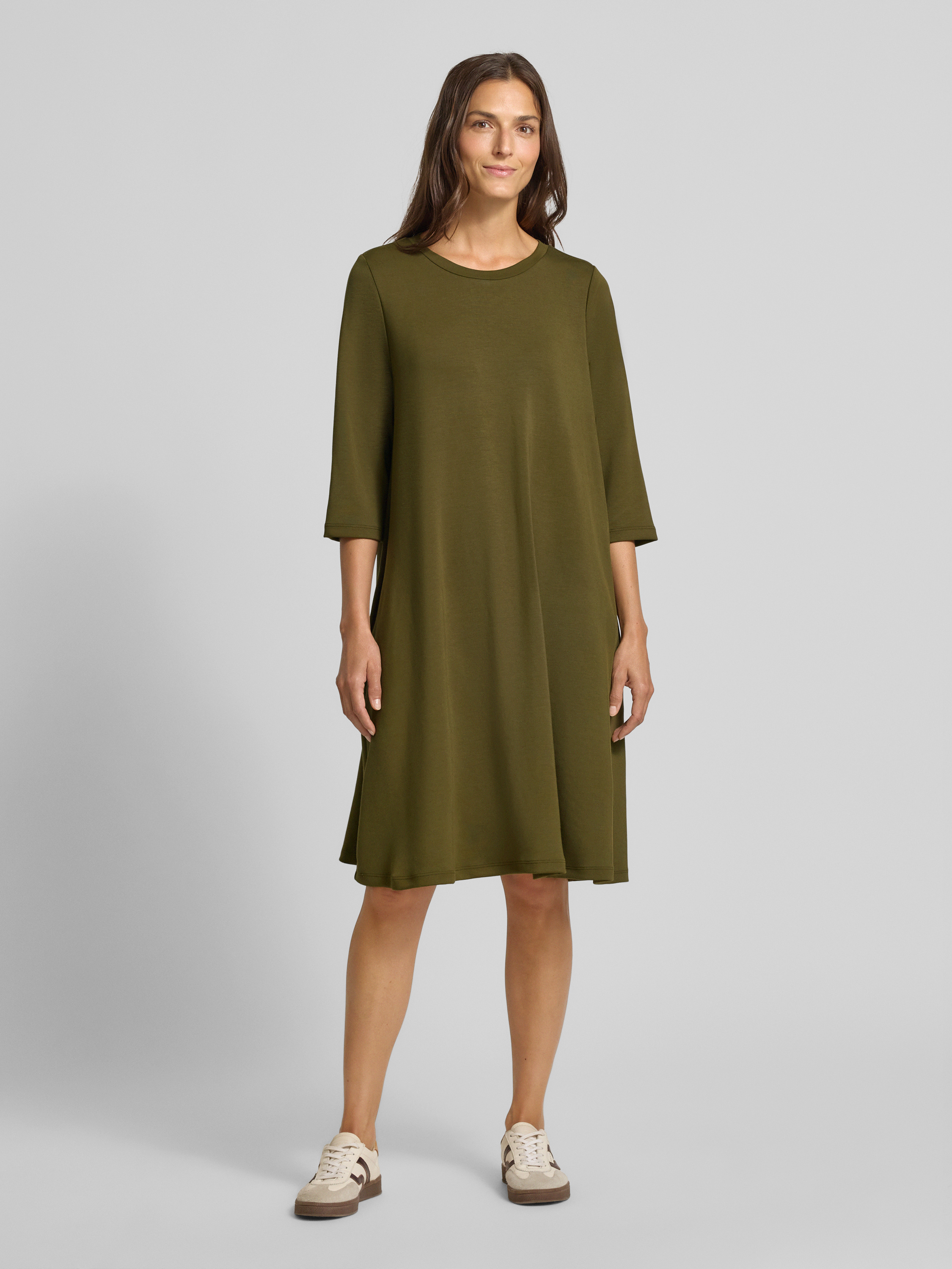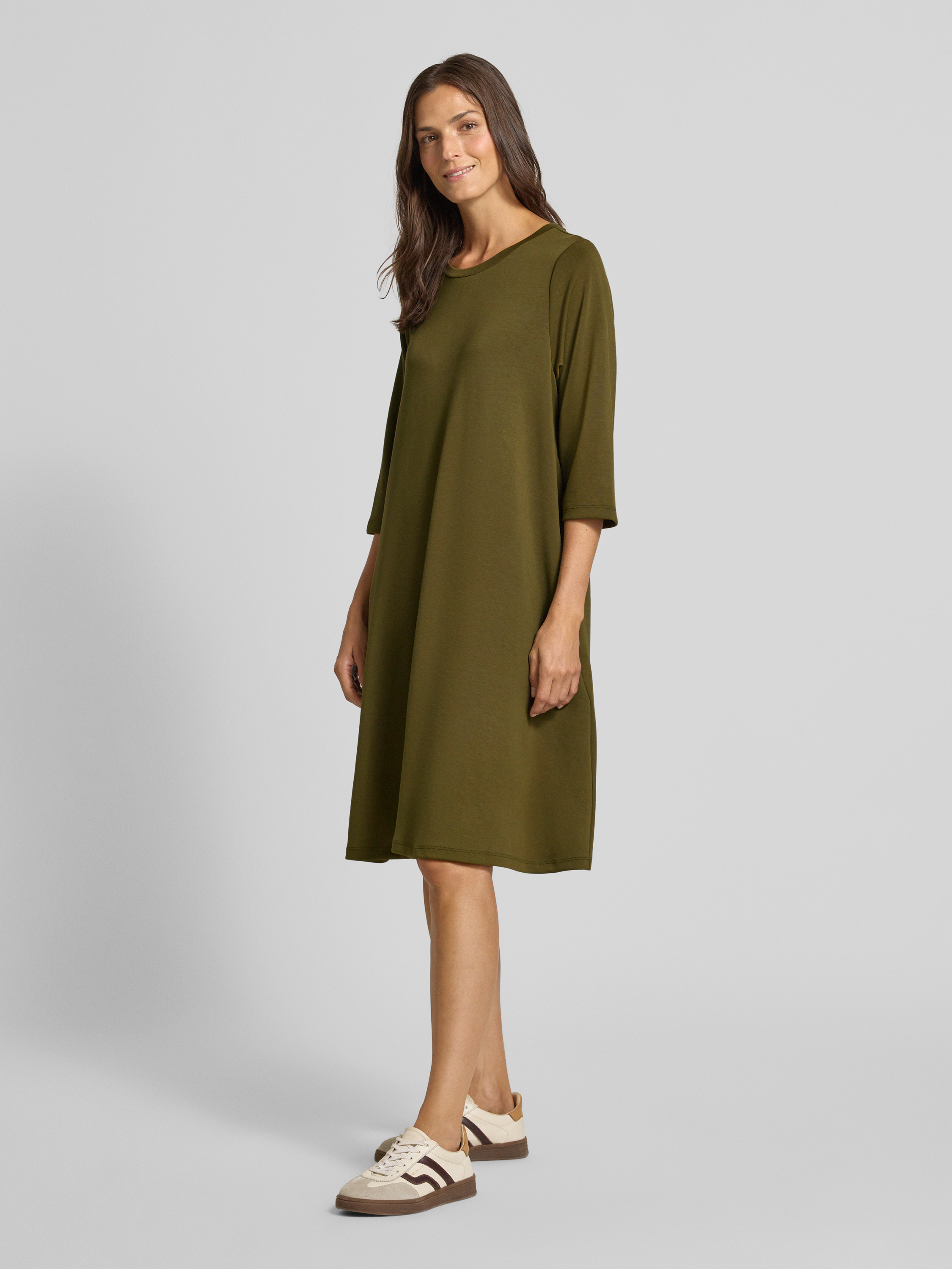 Sukienka o długości do kolan z okrągłym dekoltem model ‘BANU’ - oliwkowy