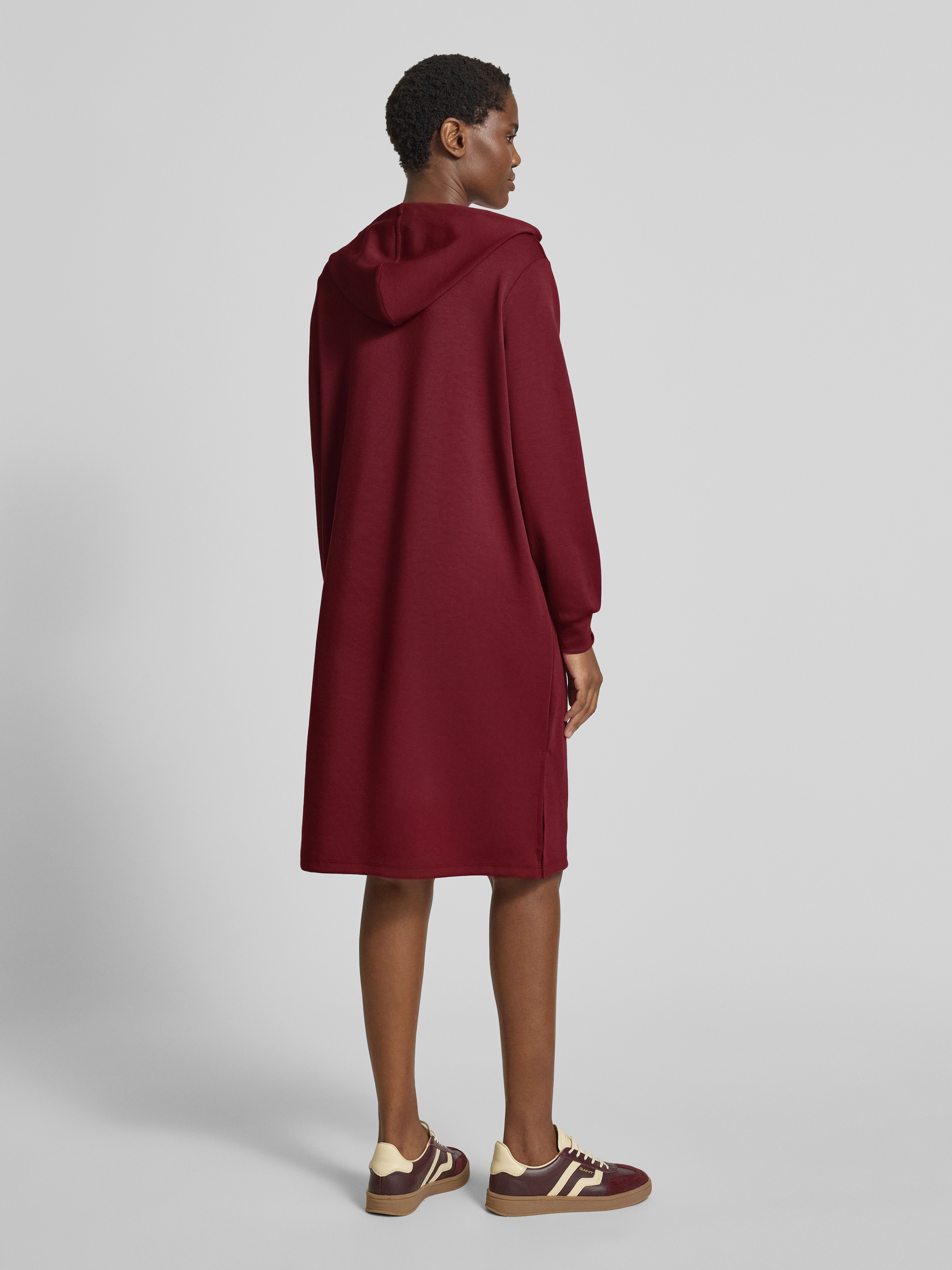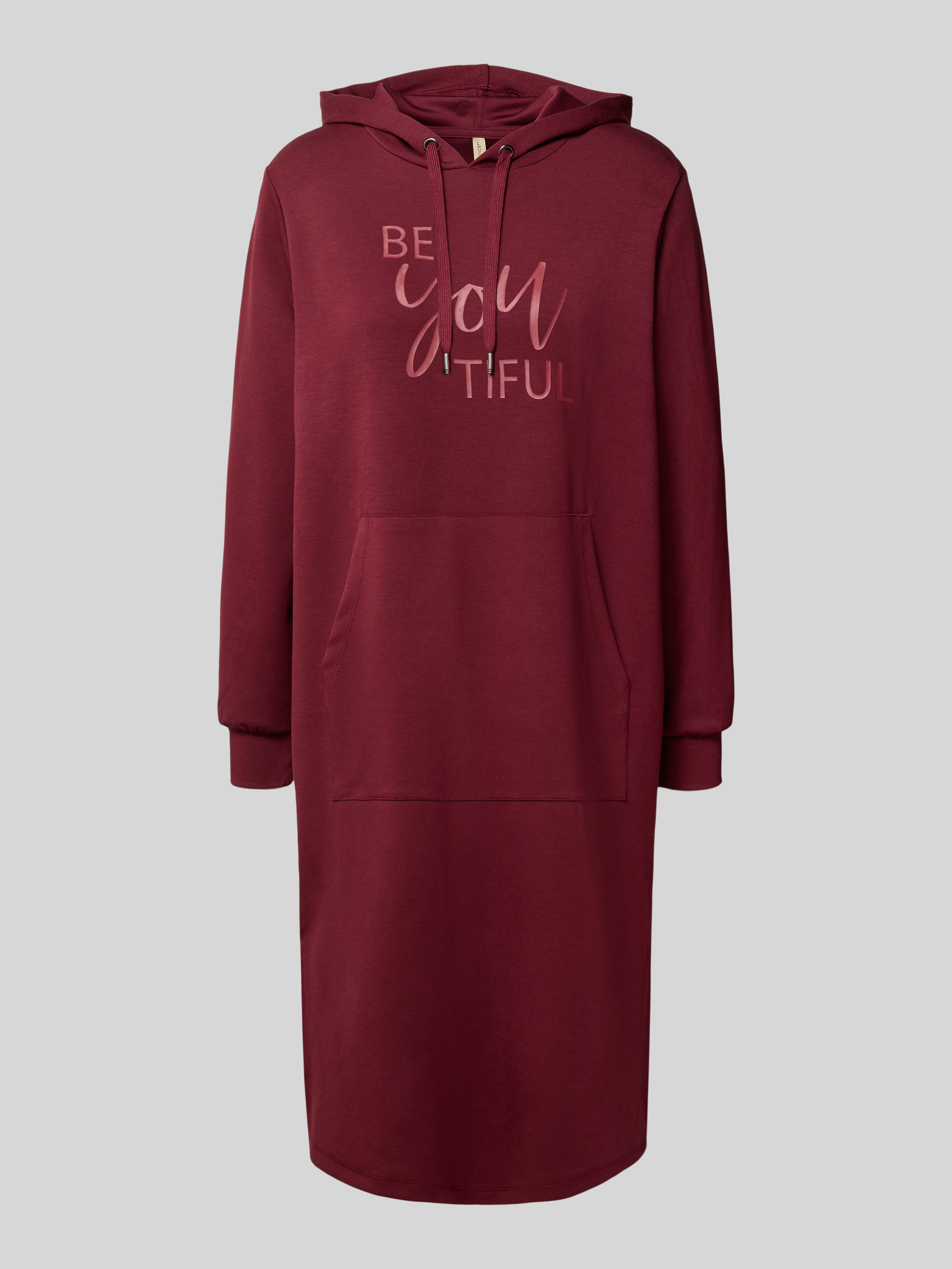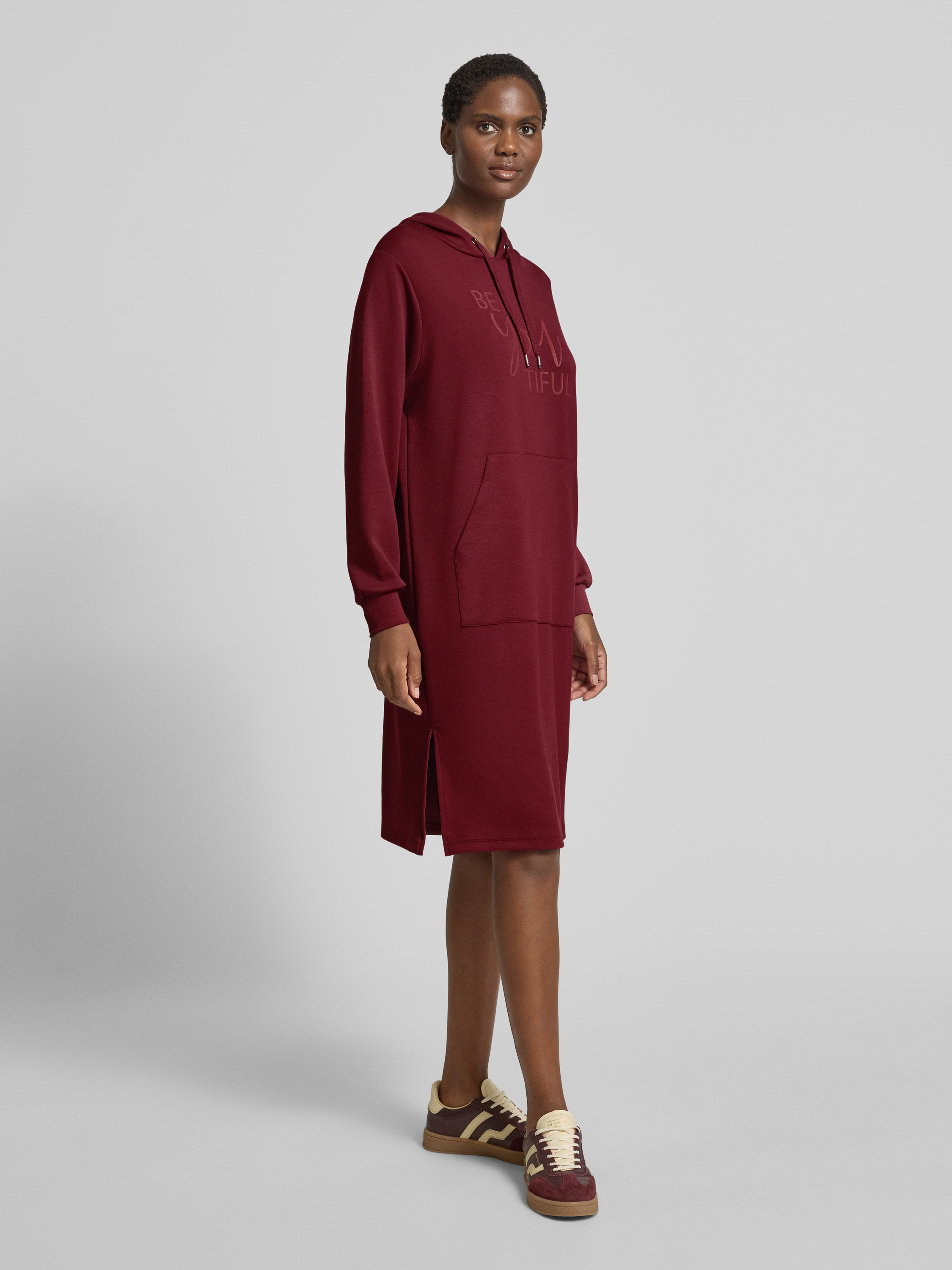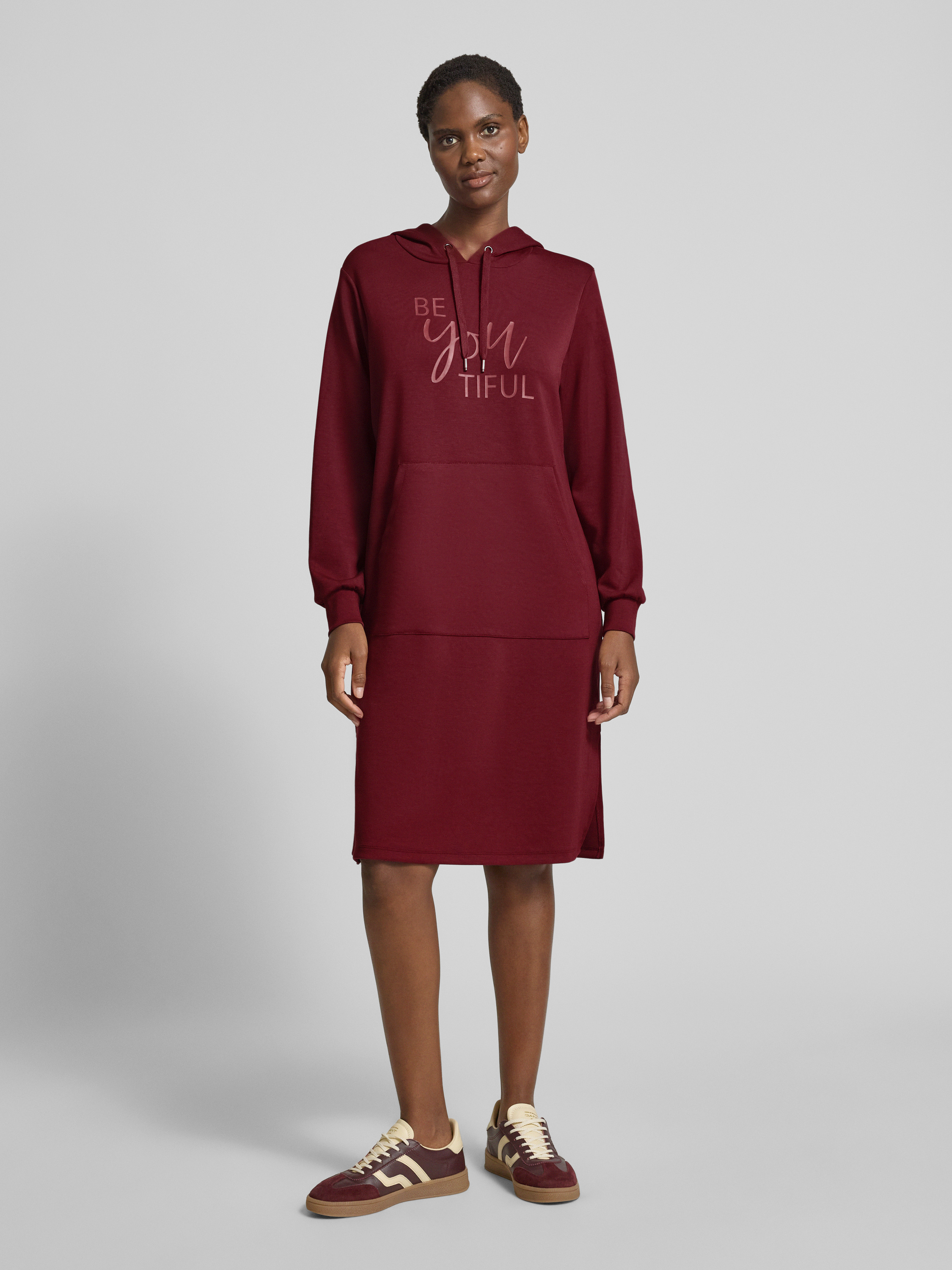 Sukienka z dzianiny dresowej i kieszenią kangurką model ‘BANU’ - bordowy