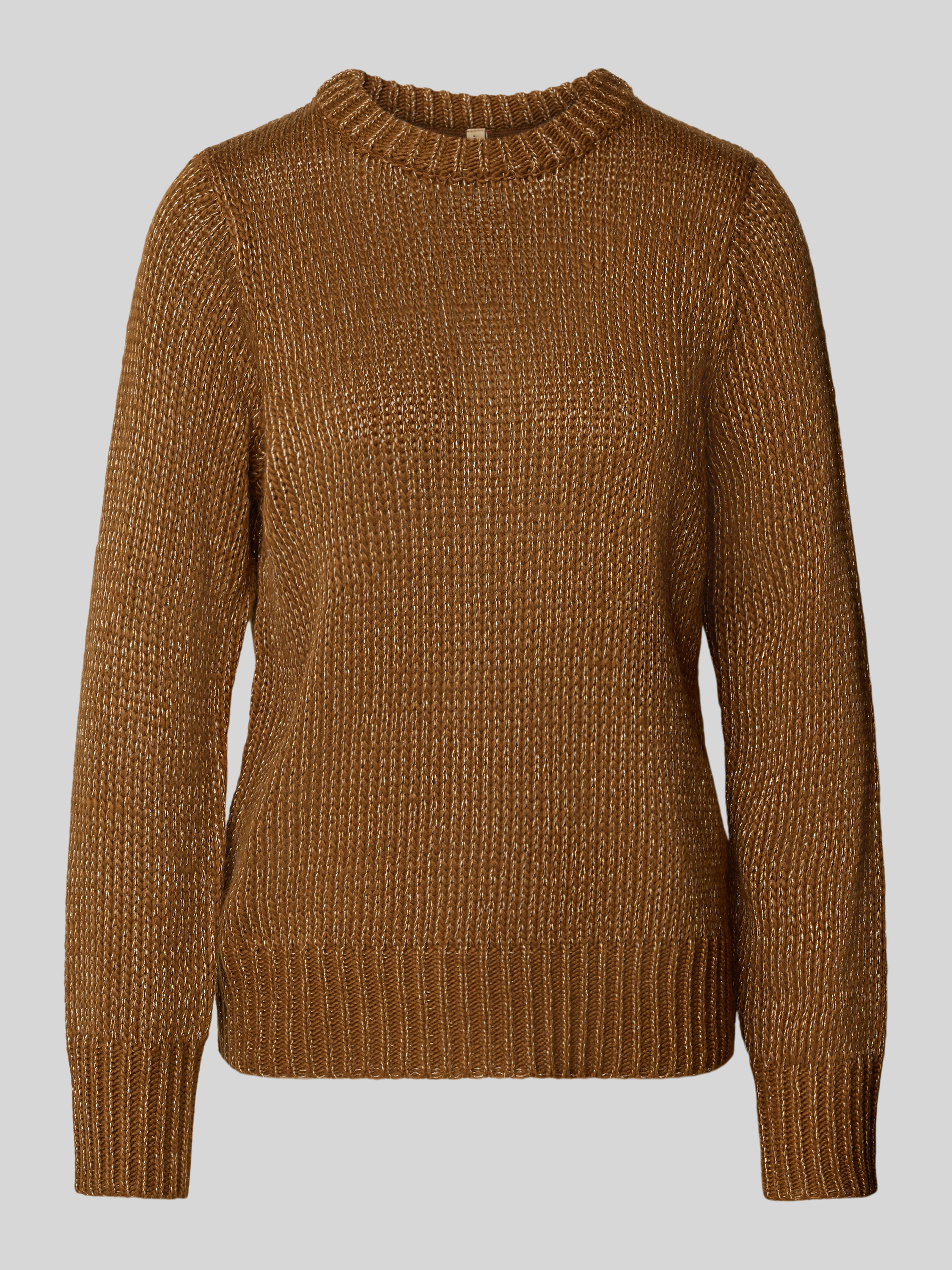 Sweter z dzianiny z prążkowanymi wykończeniami model ‘NALIKKA’ - orzechowy