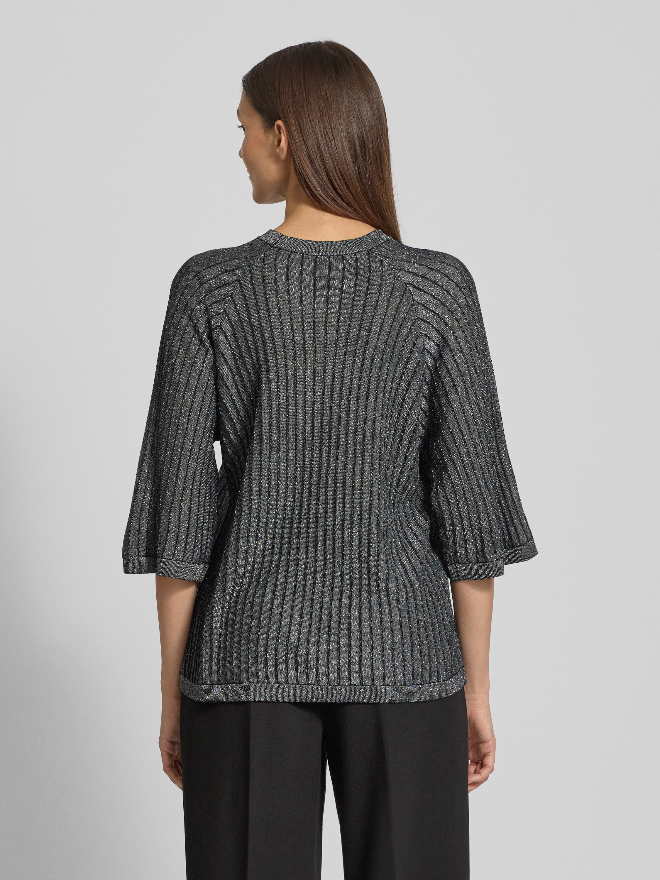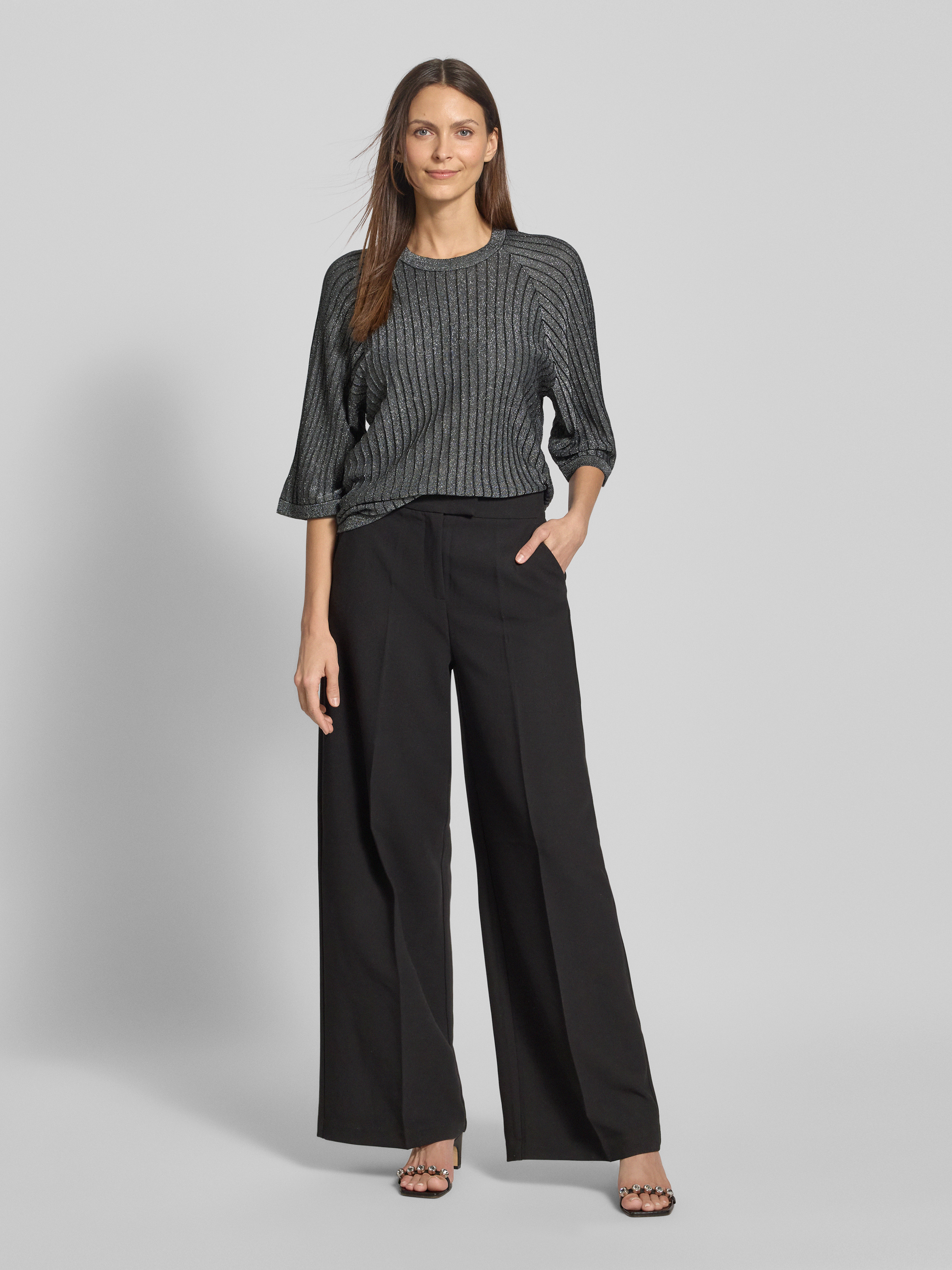 SoyaconceptSweter z dzianiny z prążkowanymi wykończeniami model ‘VIOLETTA’ - metaliczny czarny