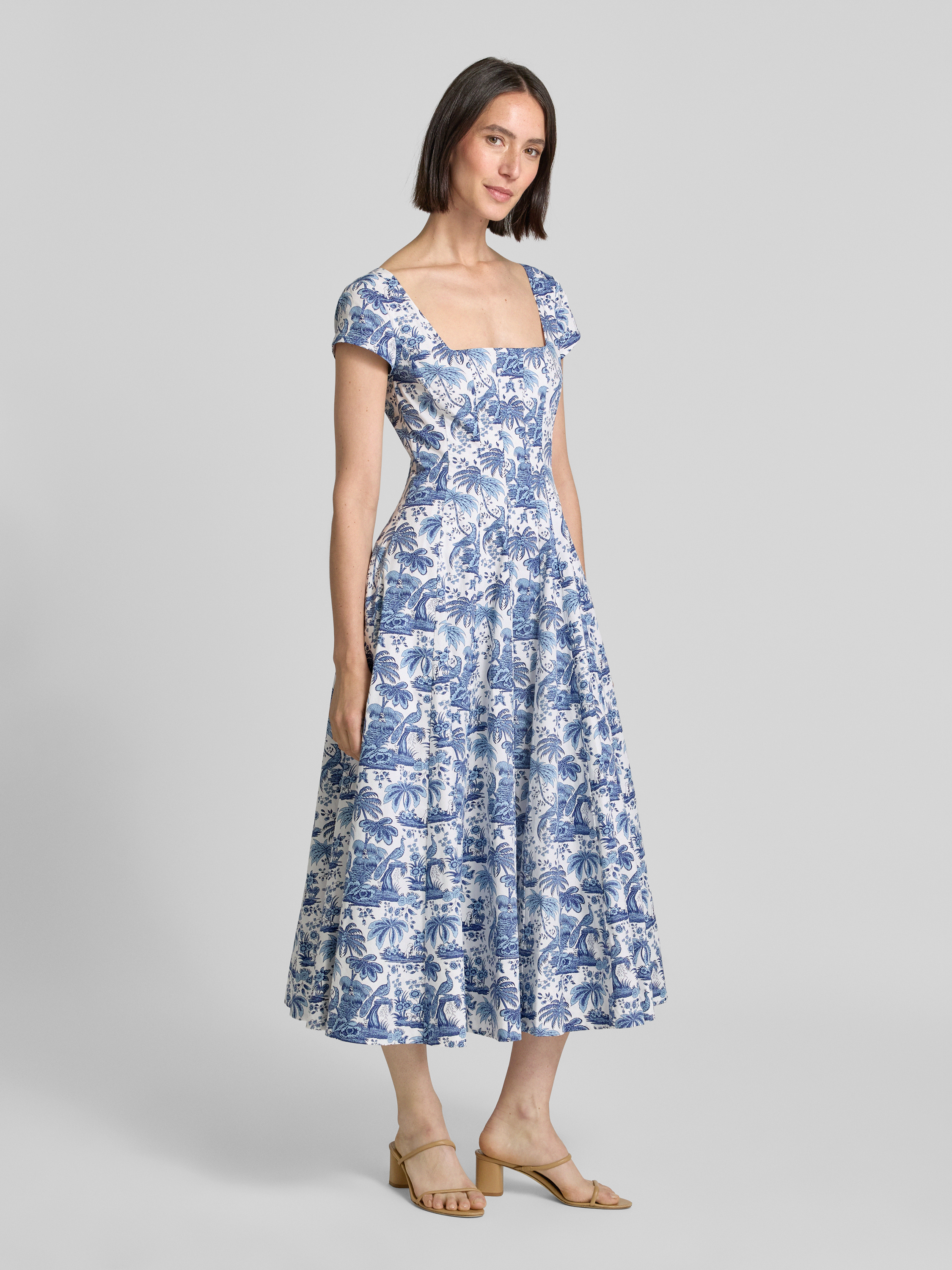 Sukienka midi z prostokątnym dekoltem model ‘WELLS’ - błękitny