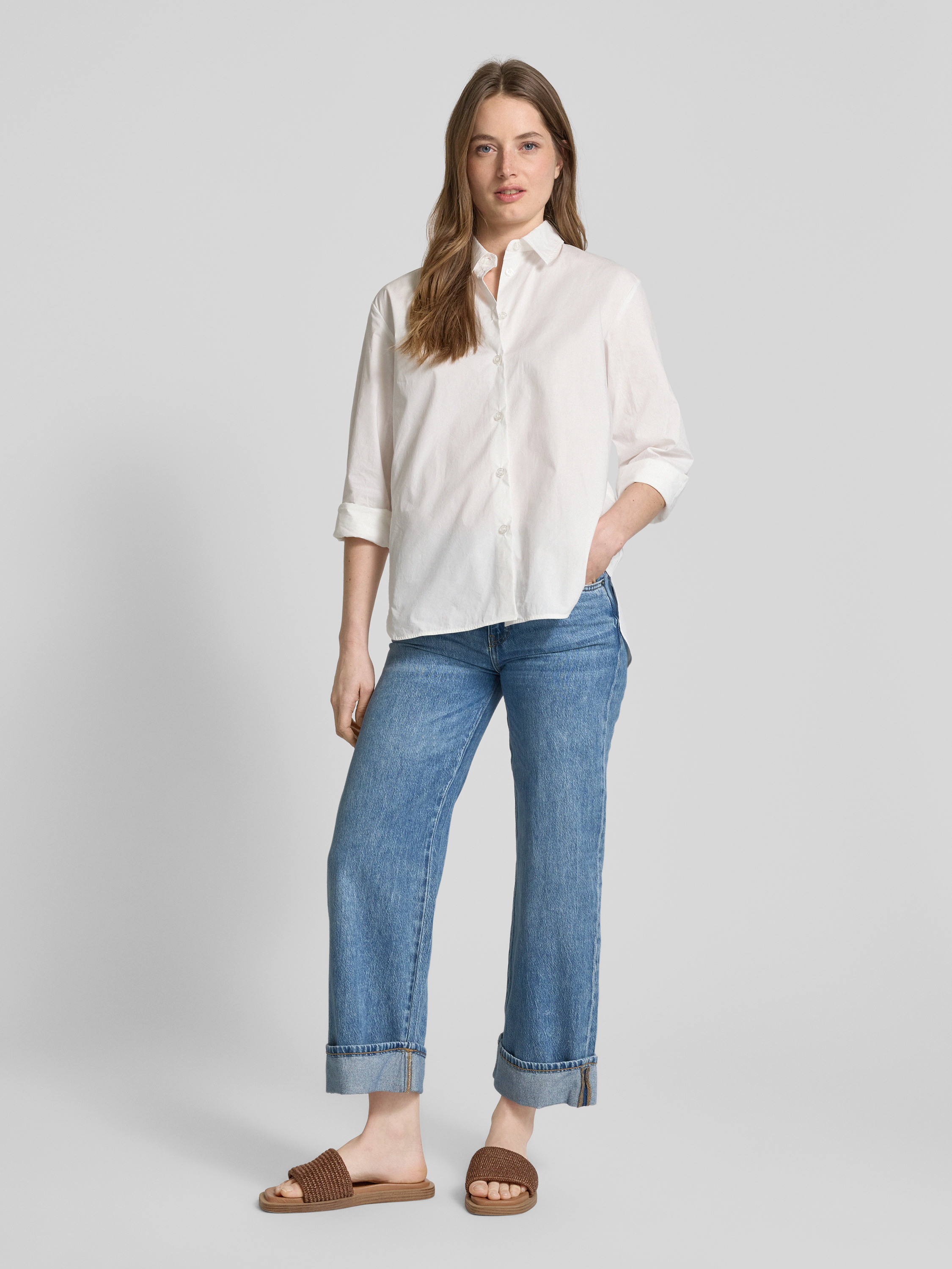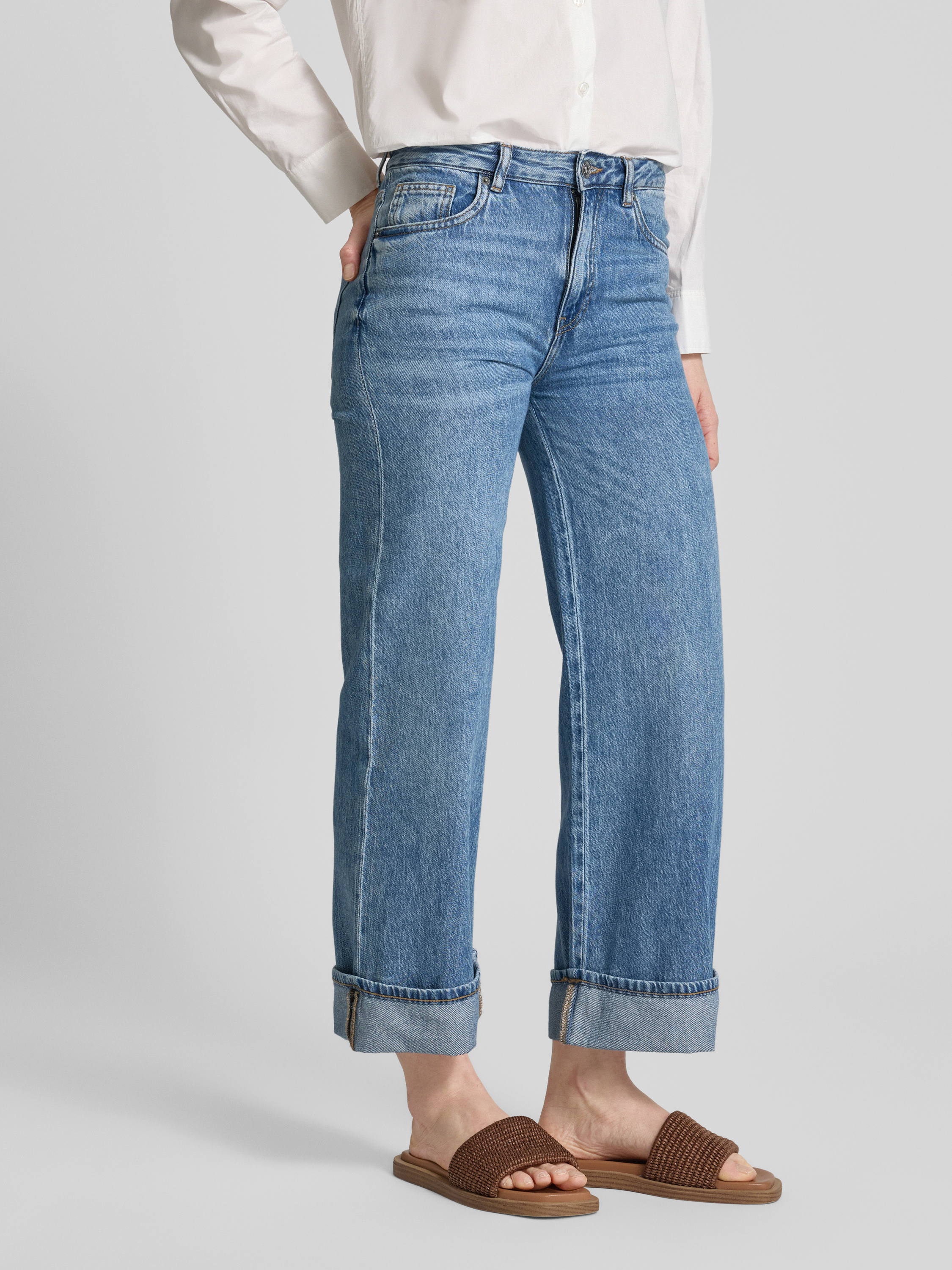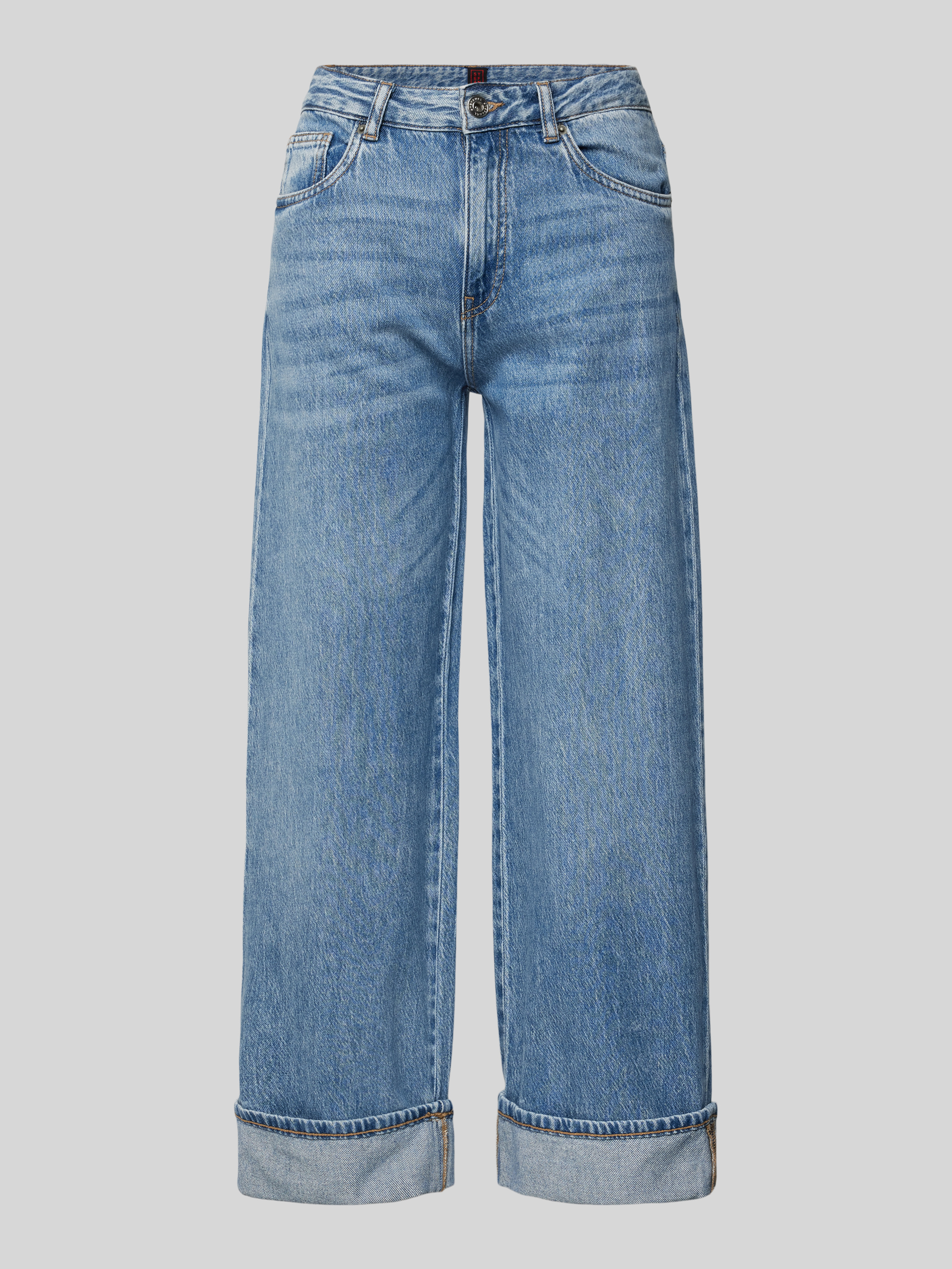 Jeansy z szeroką nogawką i 5 kieszeniami model ‘TURN UP’ - jasnoniebieski