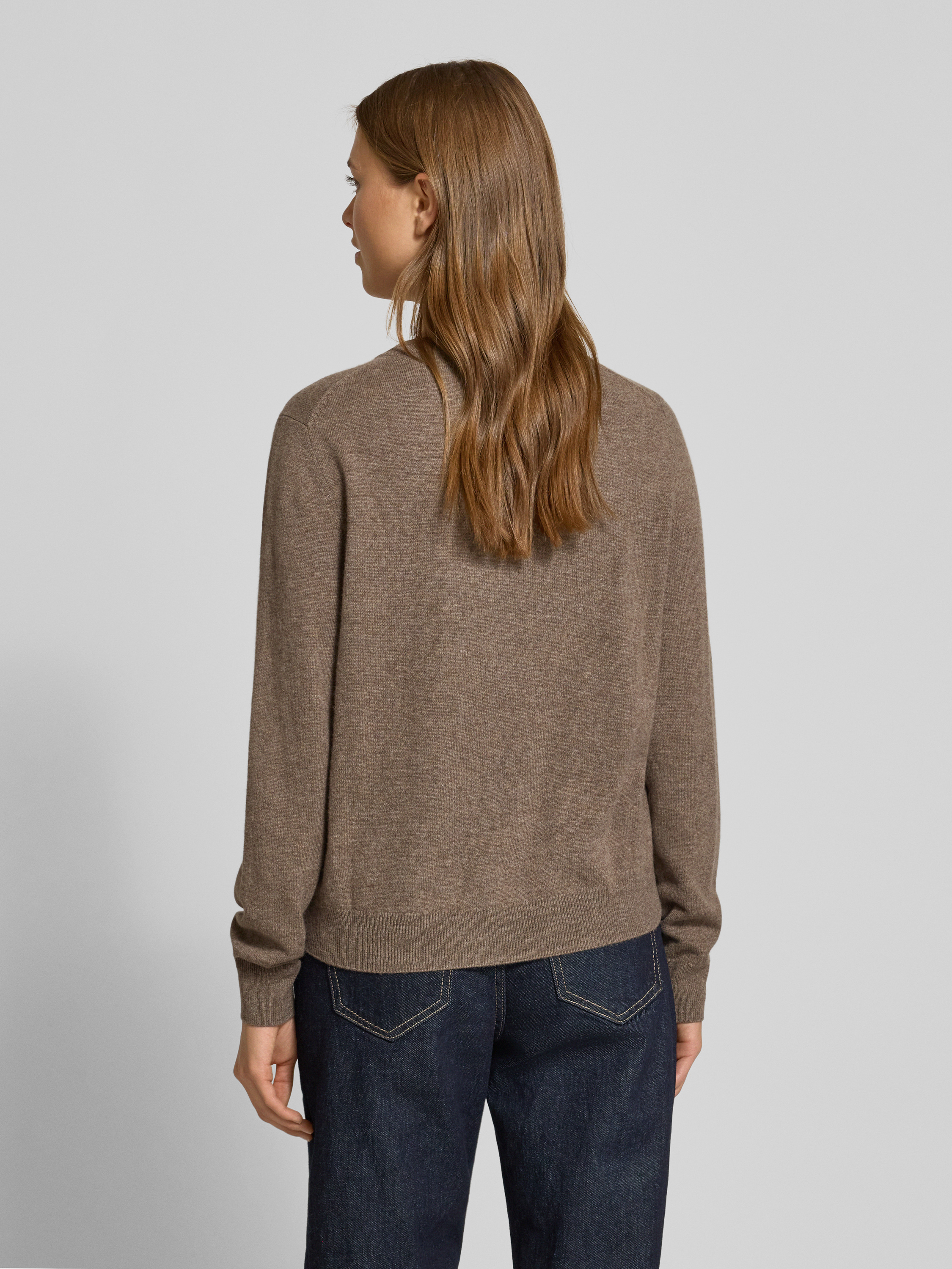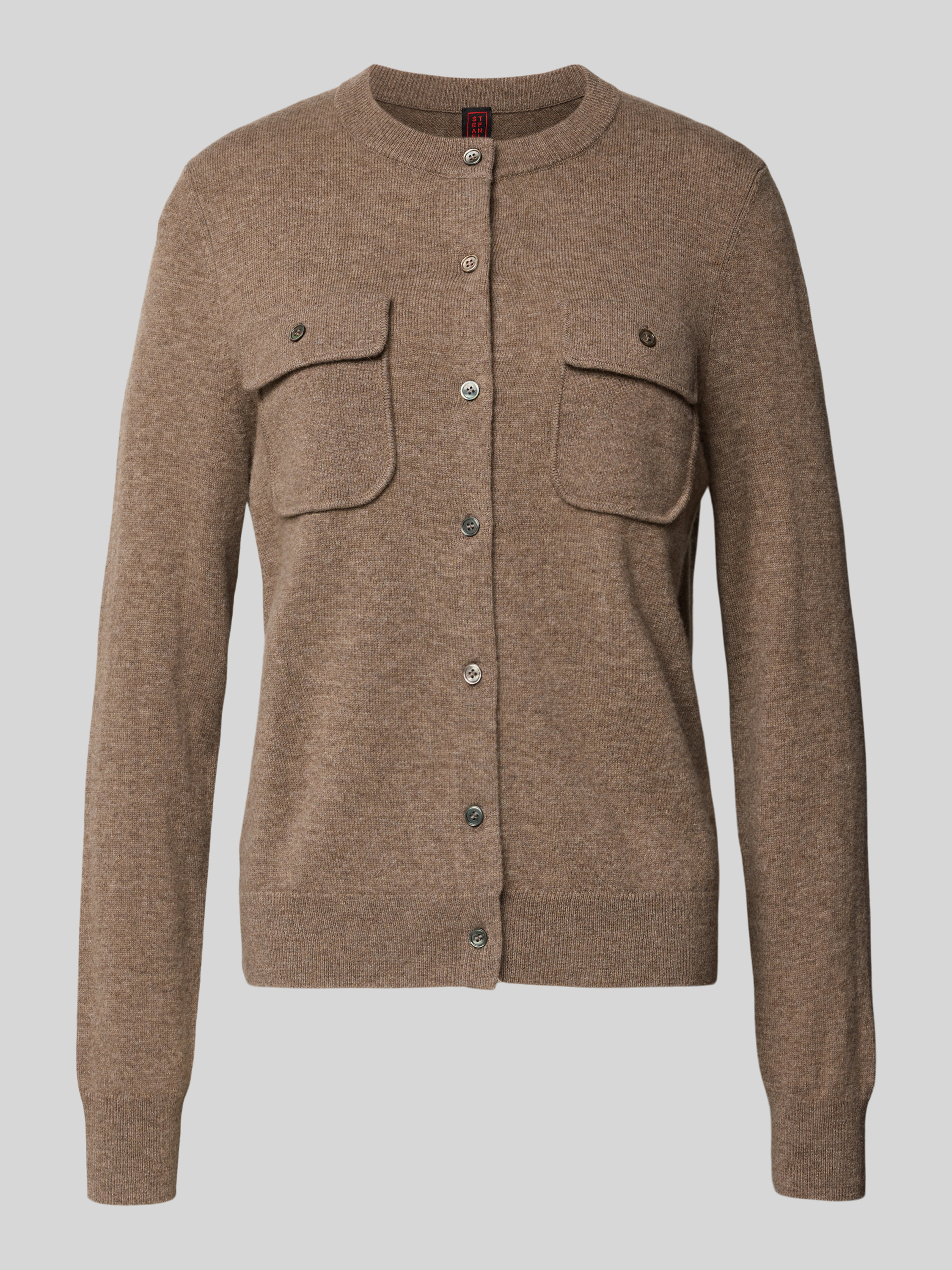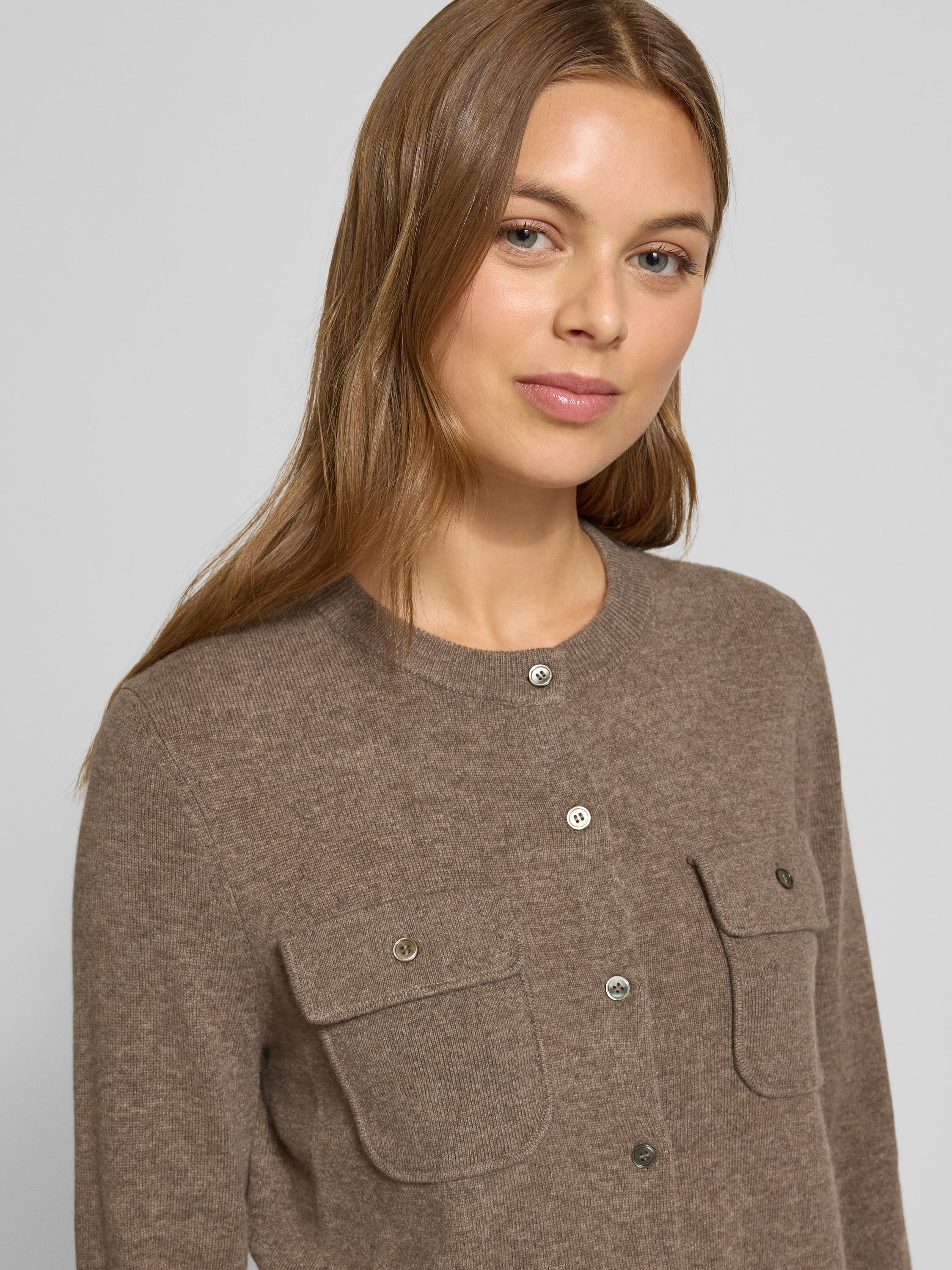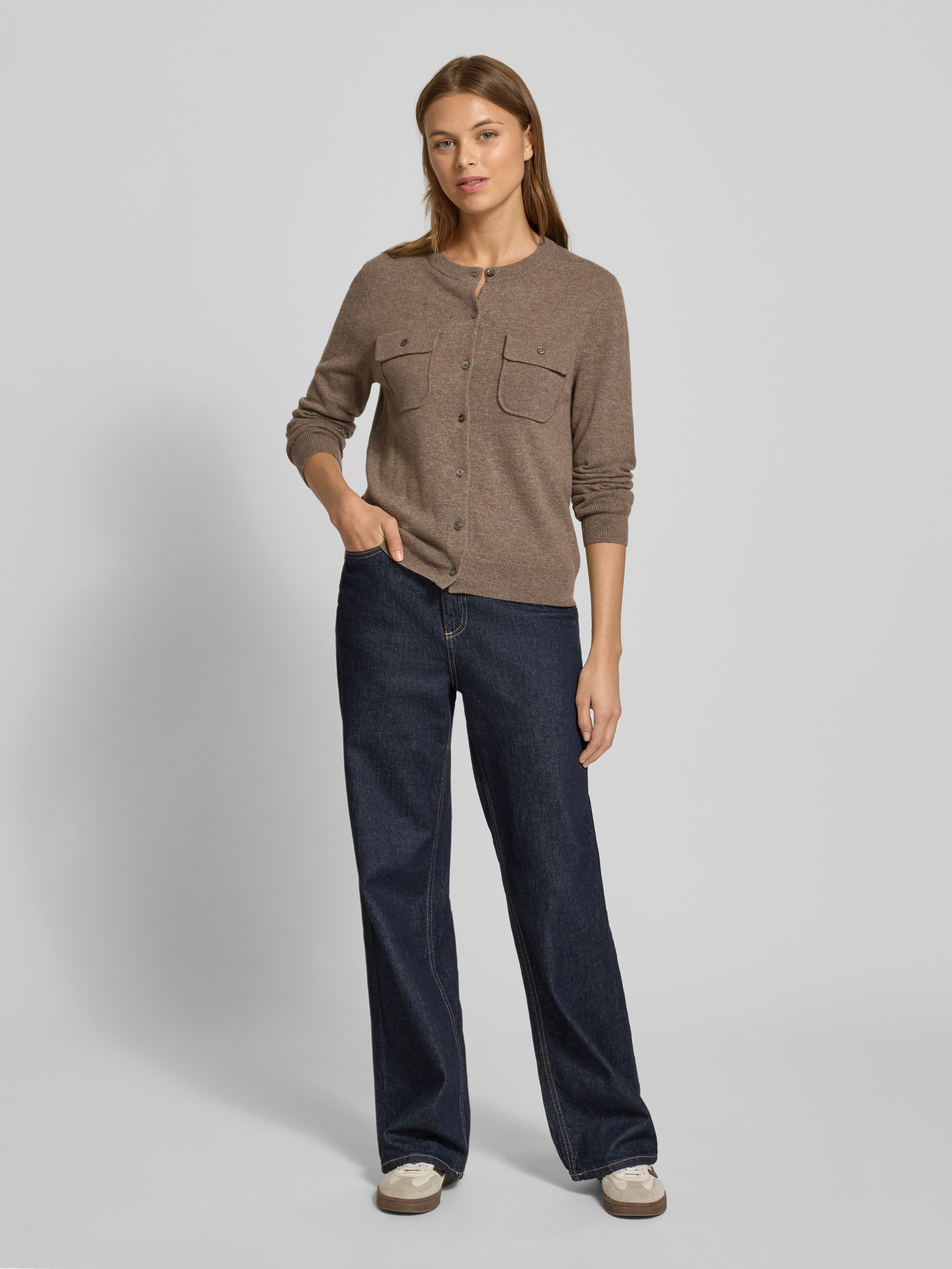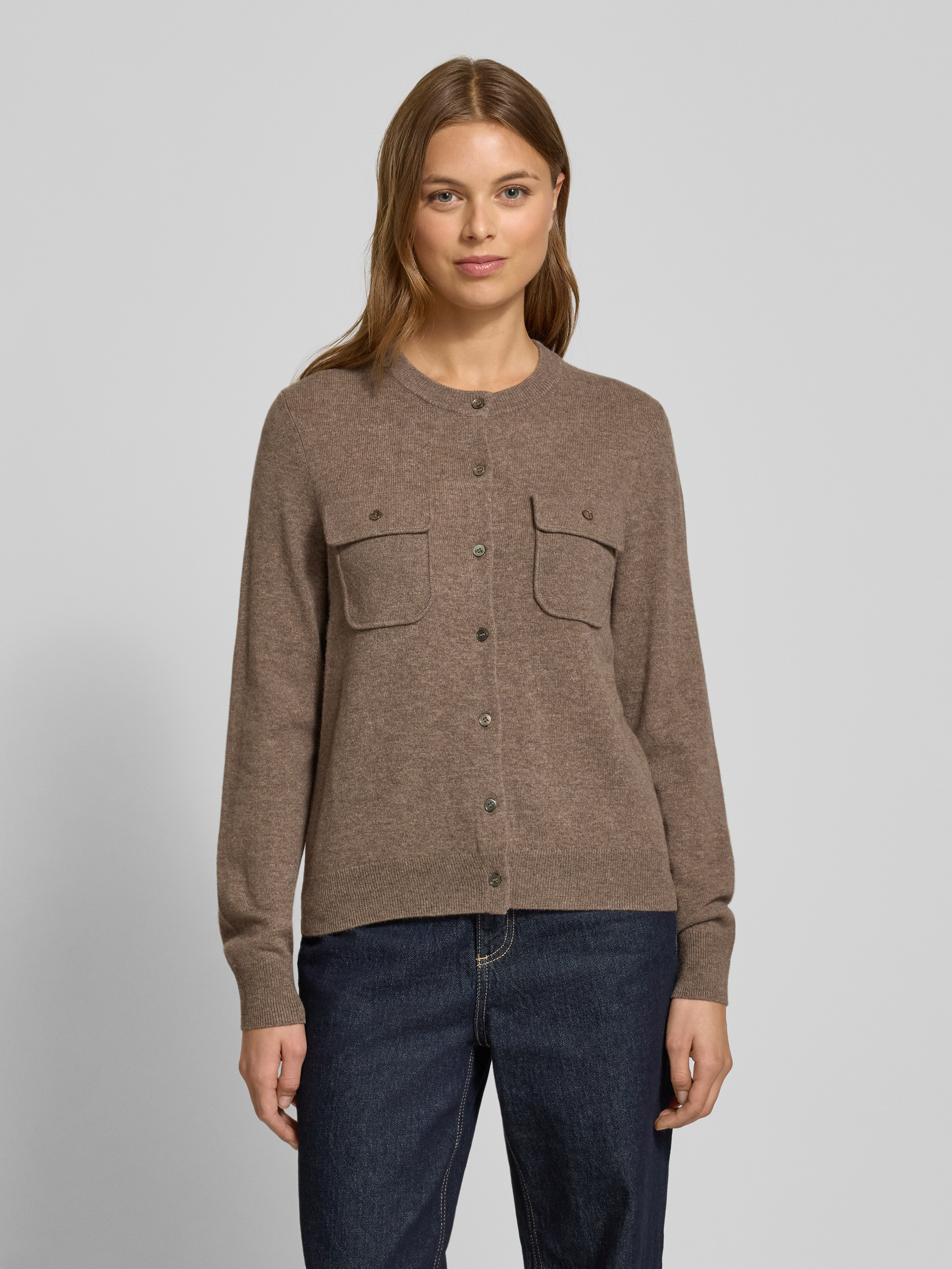 Kurtka z dzianiny o kroju regular fit z mieszanki wełny lana i kaszmiru - średniobrązowy