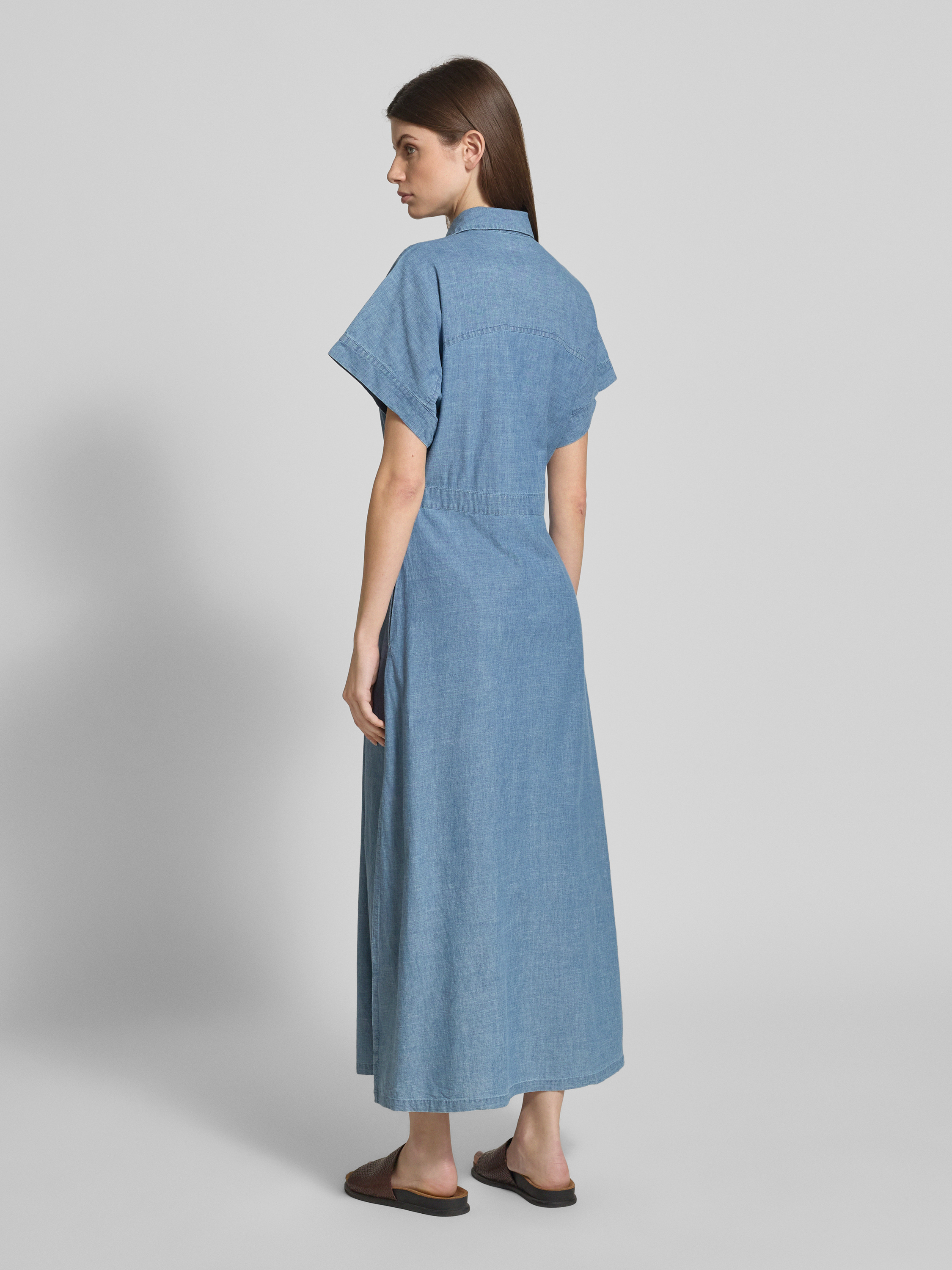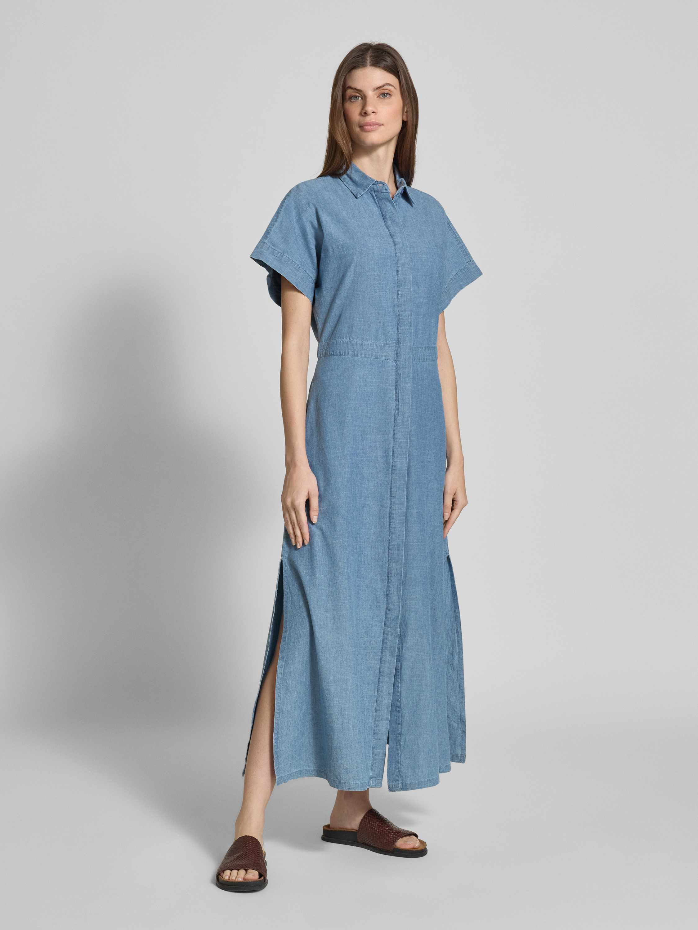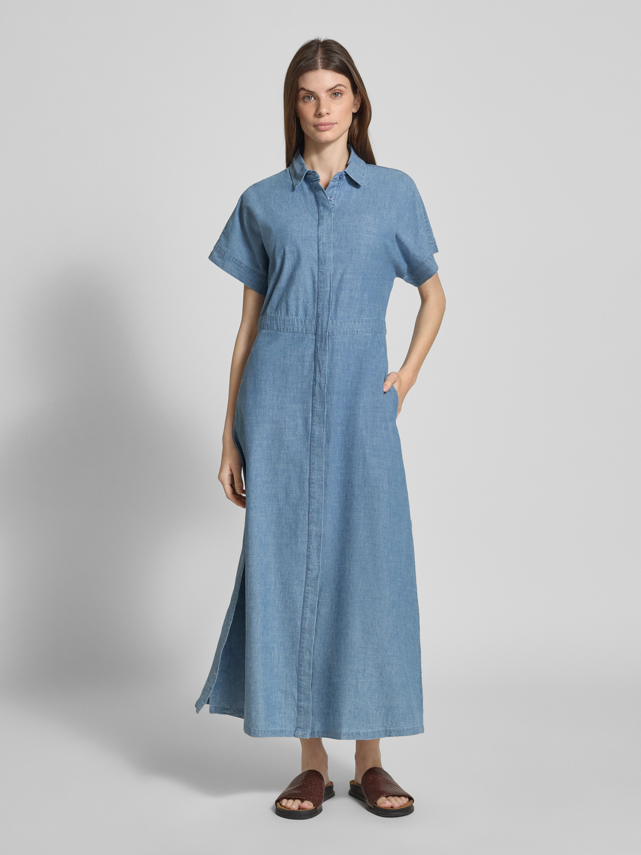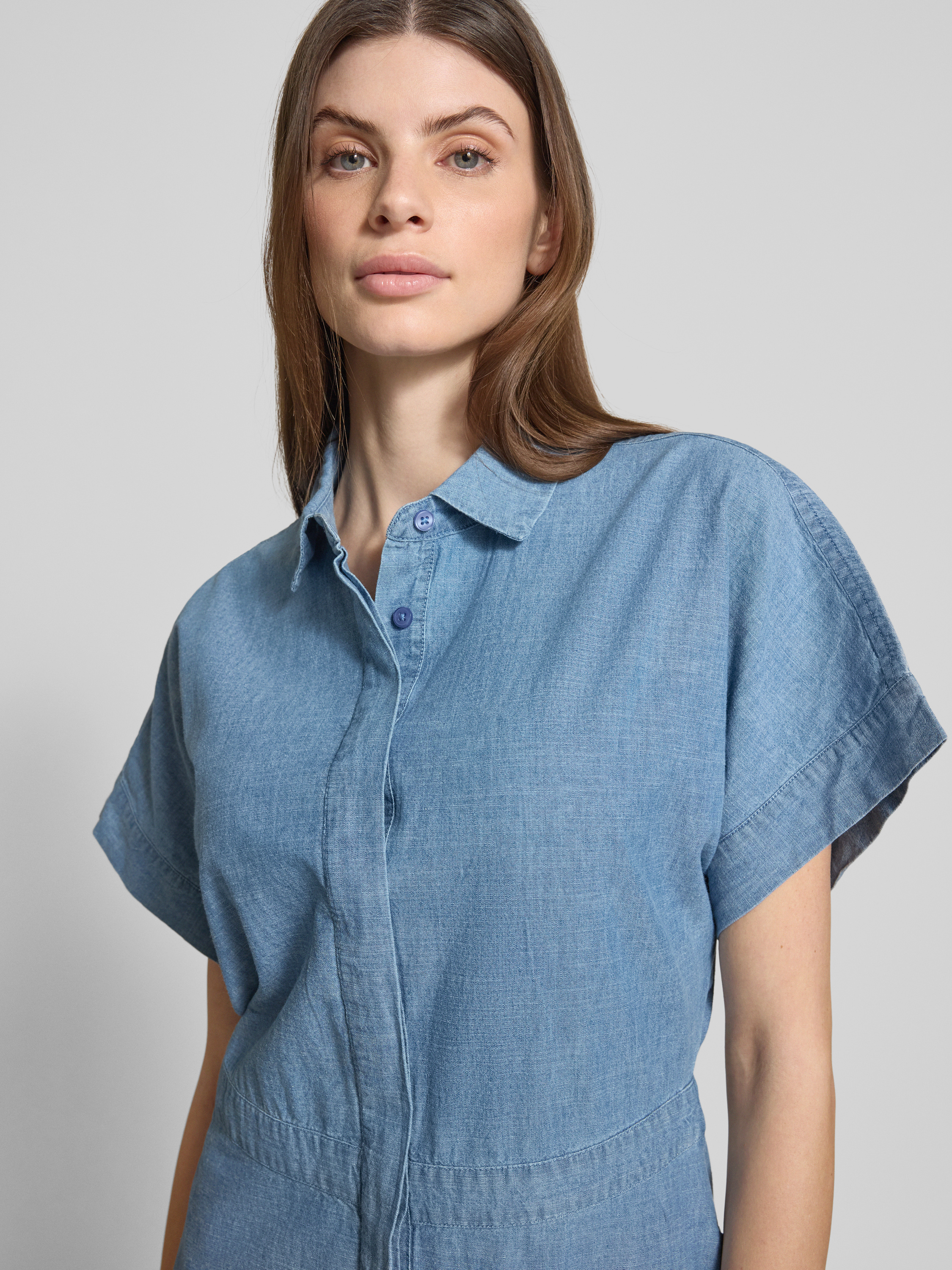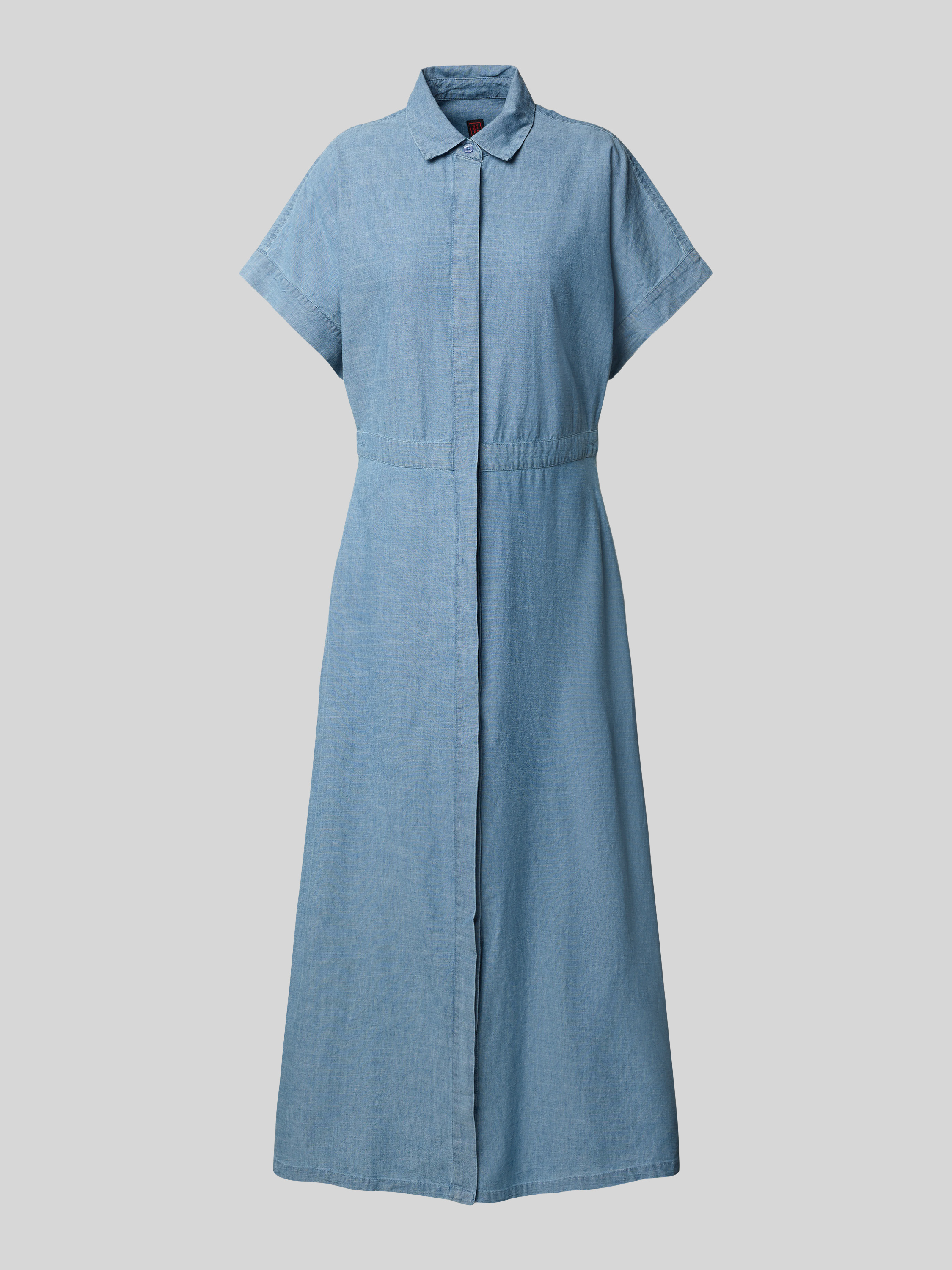 Sukienka koszulowa z imitacji denimu z krytą listwą guzikową - jeansowy niebieski