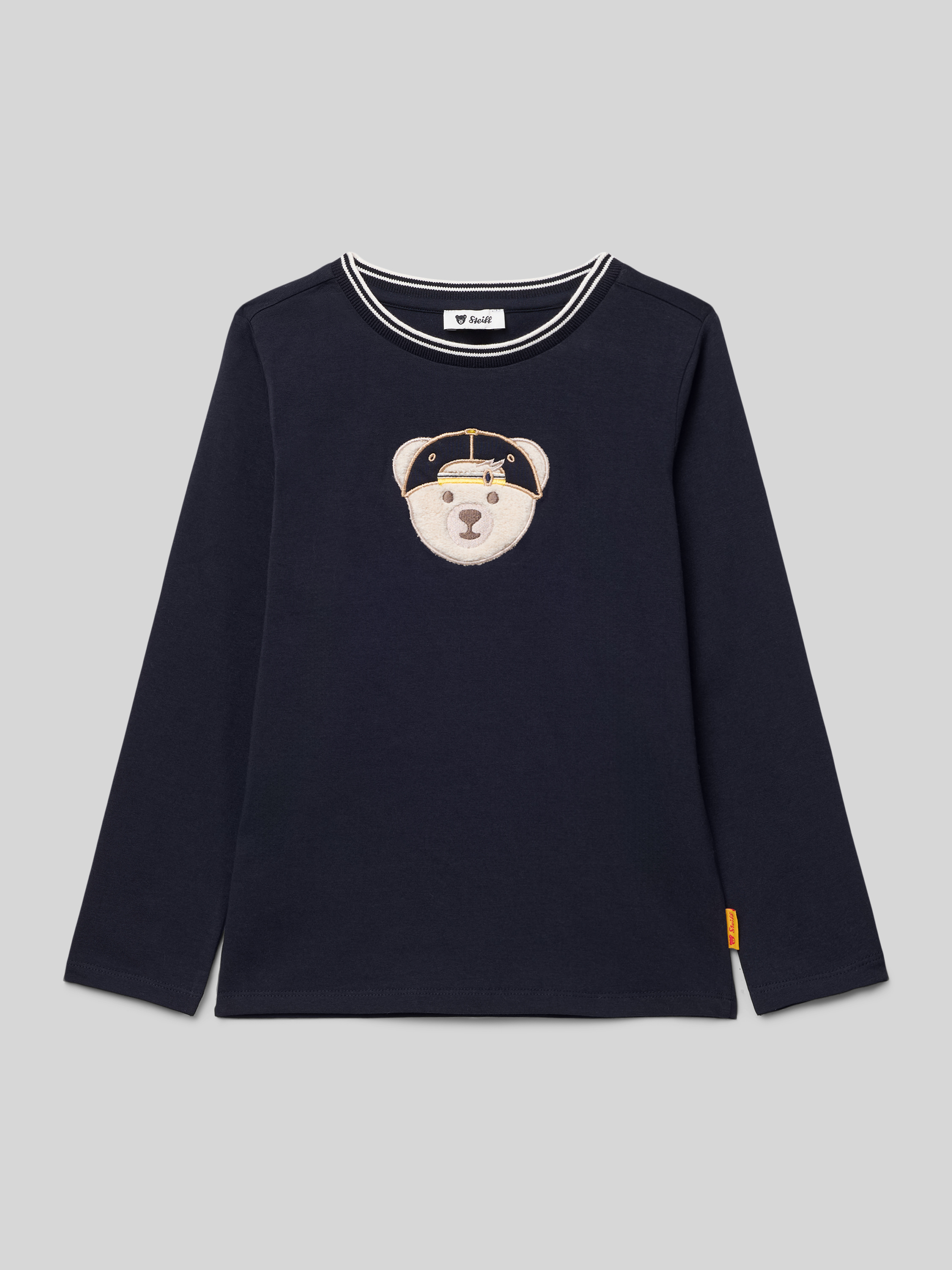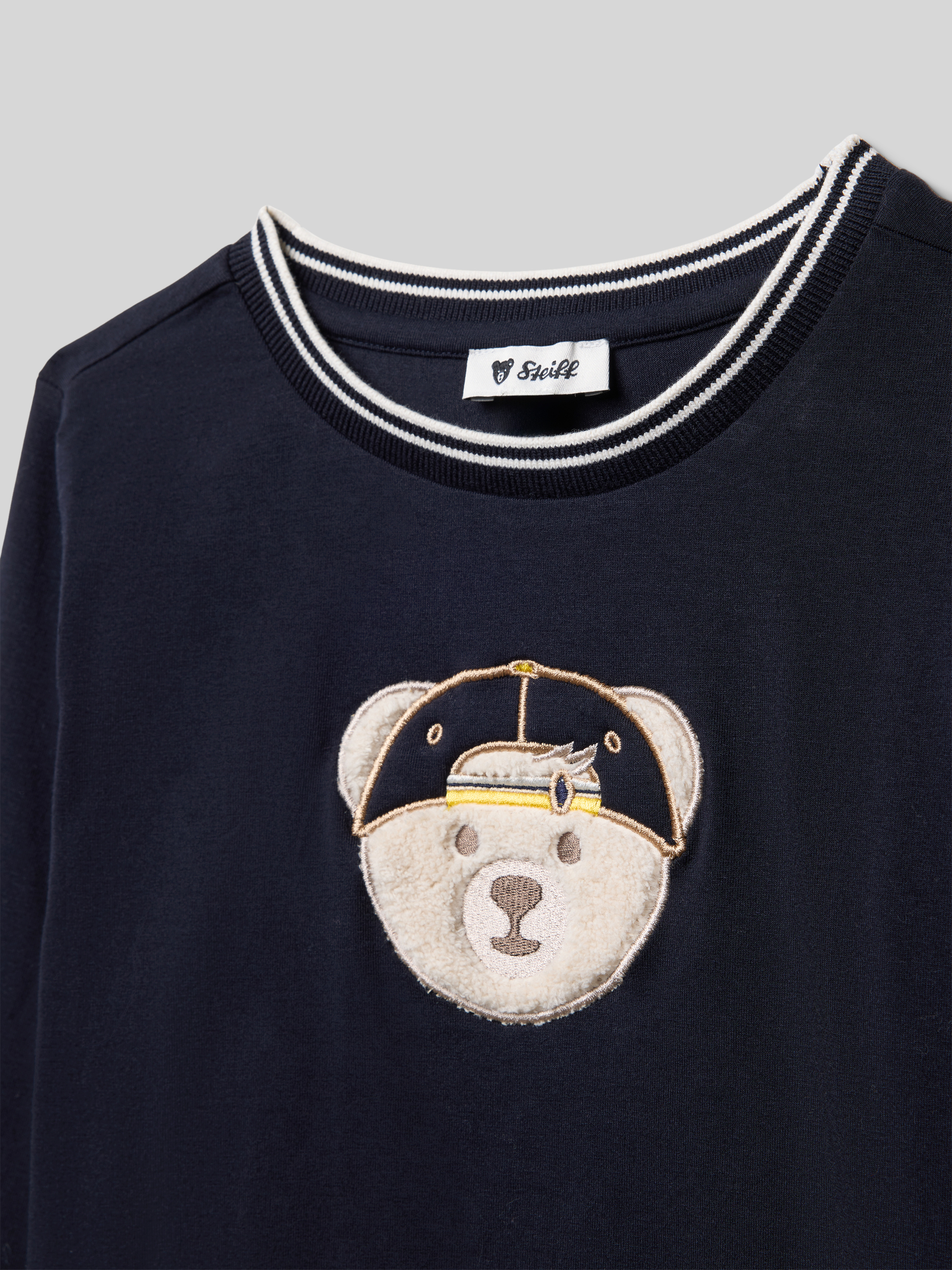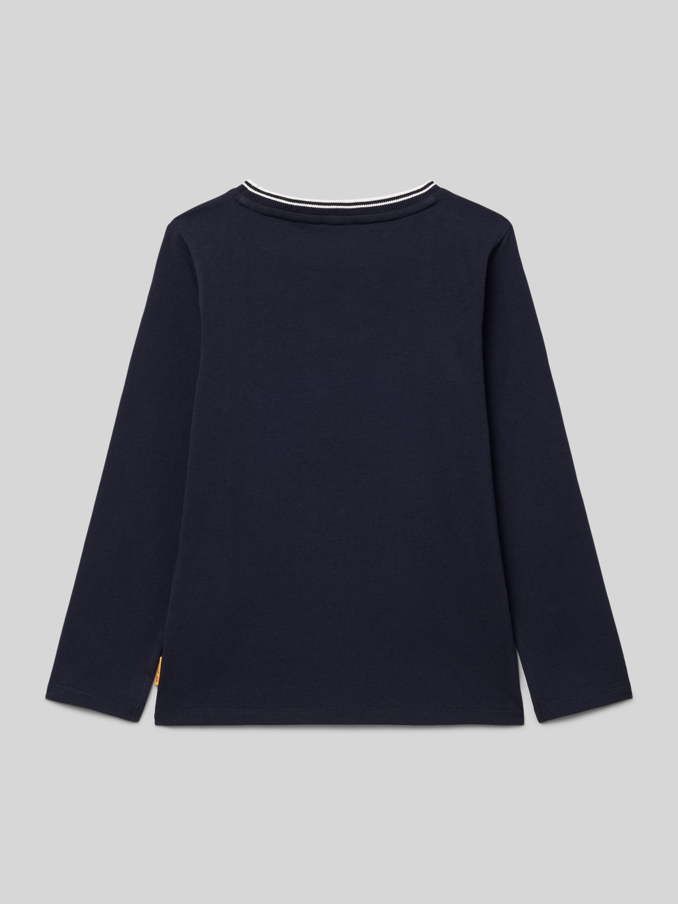 Bluzka z długim rękawem o kroju regular fit z wyhaftowanym logo - granatowy
