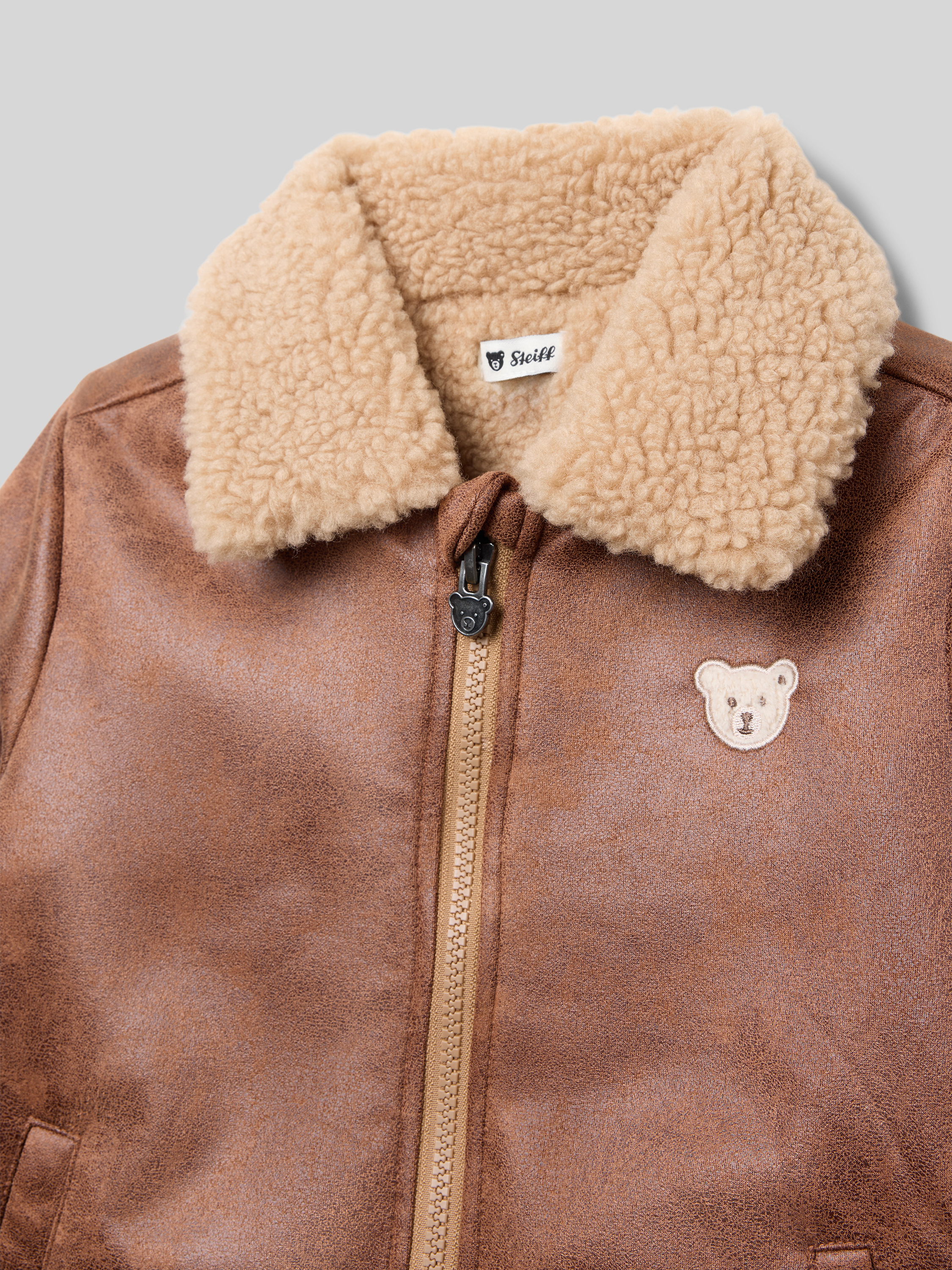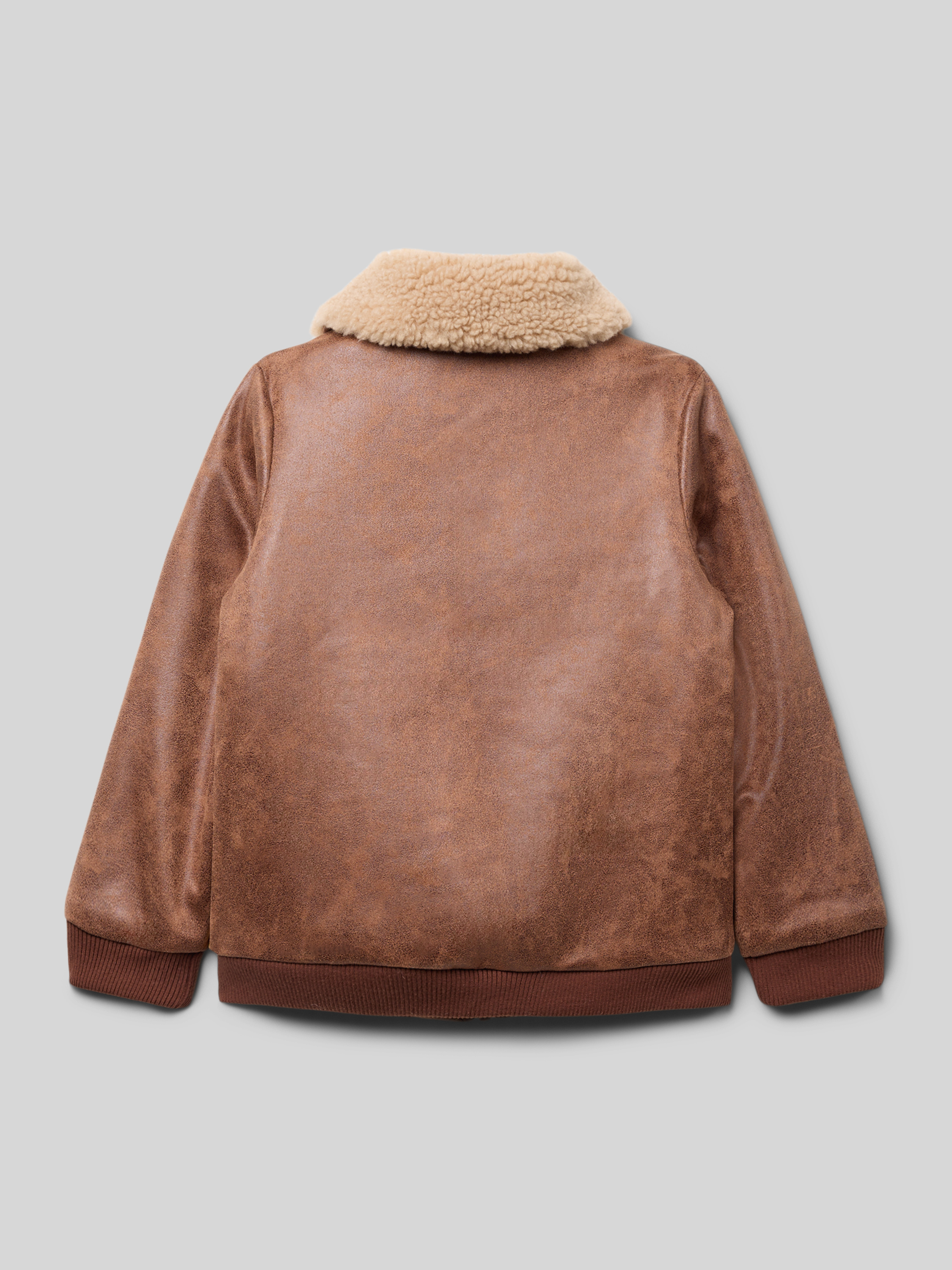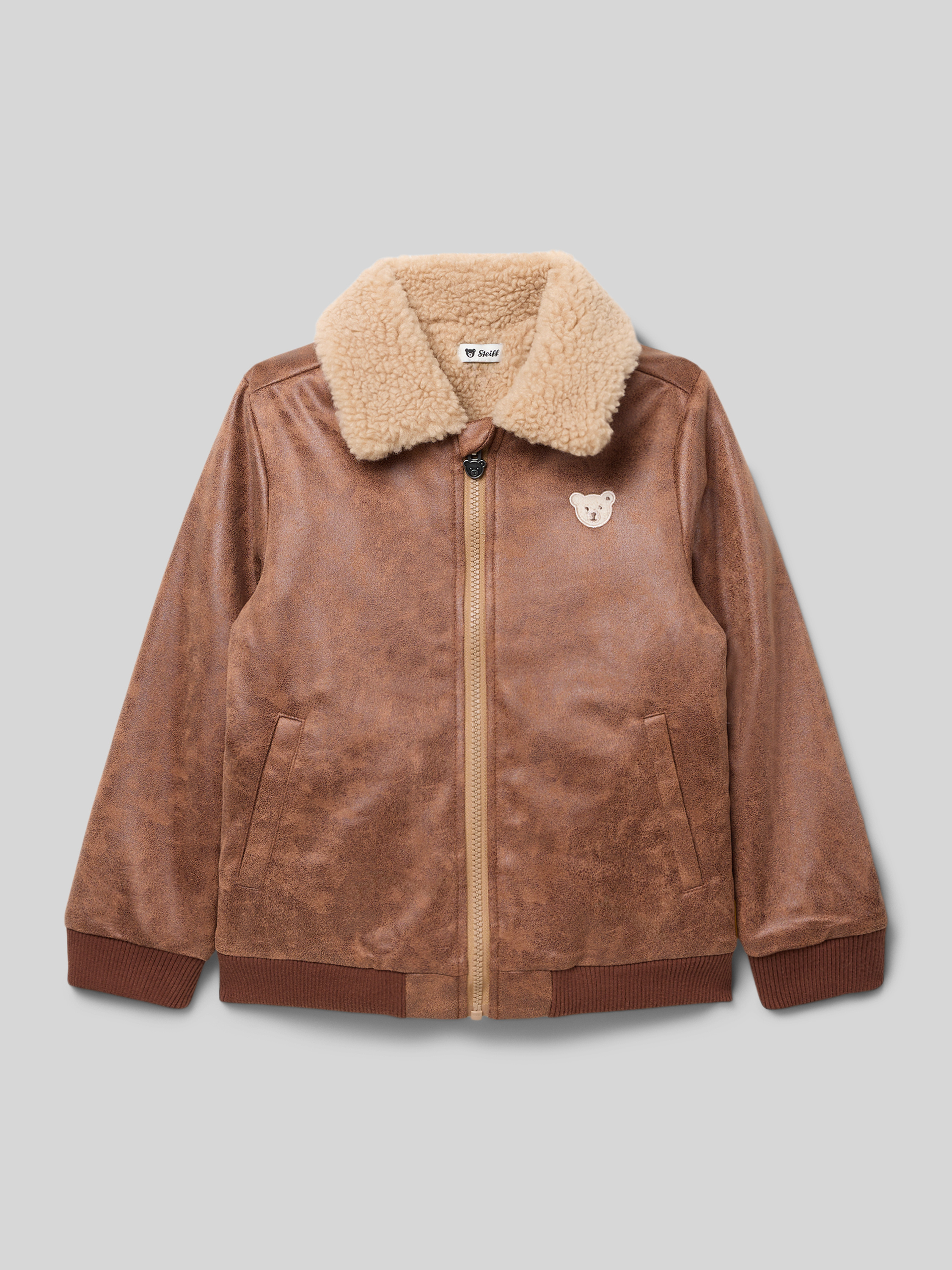 Kurtka o kroju regular fit z imitacji skóry z wyhaftowanym logo - średniobrązowy