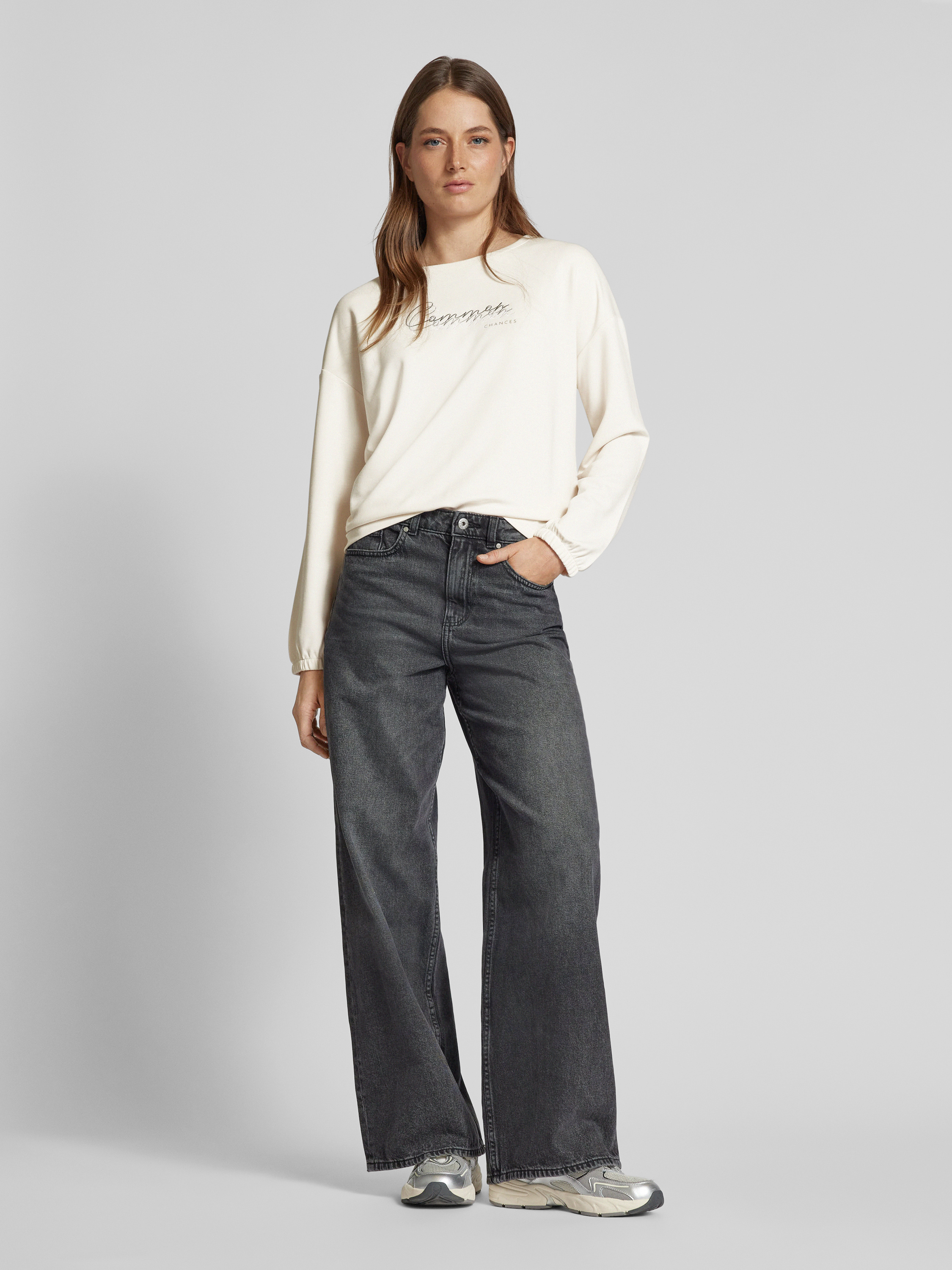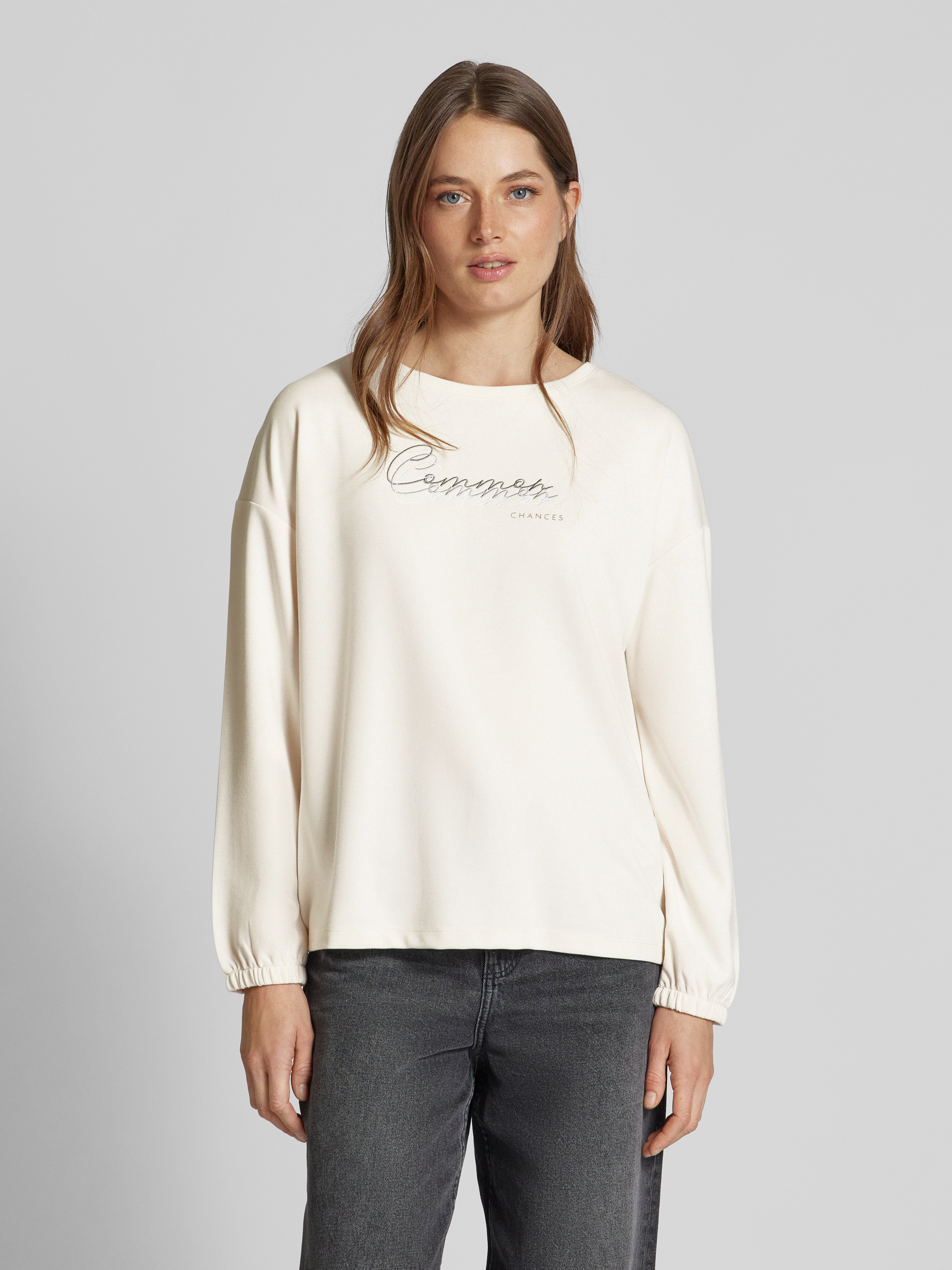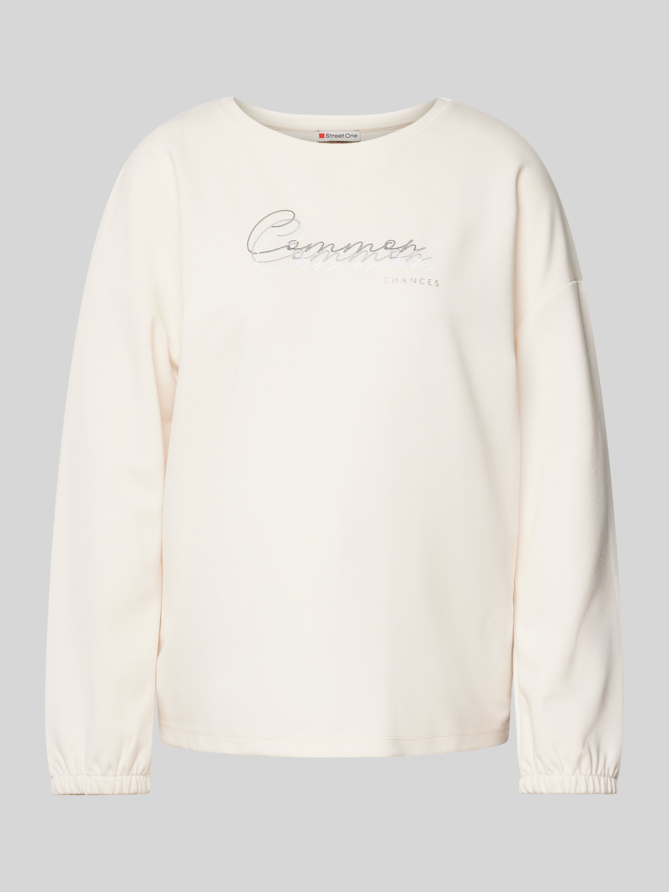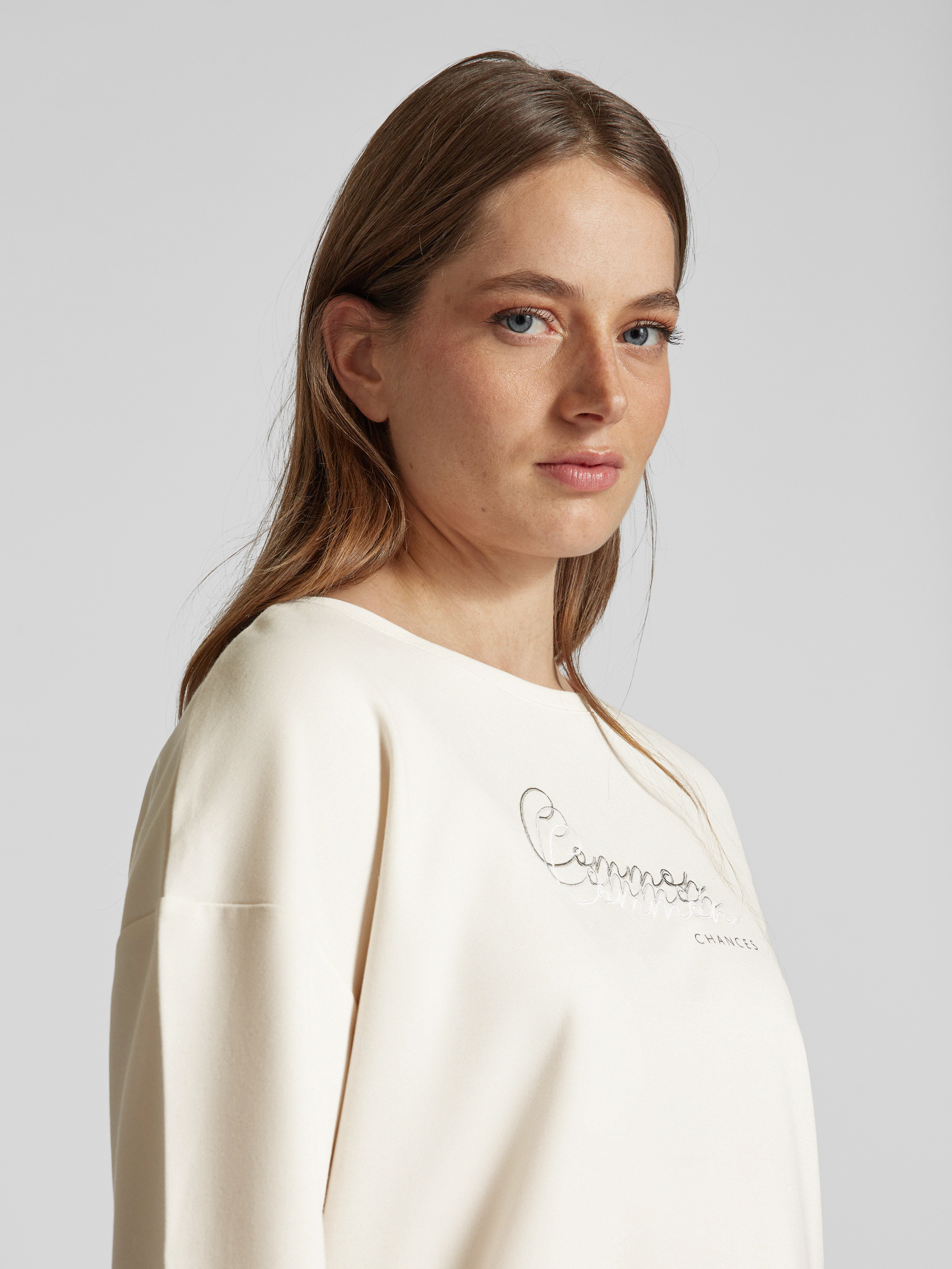 Bluzka z długim rękawem i wyhaftowanym napisem - złamany biały