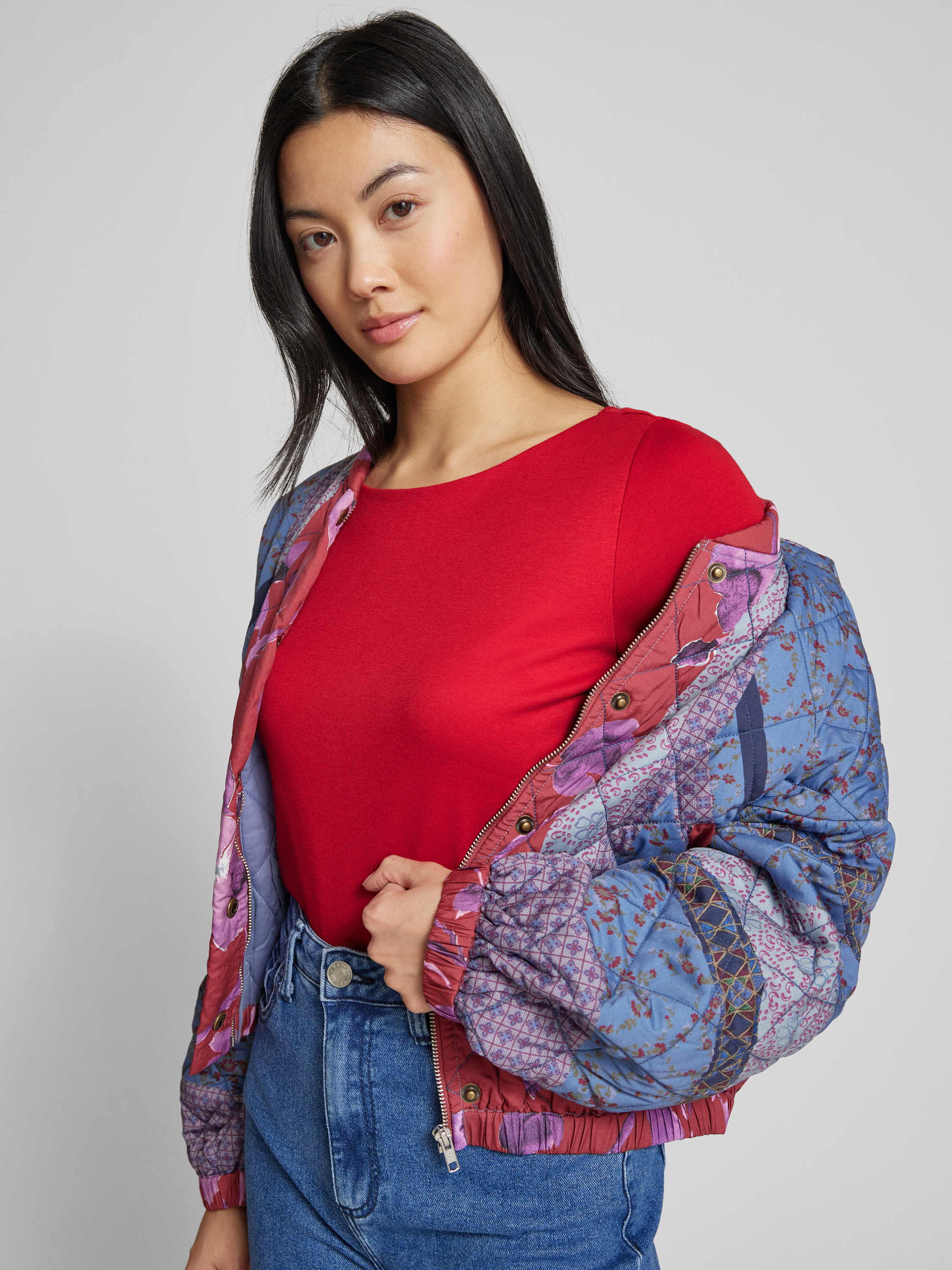 Bluzka z długim rękawem z dekoltem okrągłym - czerwony