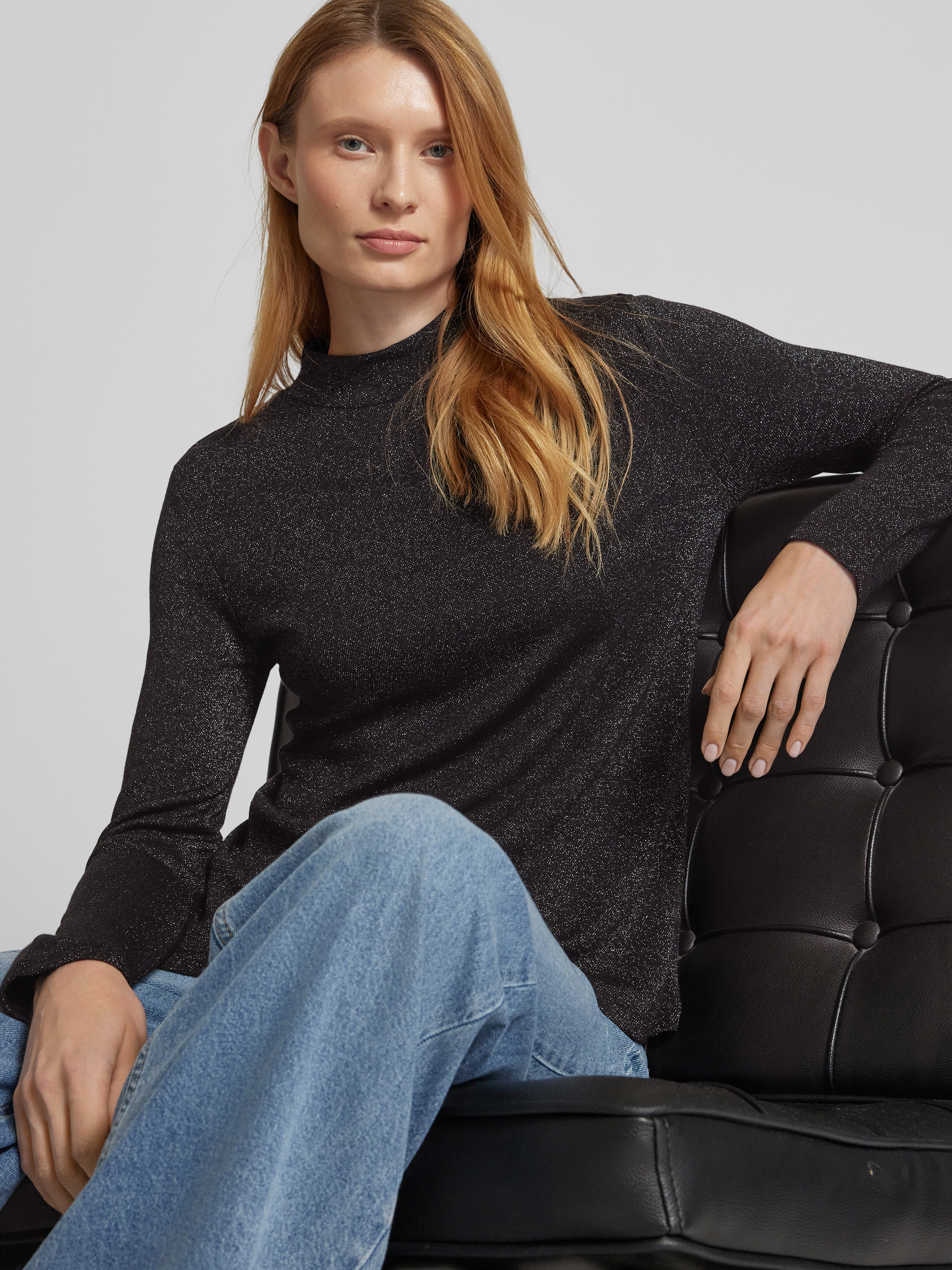 Street OneBluzka z mieszanki wiskozy z długim rękawem i stójką -