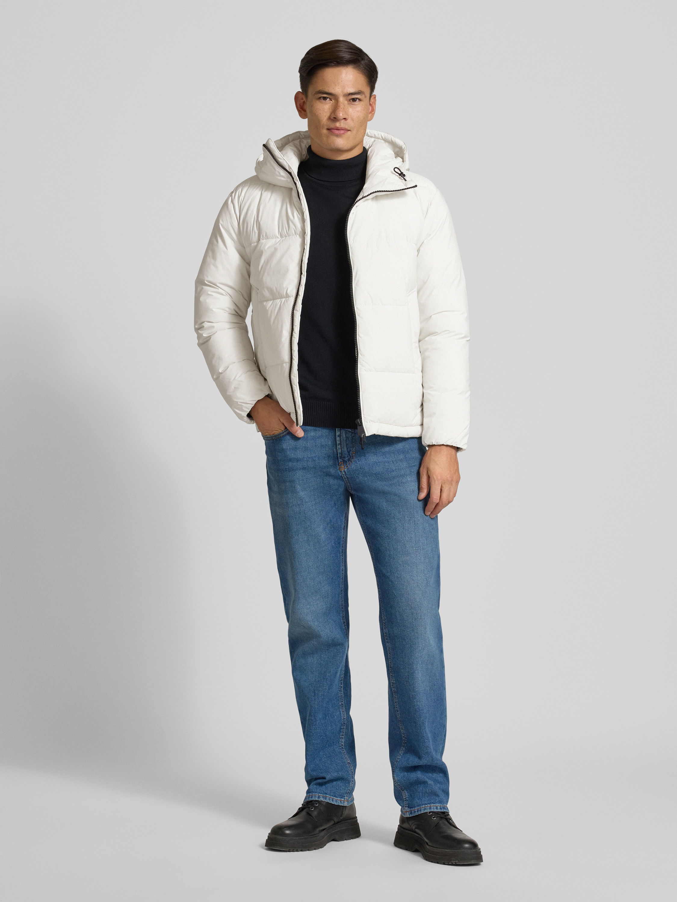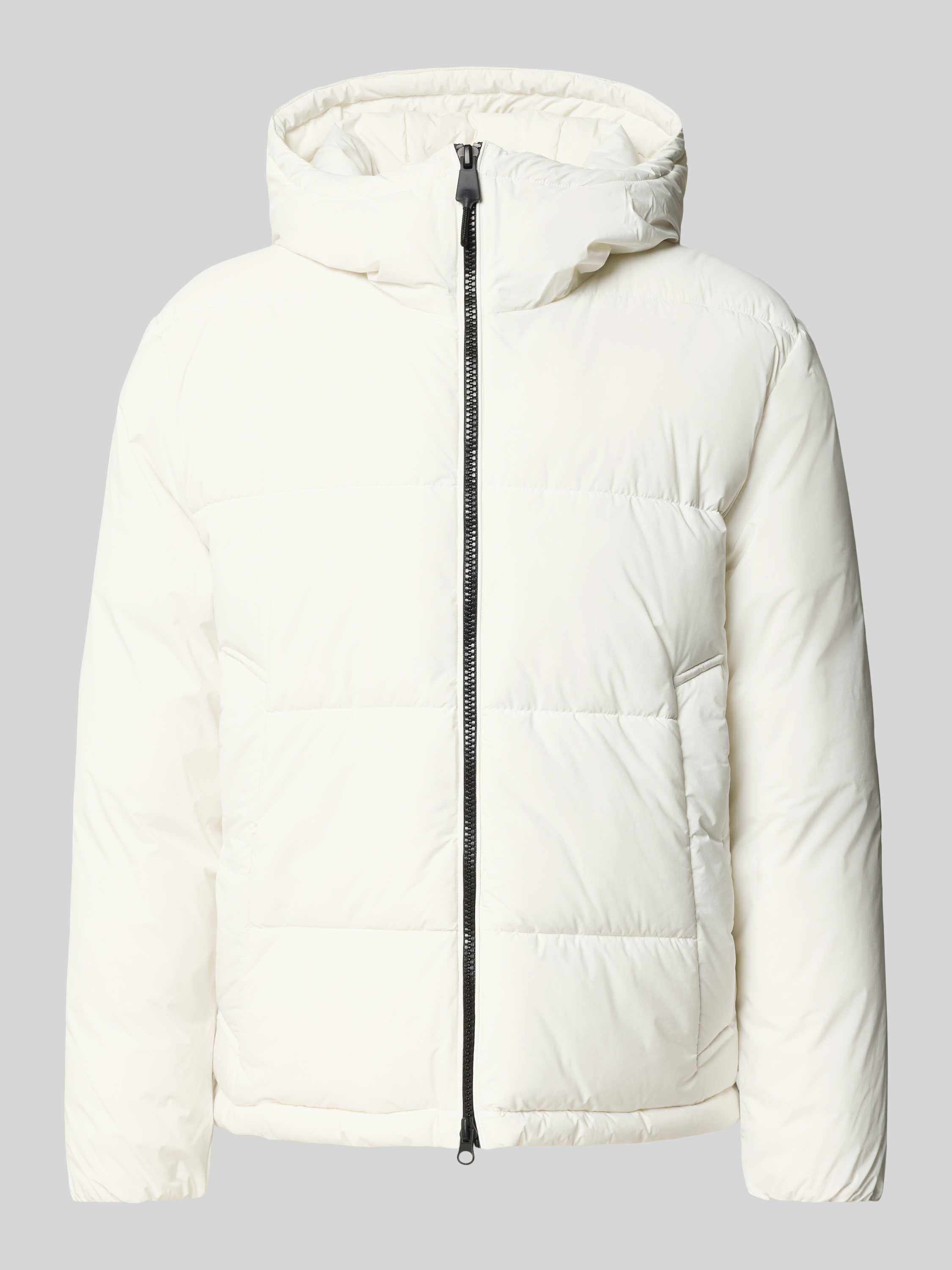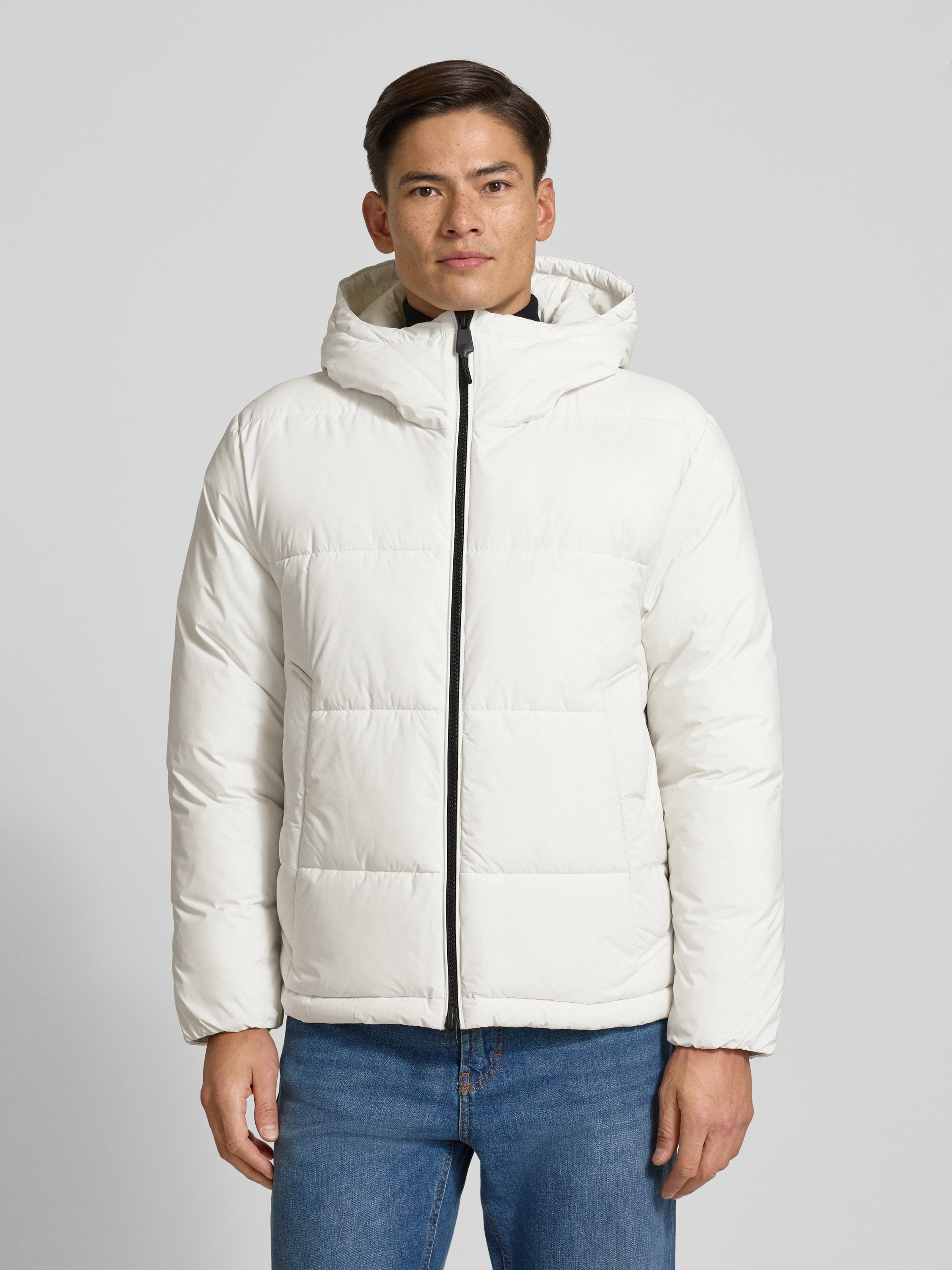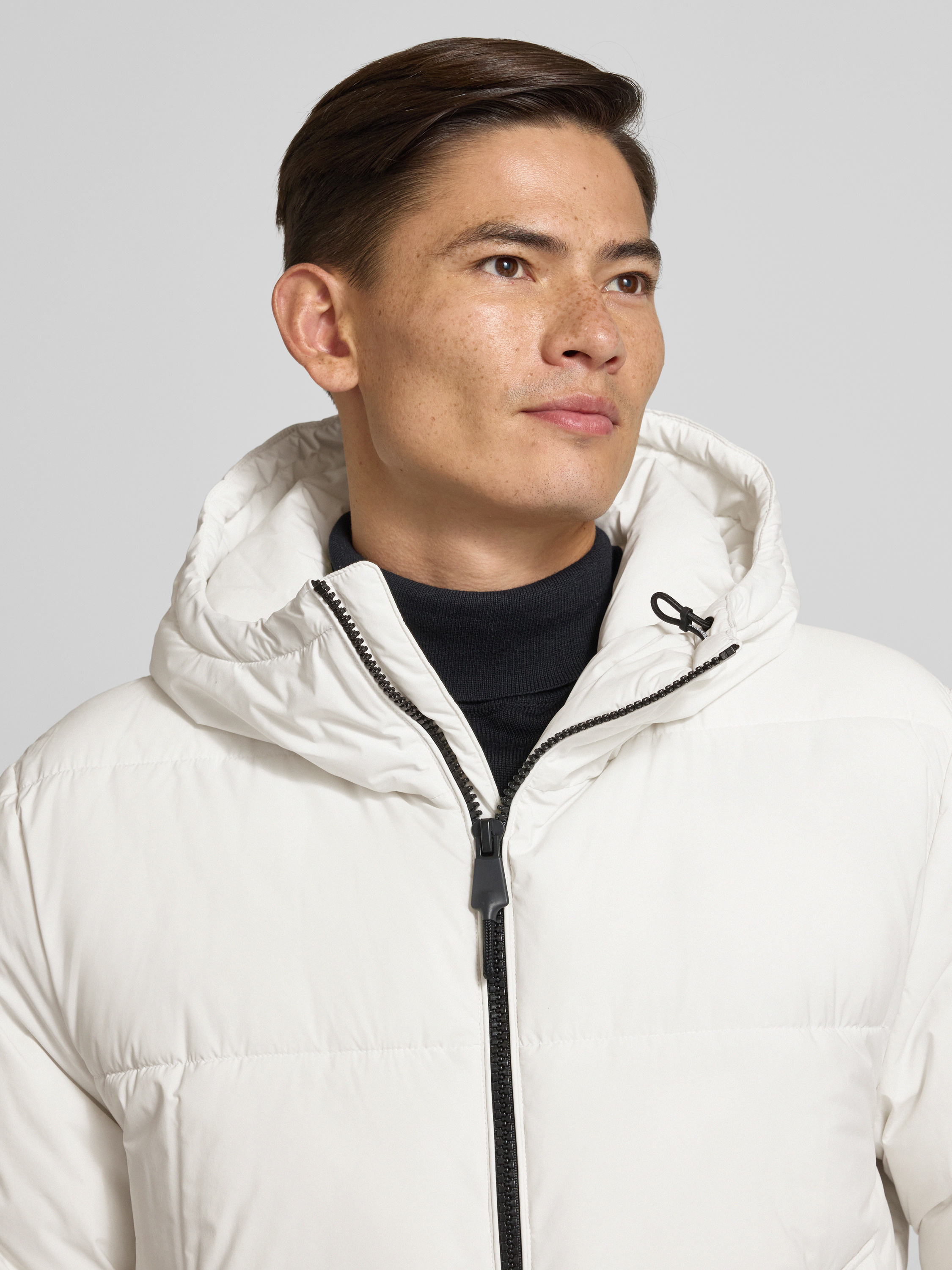 Kurtka pikowana o kroju regular fit z kapturem model ‘SMOOTH’ - złamany biały
