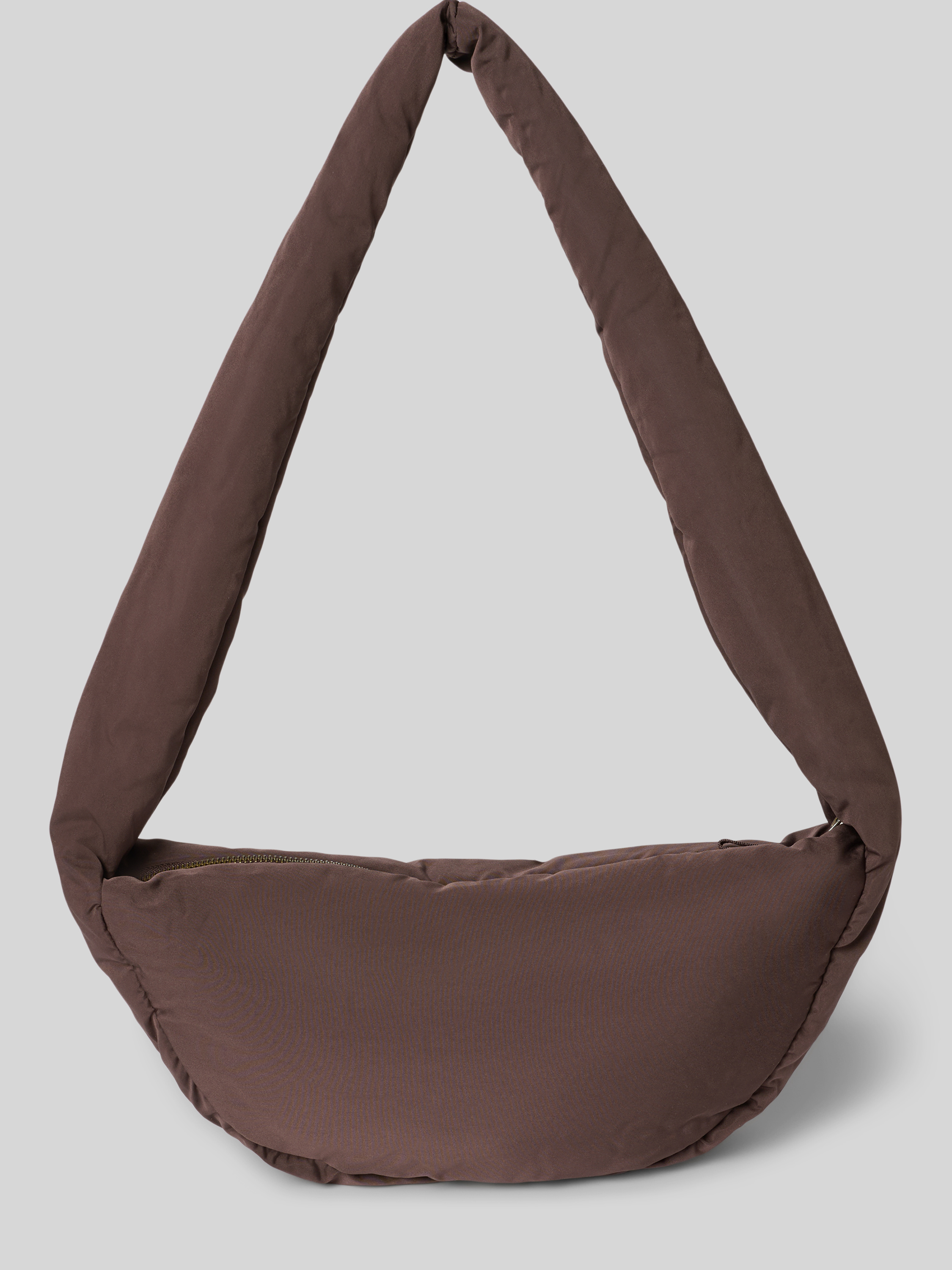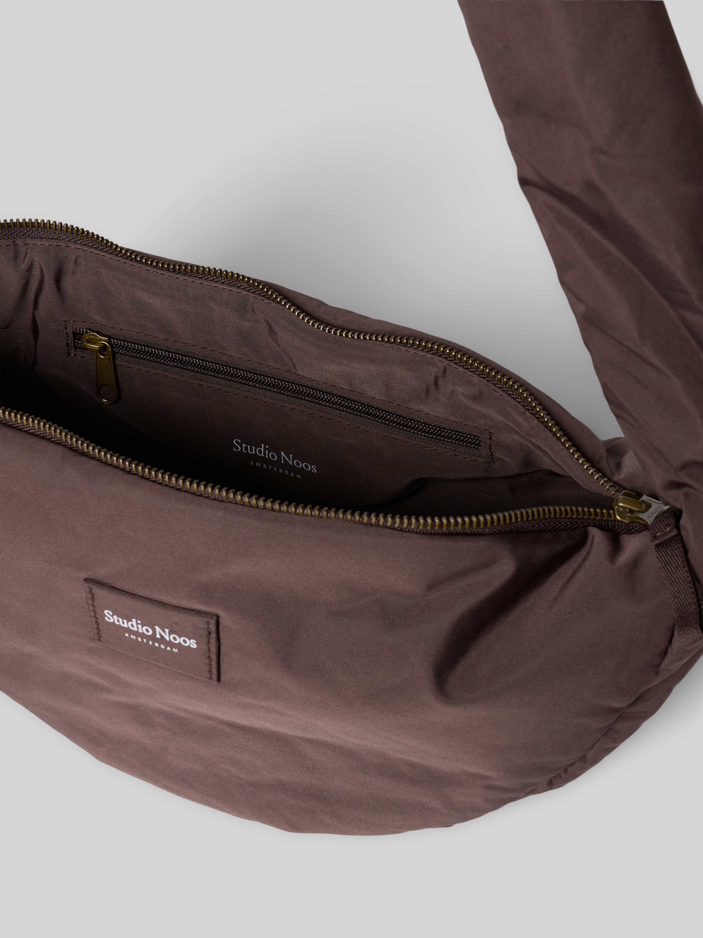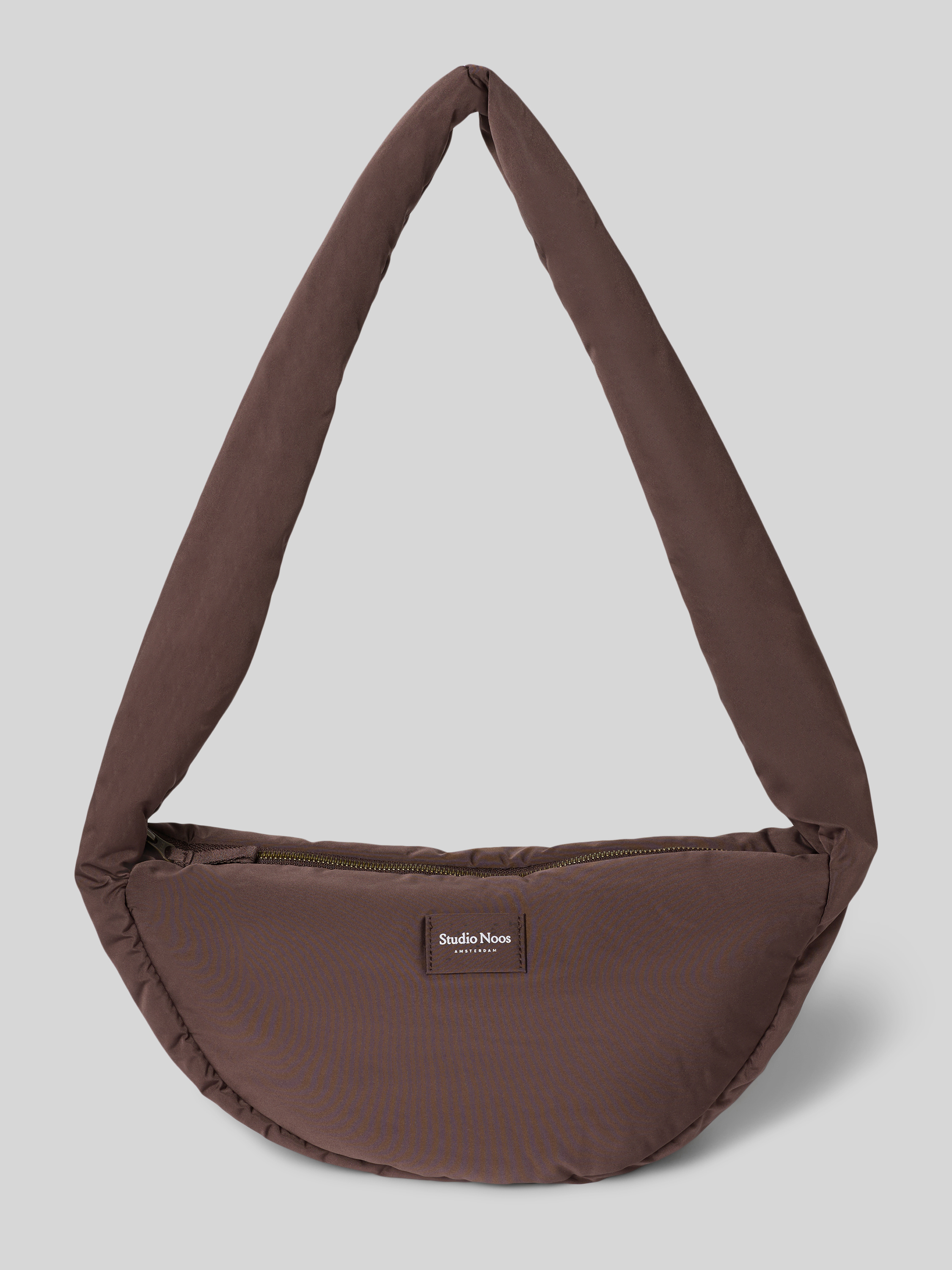 Torebka na długim pasku z detalem z logo - średniobrązowy
