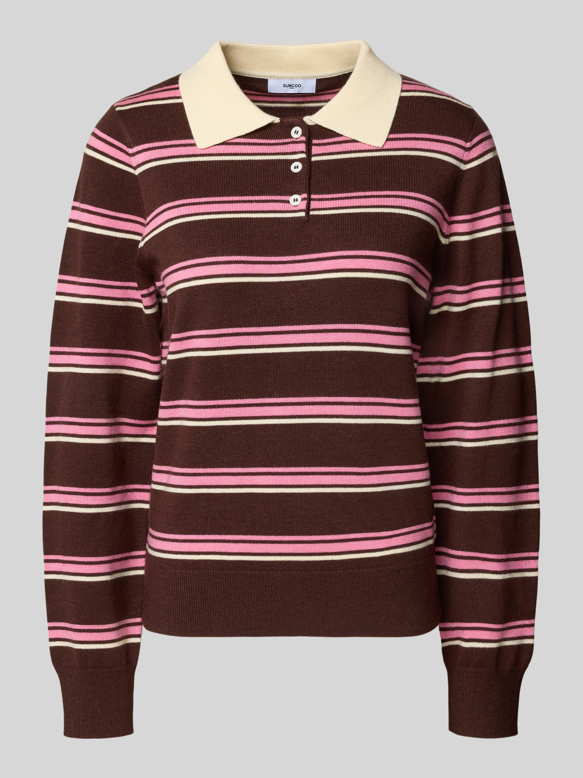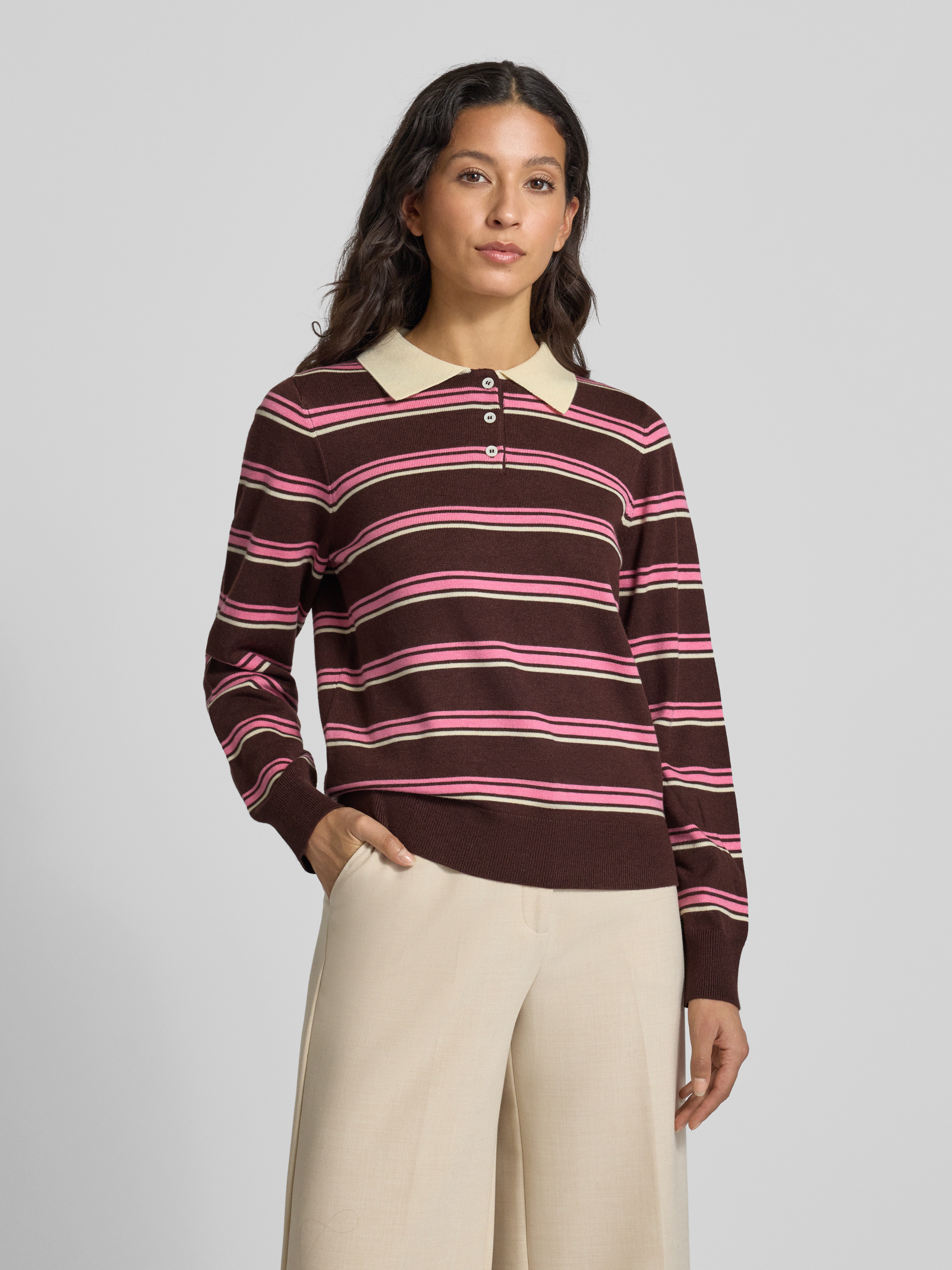 Sweter z dzianiny z wykładanym kołnierzem model ‘PREGO’ - bordowy