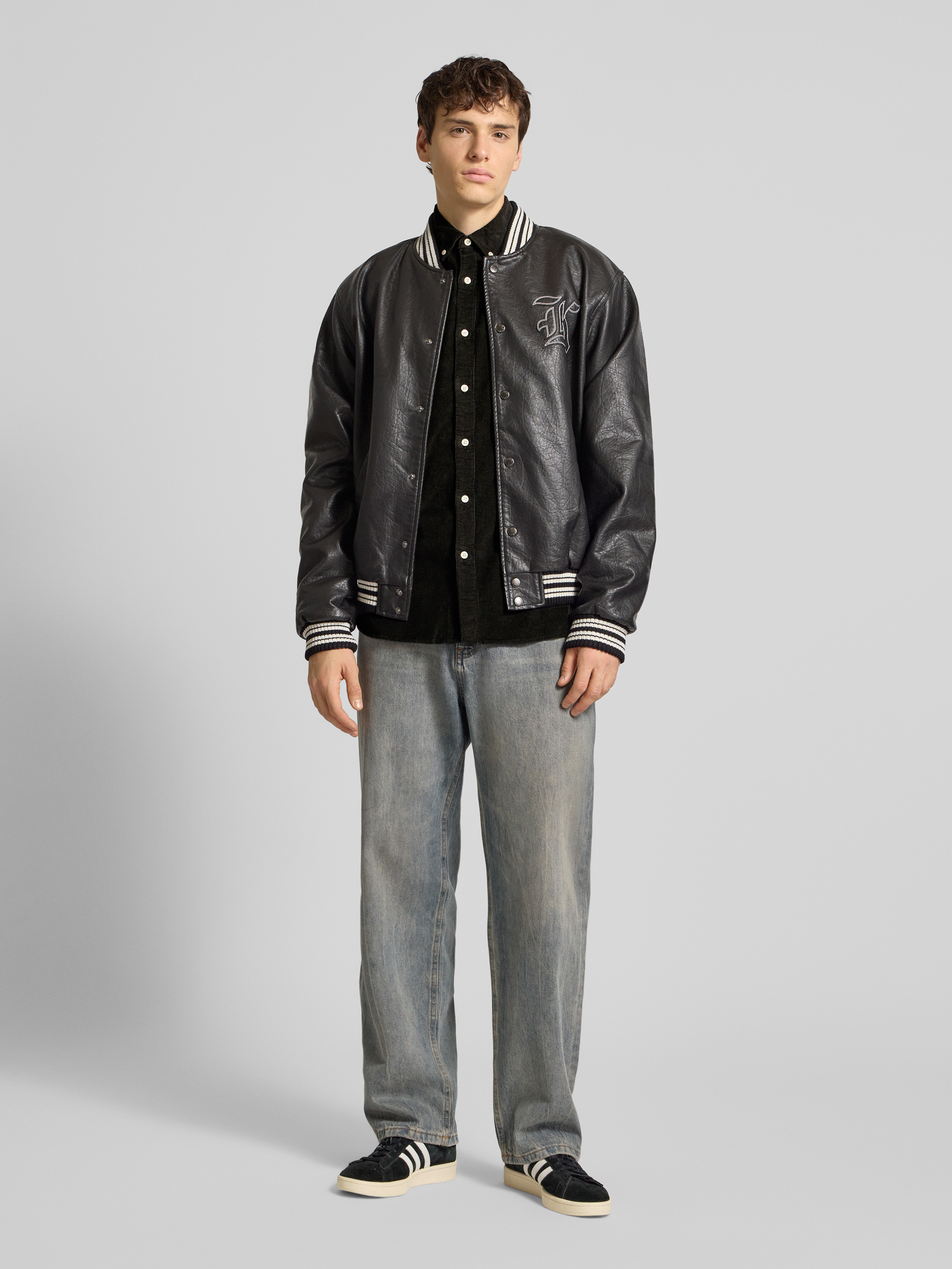 Kurtka baseballowa z imitacji skóry z wyhaftowanym logo