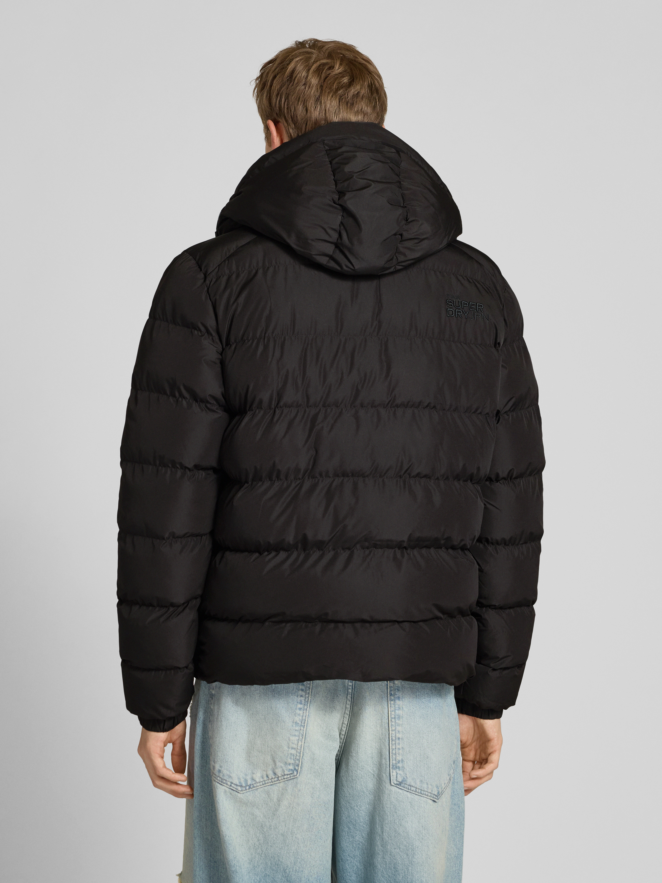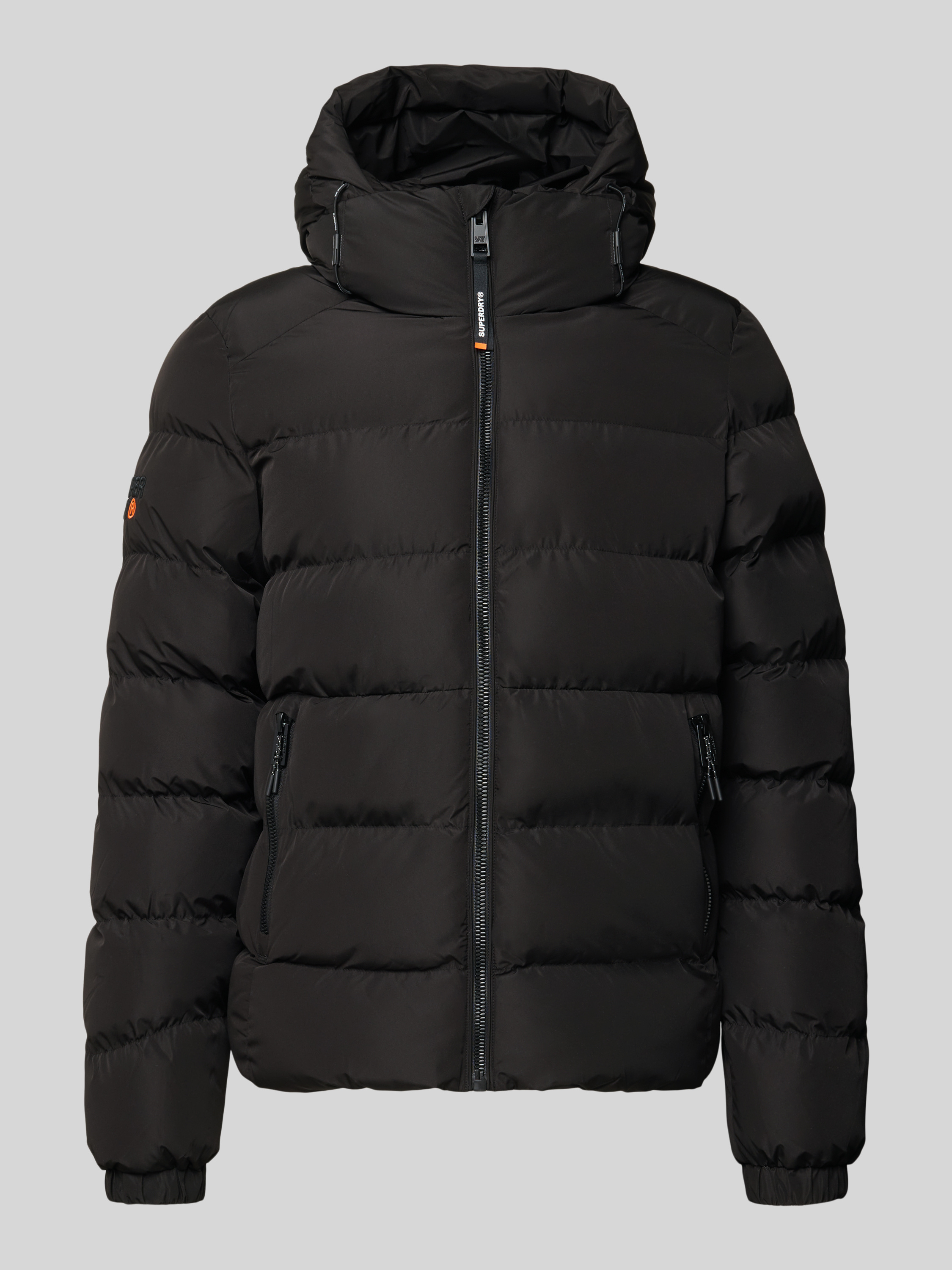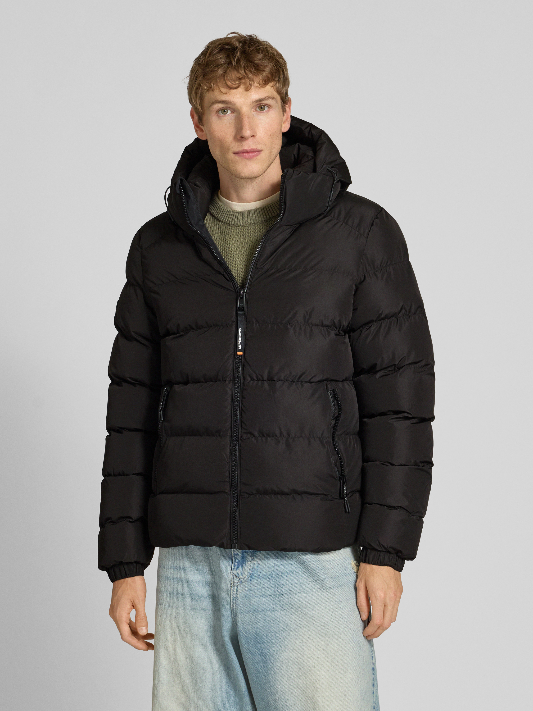 Kurtka pikowana z kapturem i bocznymi kieszeniami zapinanymi na zamek błyskawiczny - czarny