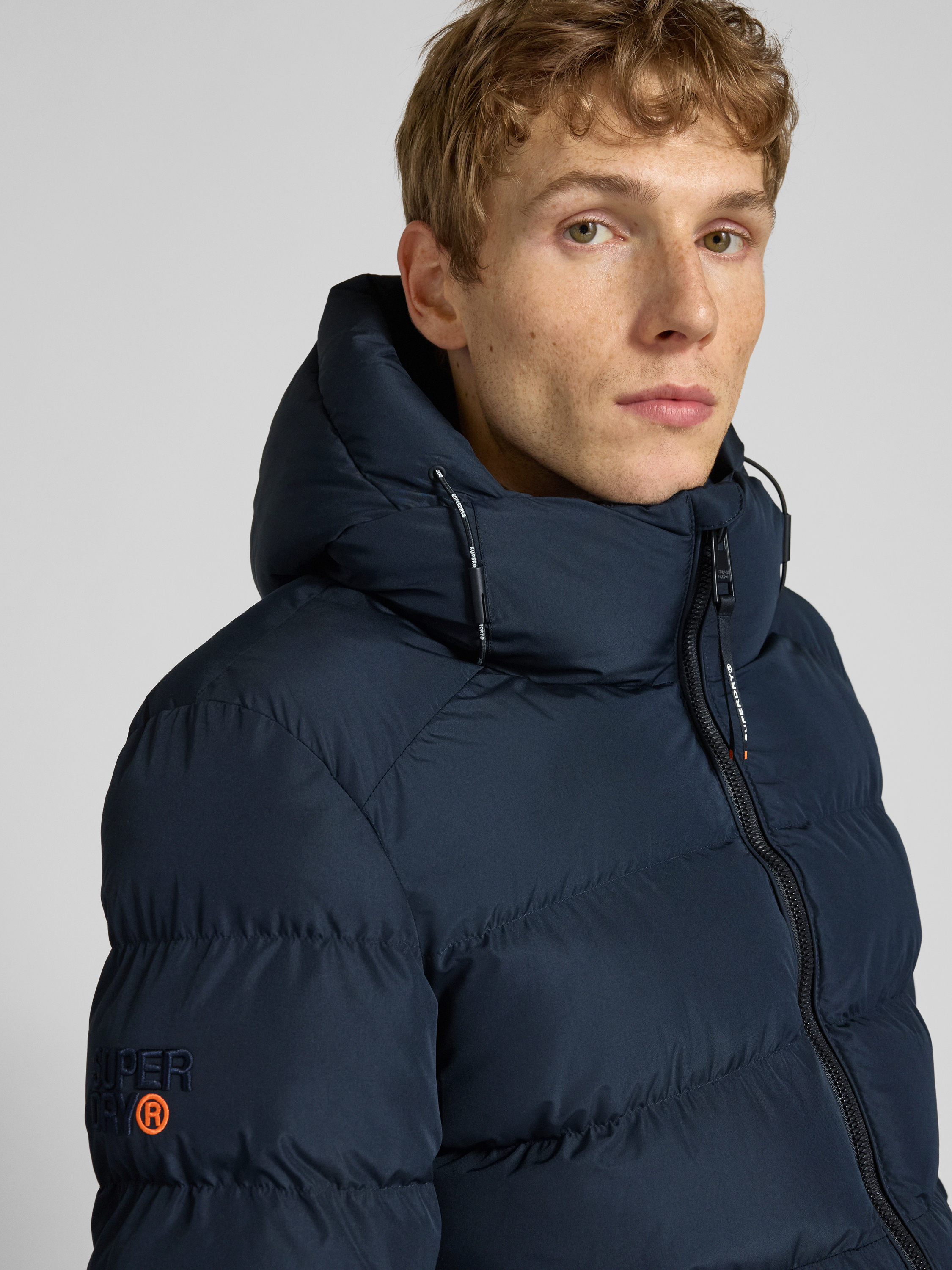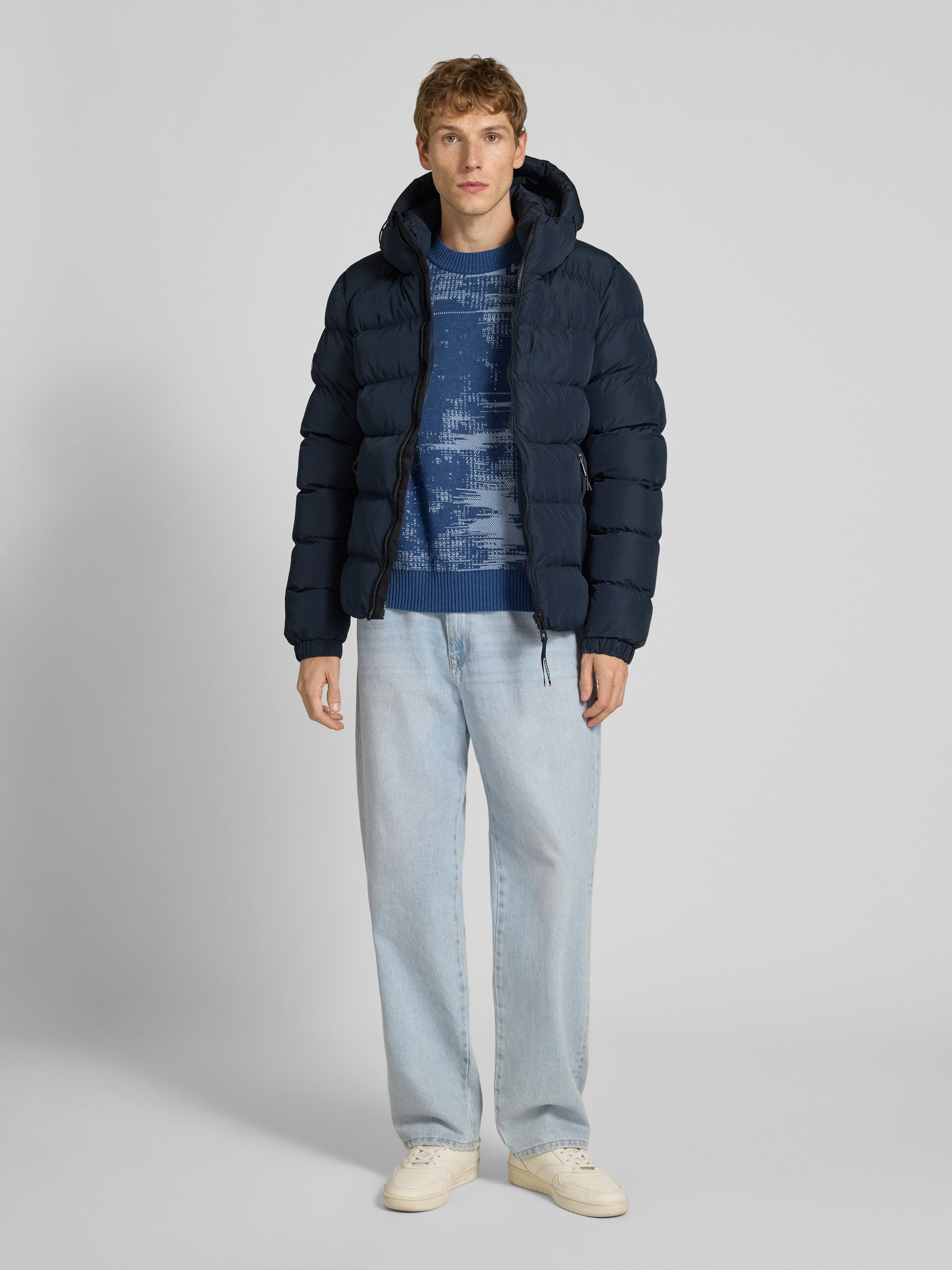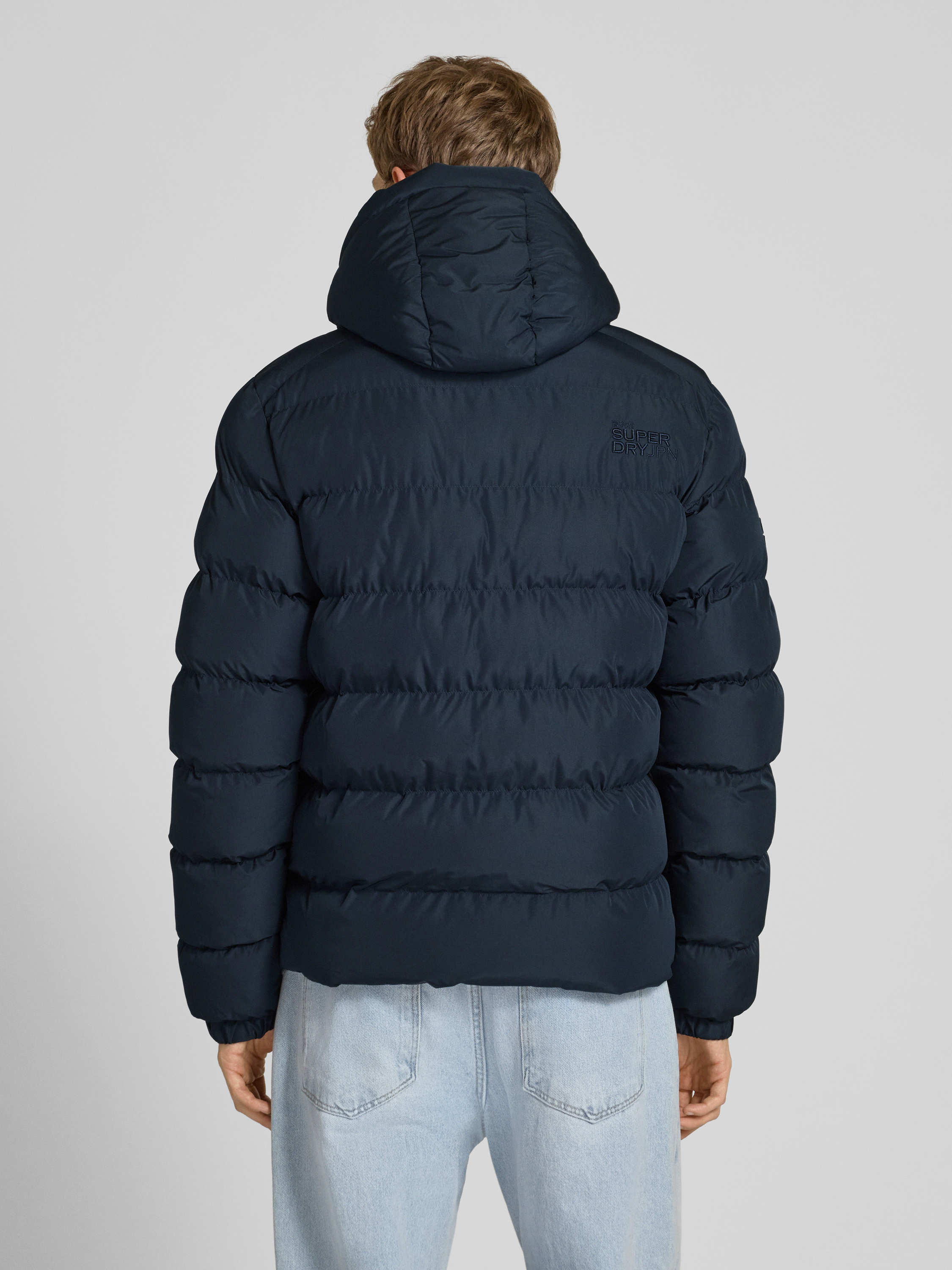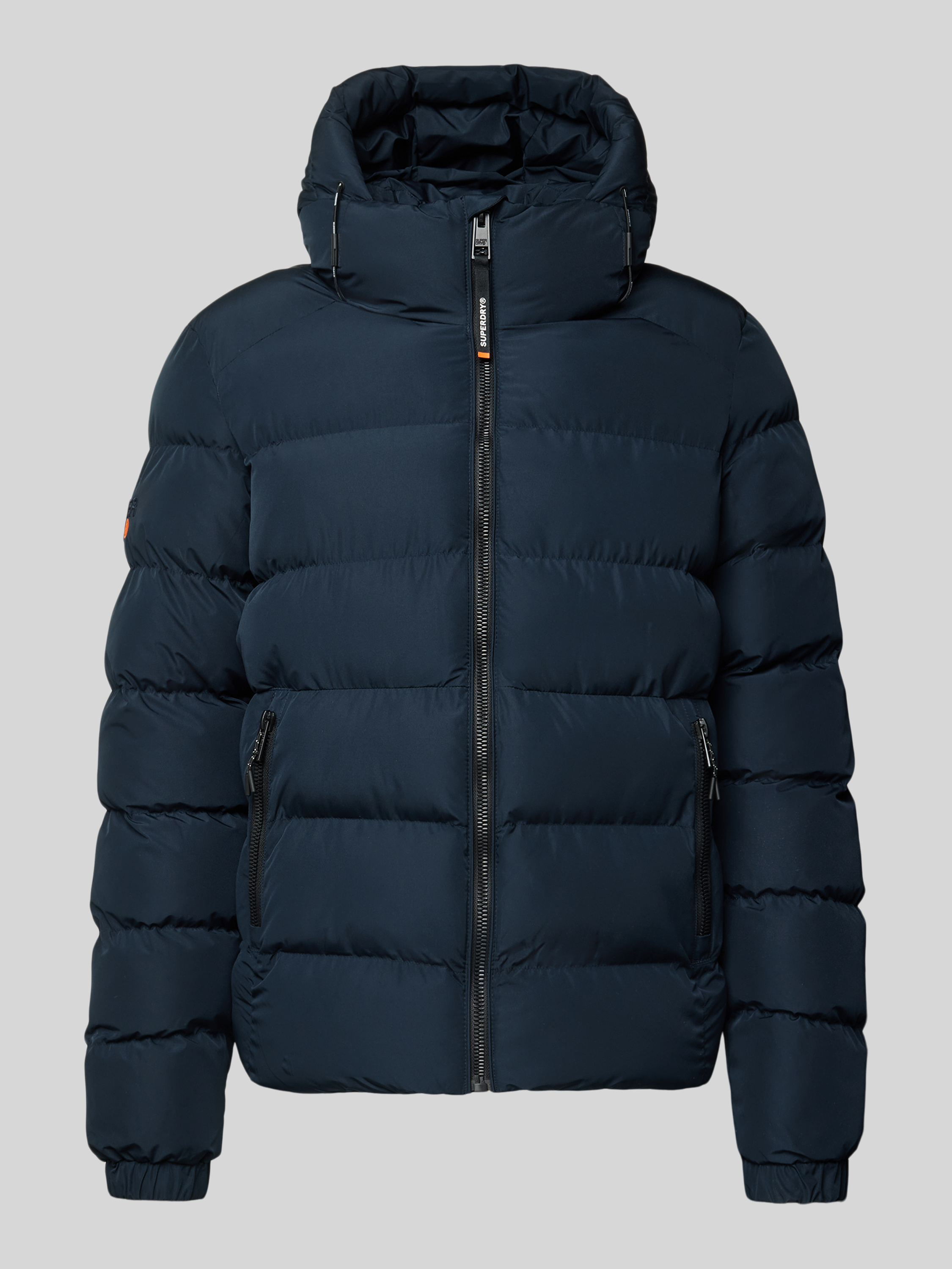 Kurtka pikowana z kapturem i bocznymi kieszeniami zapinanymi na zamek błyskawiczny - granatowy