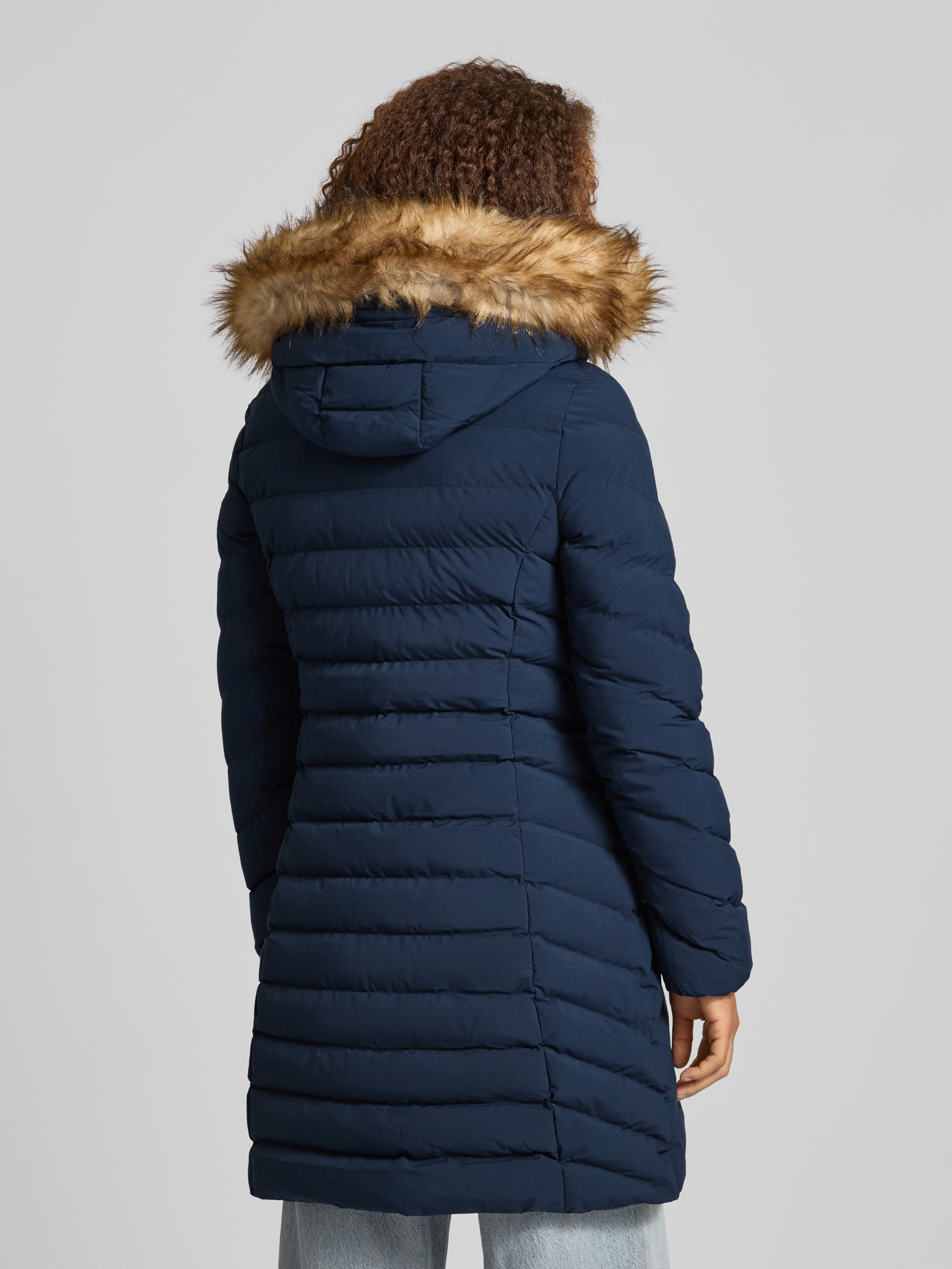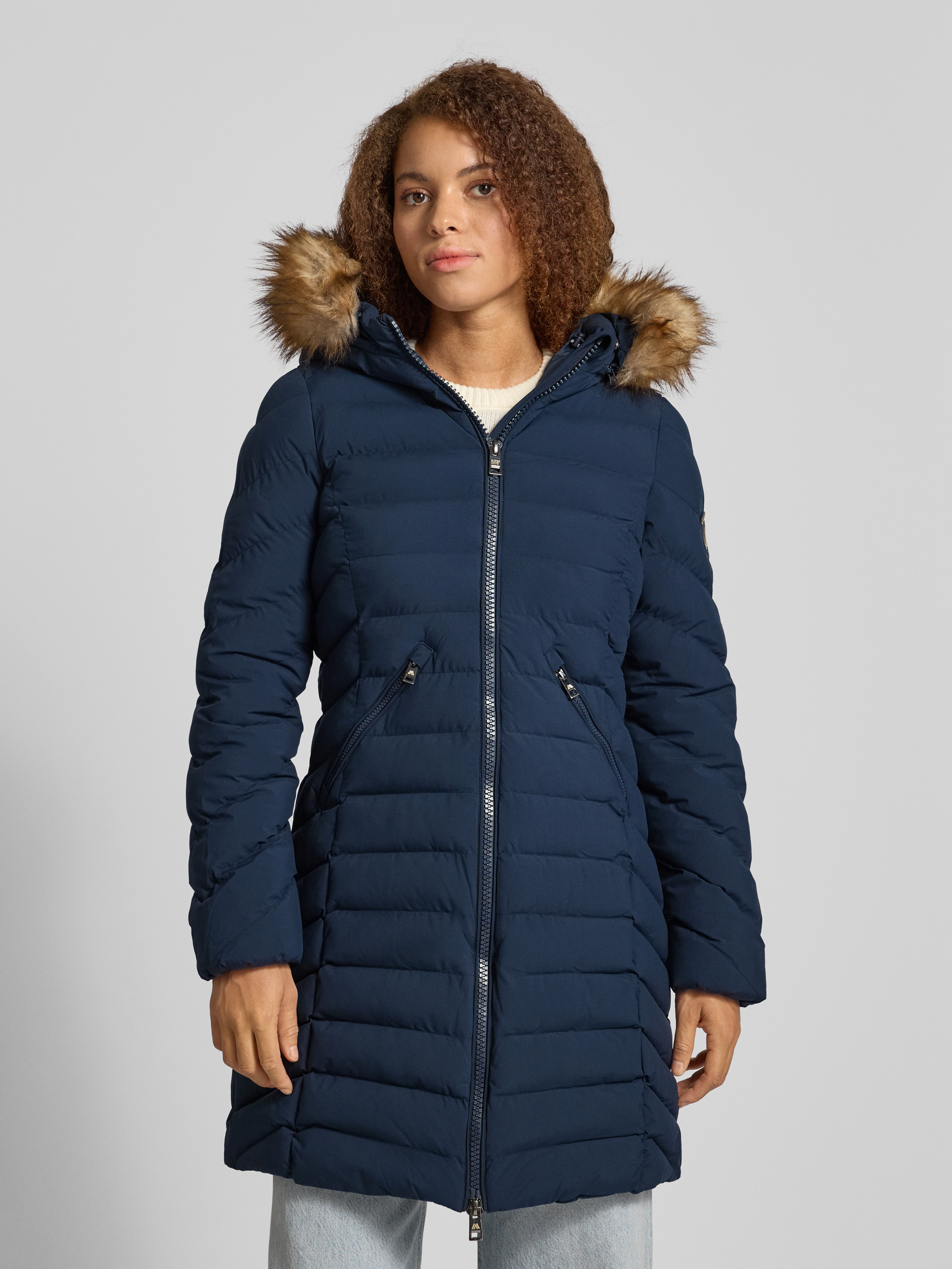 Płaszcz pikowany o kroju regular fit z obszyciem ze sztucznego futra model ‘Fuji’ - granatowy