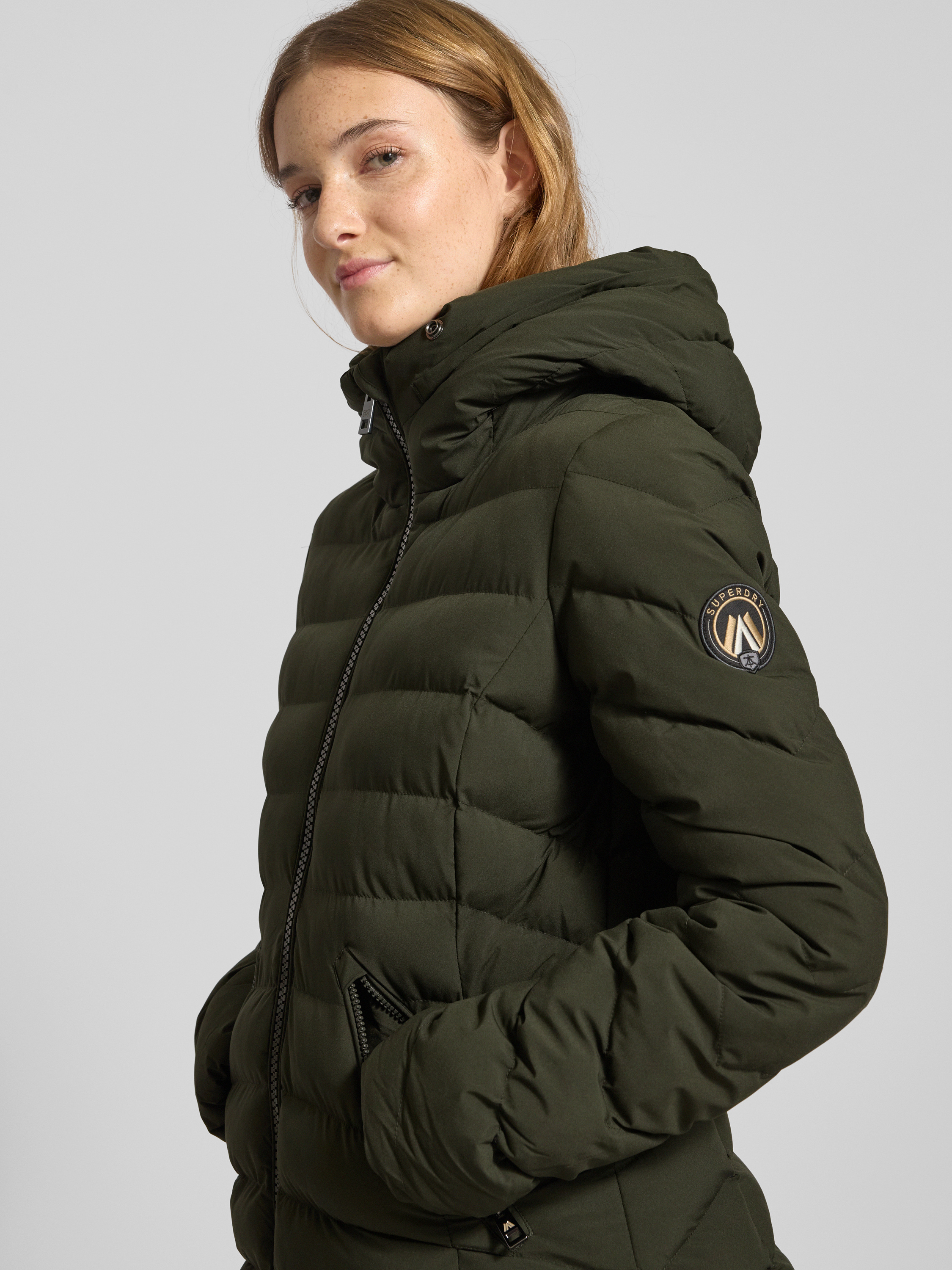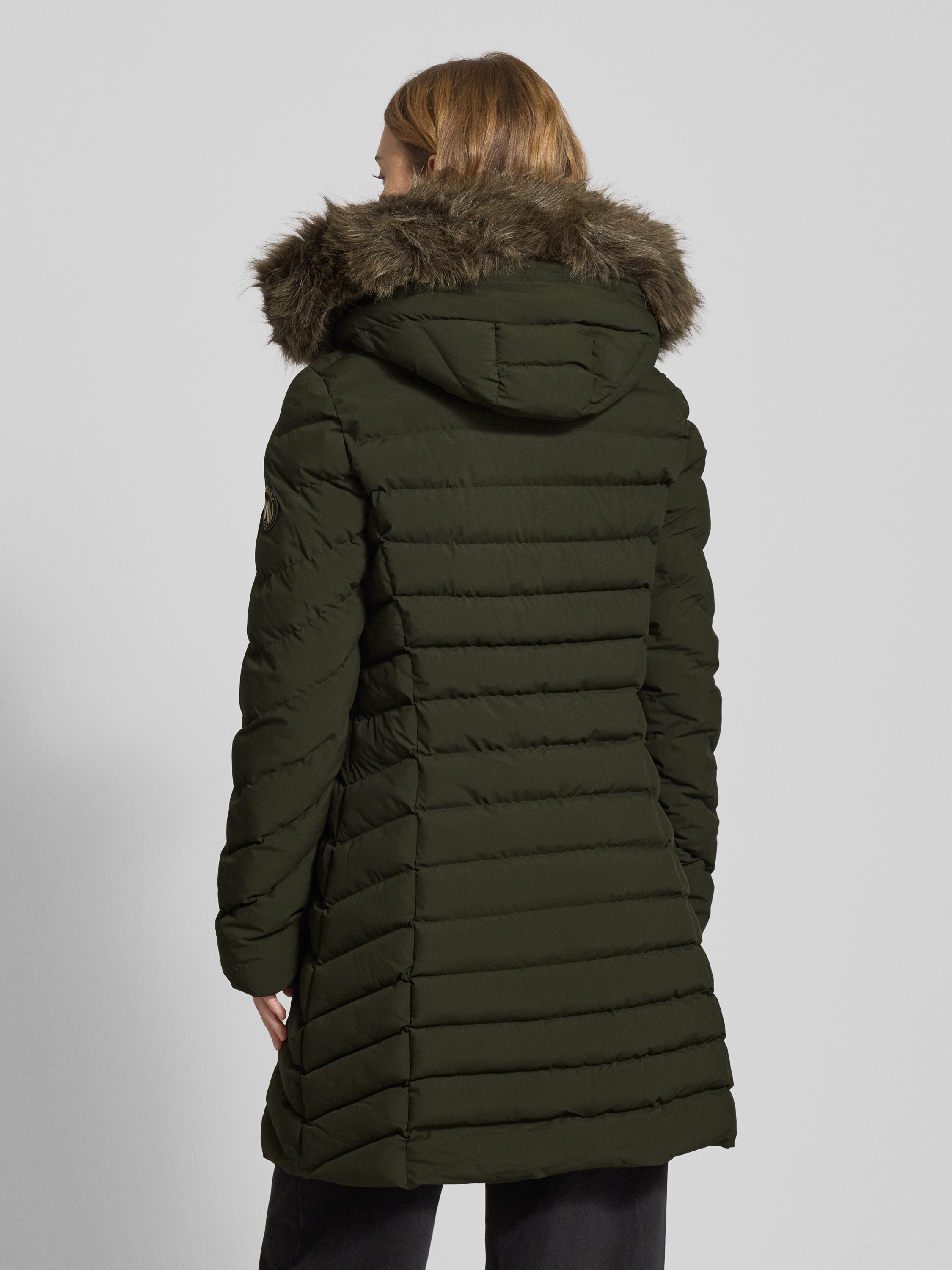 Płaszcz pikowany o kroju regular fit z obszyciem ze sztucznego futra model ‘Fuji’ - oliwkowy