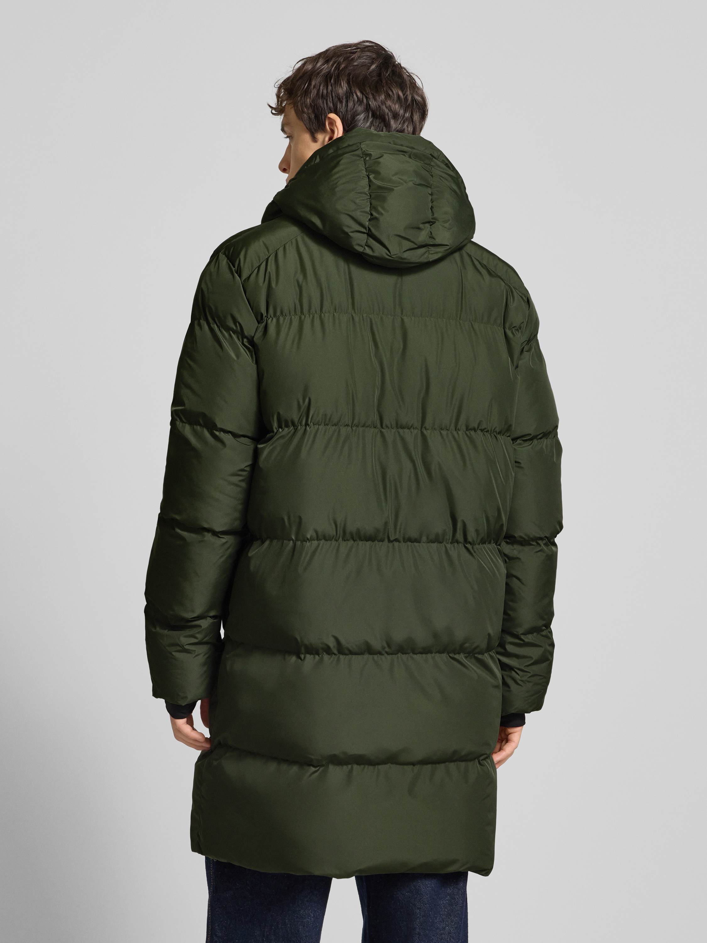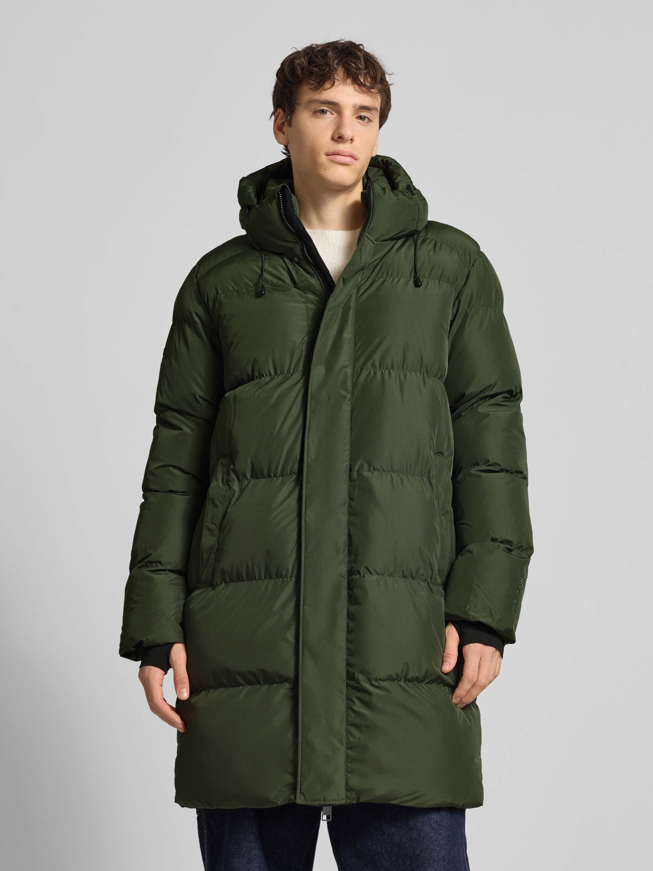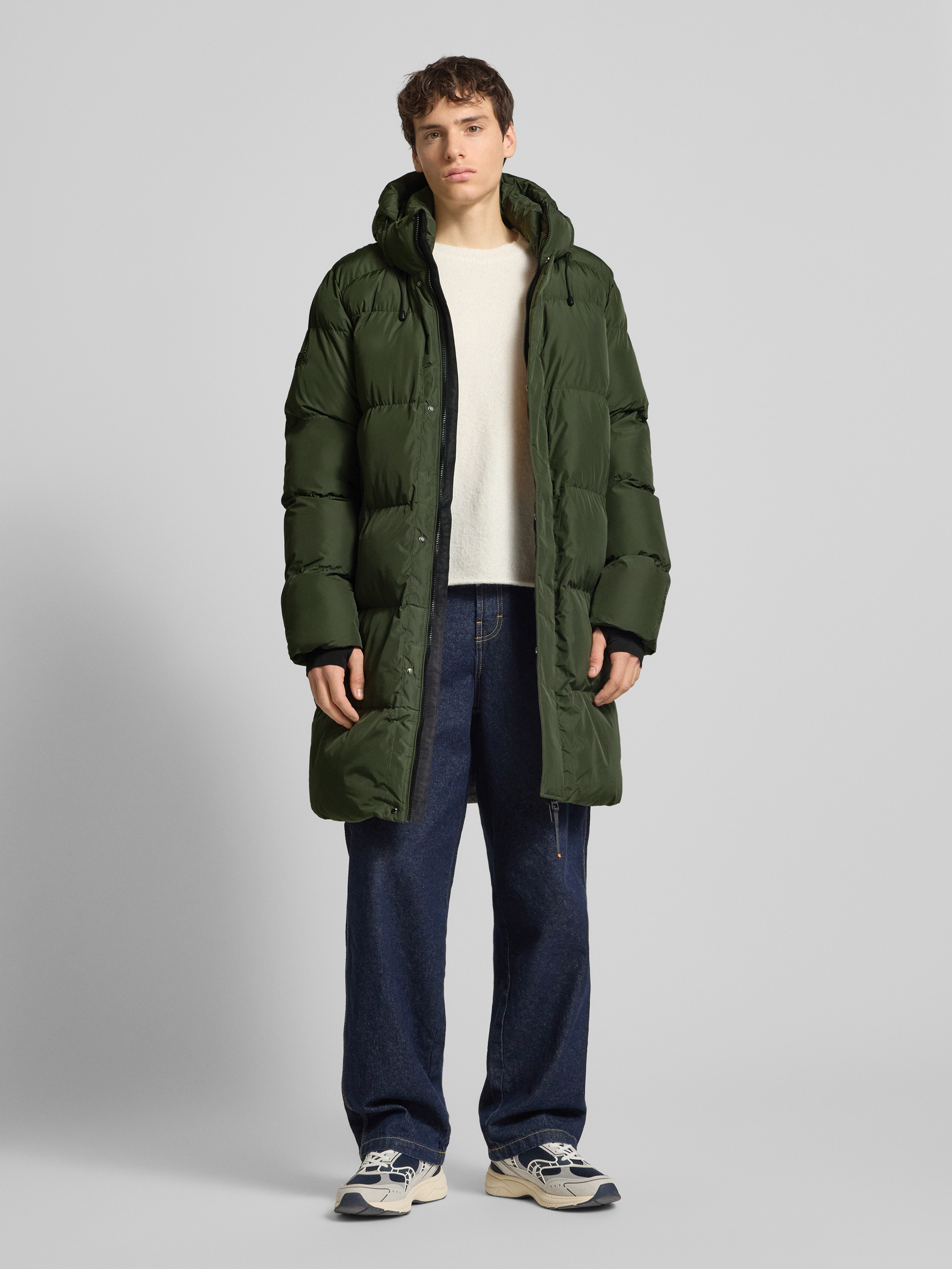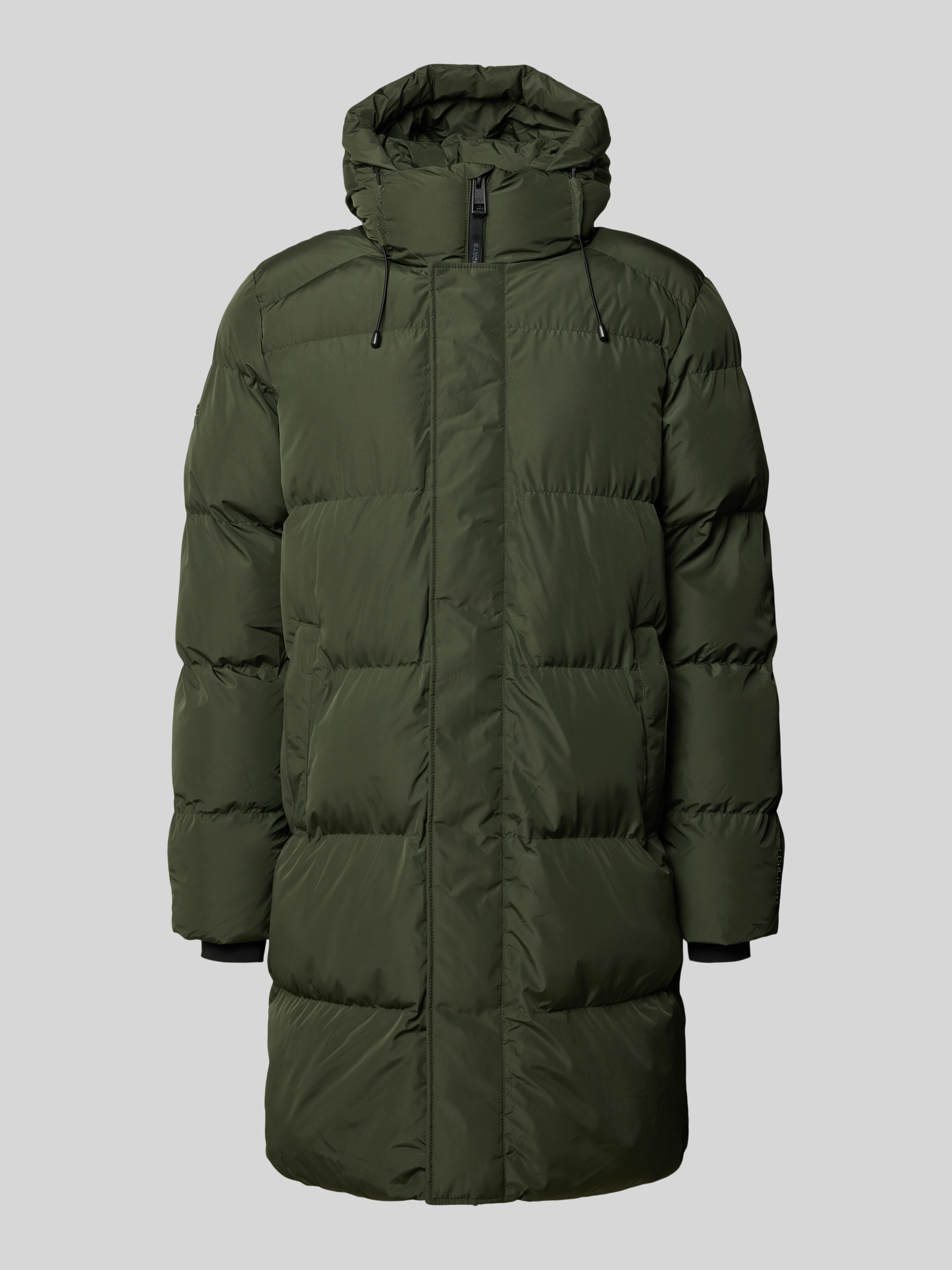 Płaszcz pikowany z kapturem i dwustronnym zamkiem błyskawicznym - oliwkowy
