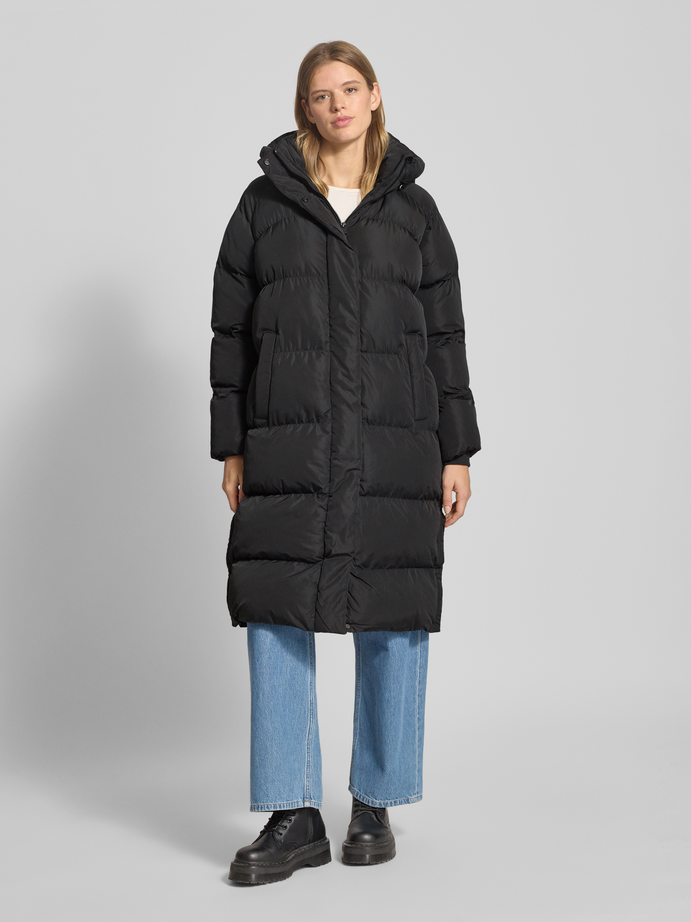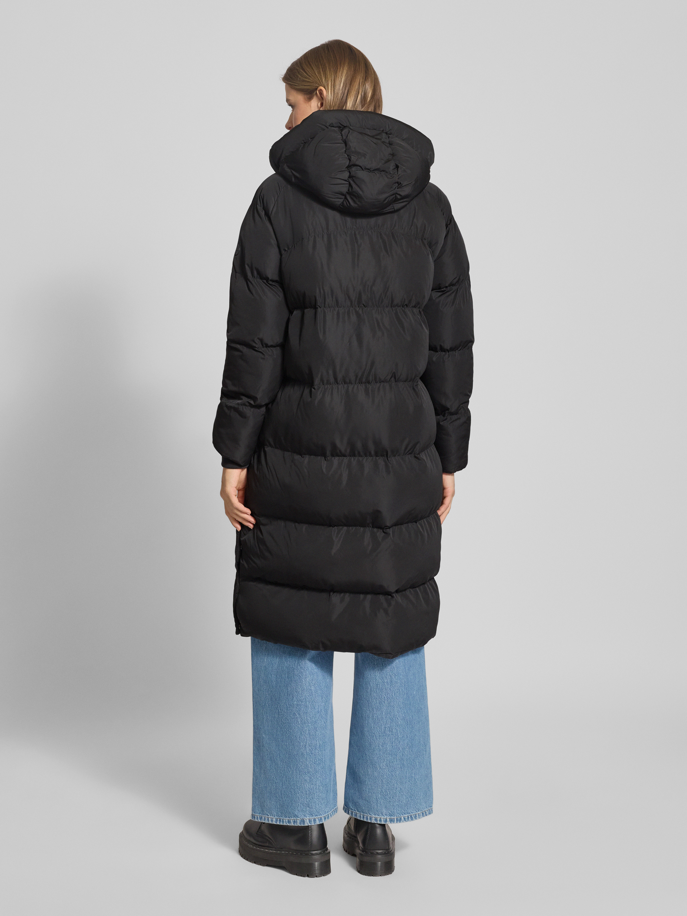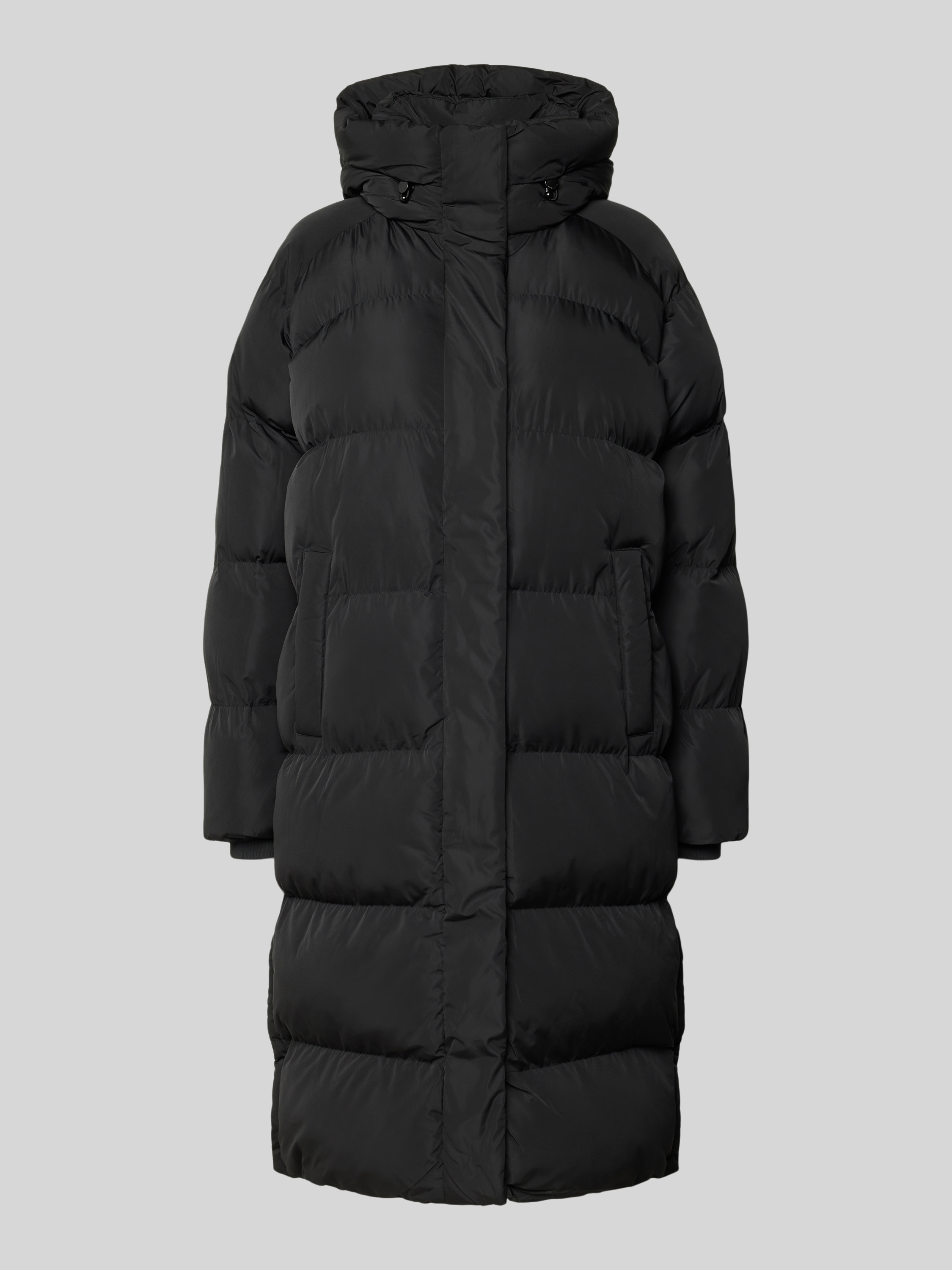 Płaszcz pikowany z kapturem i wpuszczanymi kieszeniami - czarny