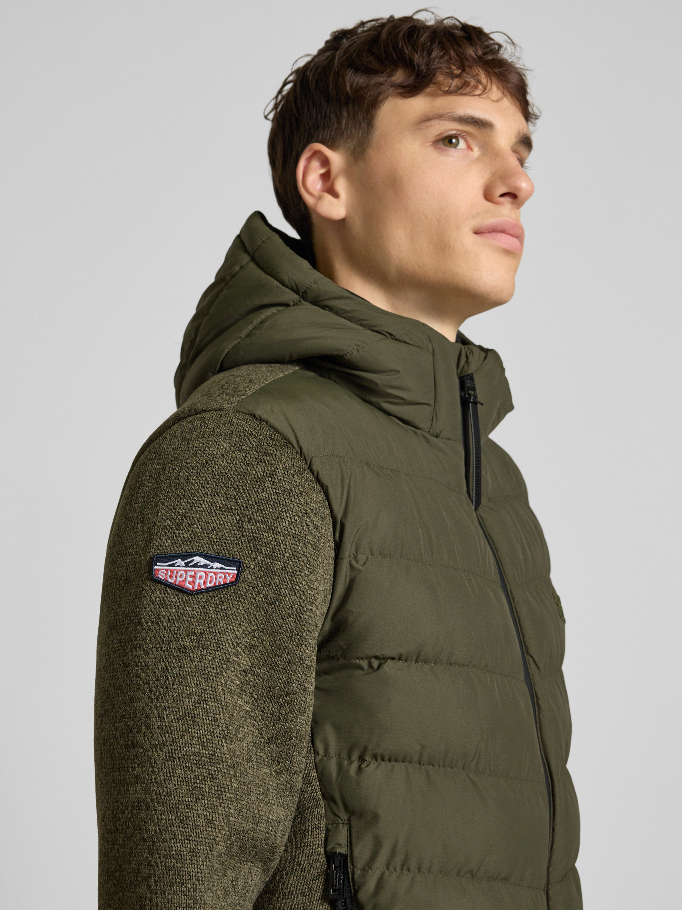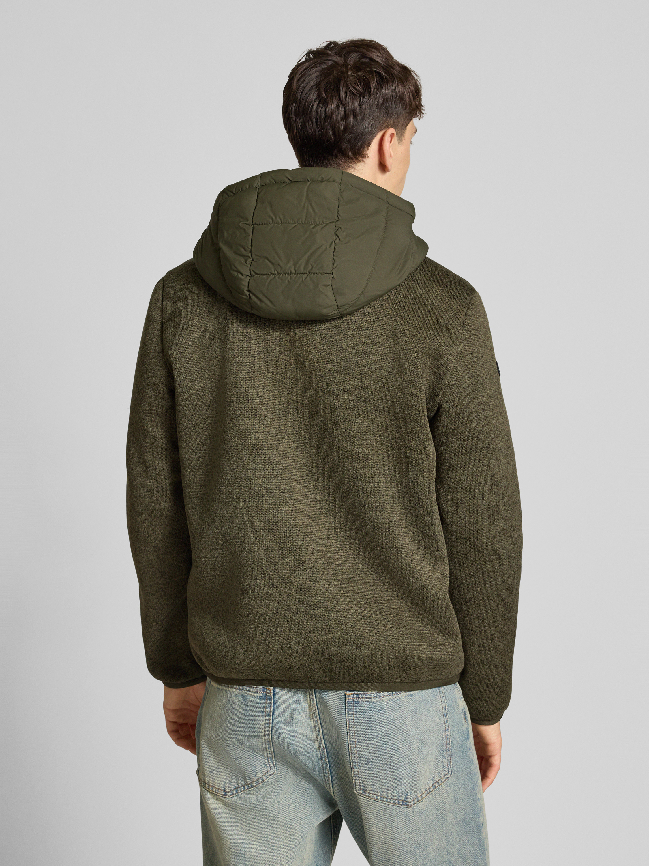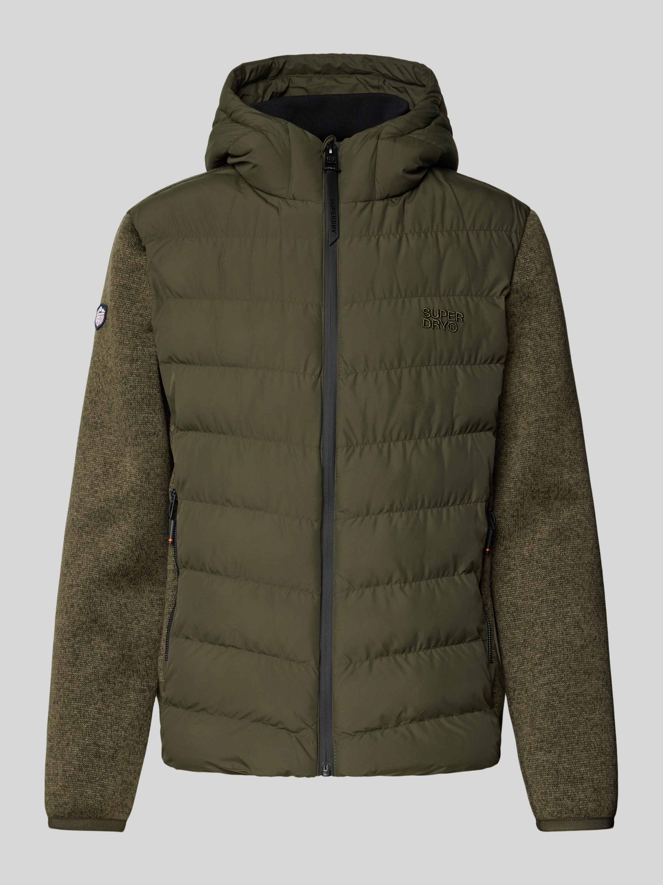 Pikowana kurtka z kapturem i kieszeniami zapinanymi na zamek błyskawiczny - khaki