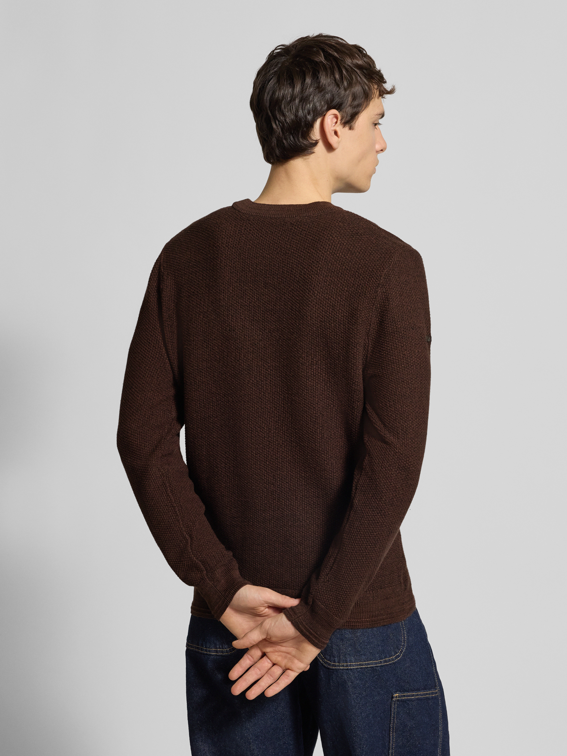 Sweter z dzianiny z prążkowanymi wykończeniami - ciemnobrązowy