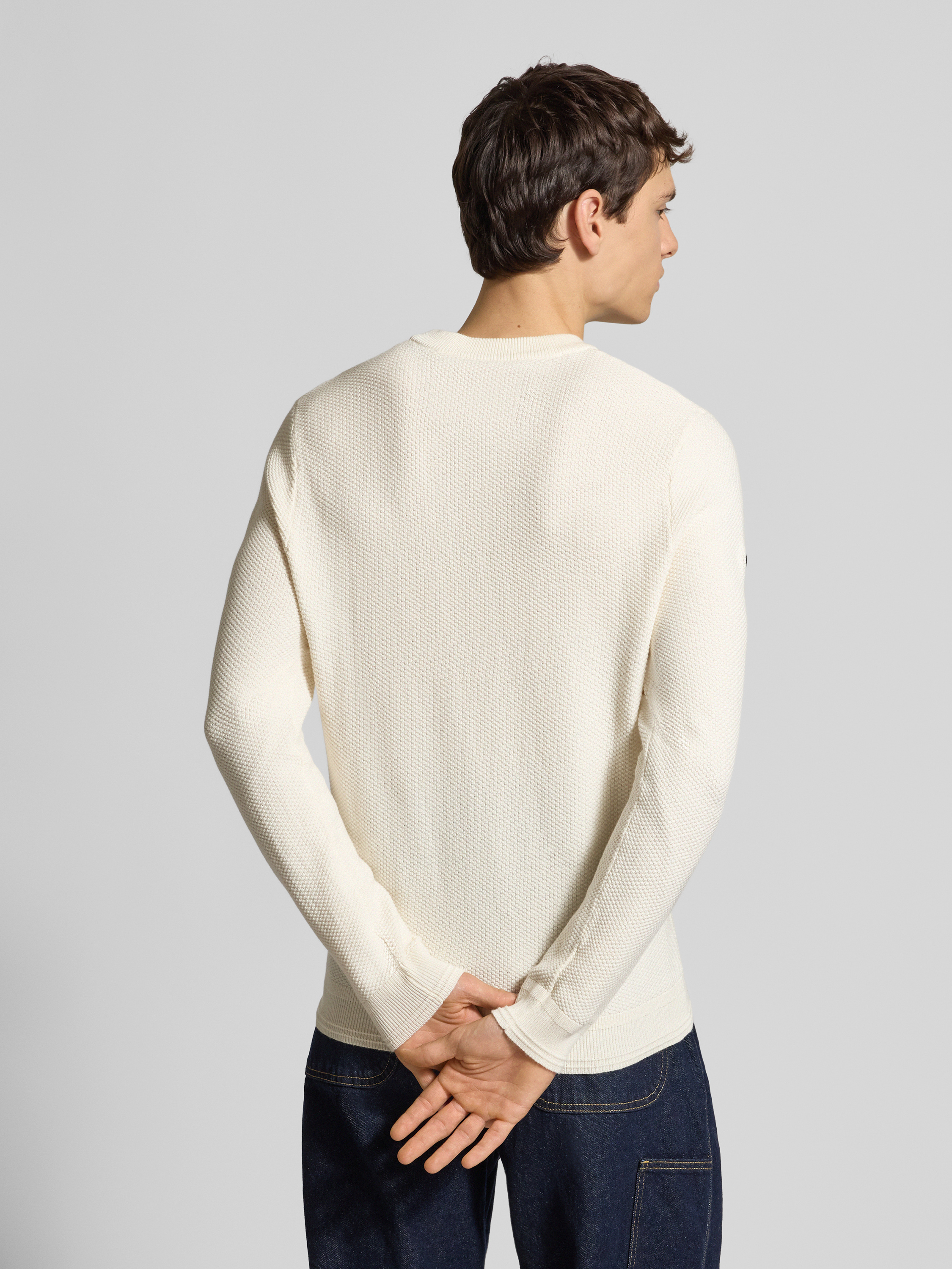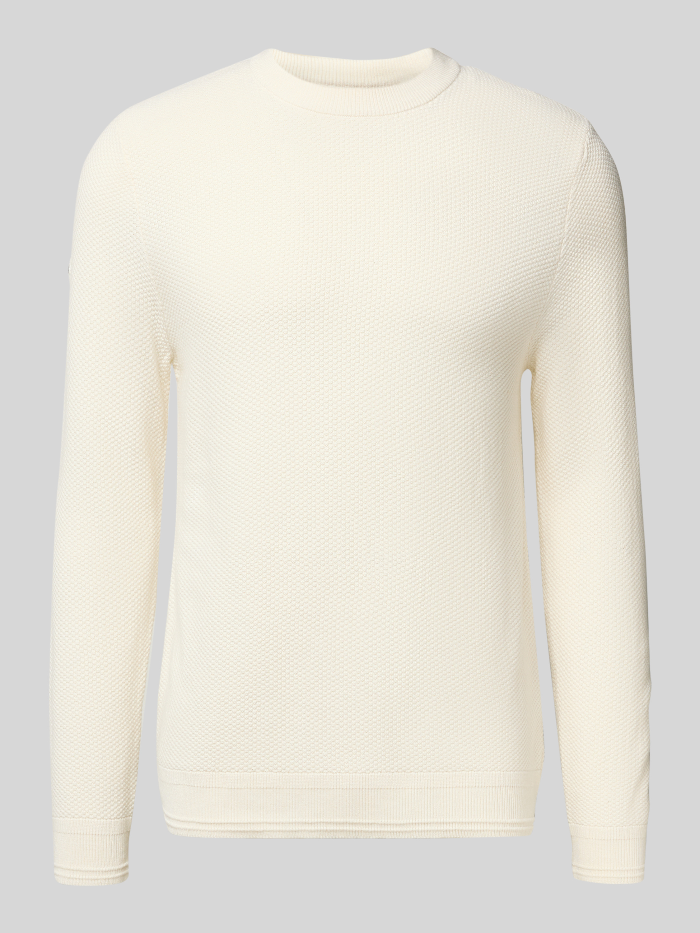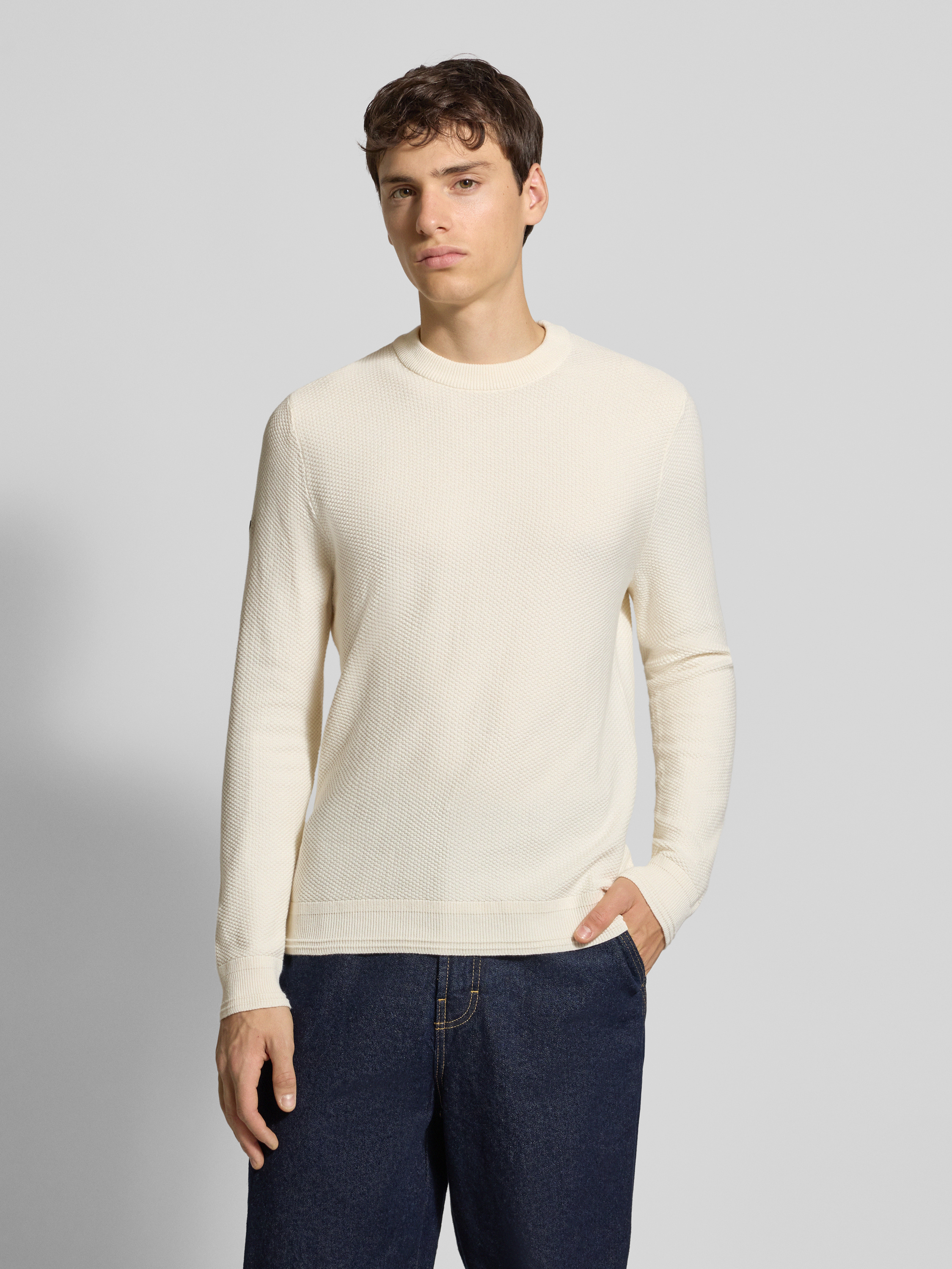 Sweter z dzianiny z prążkowanymi wykończeniami - złamany biały