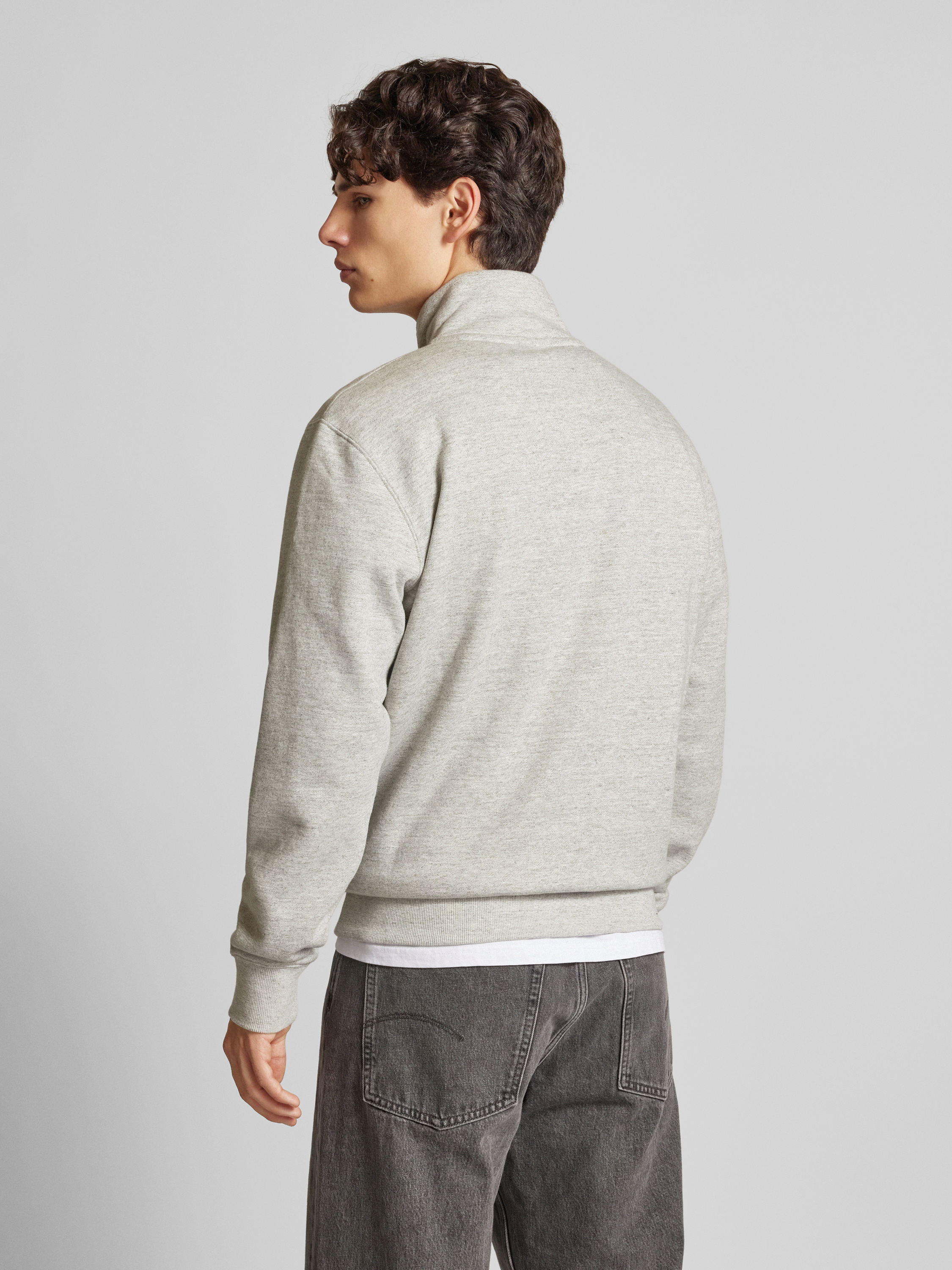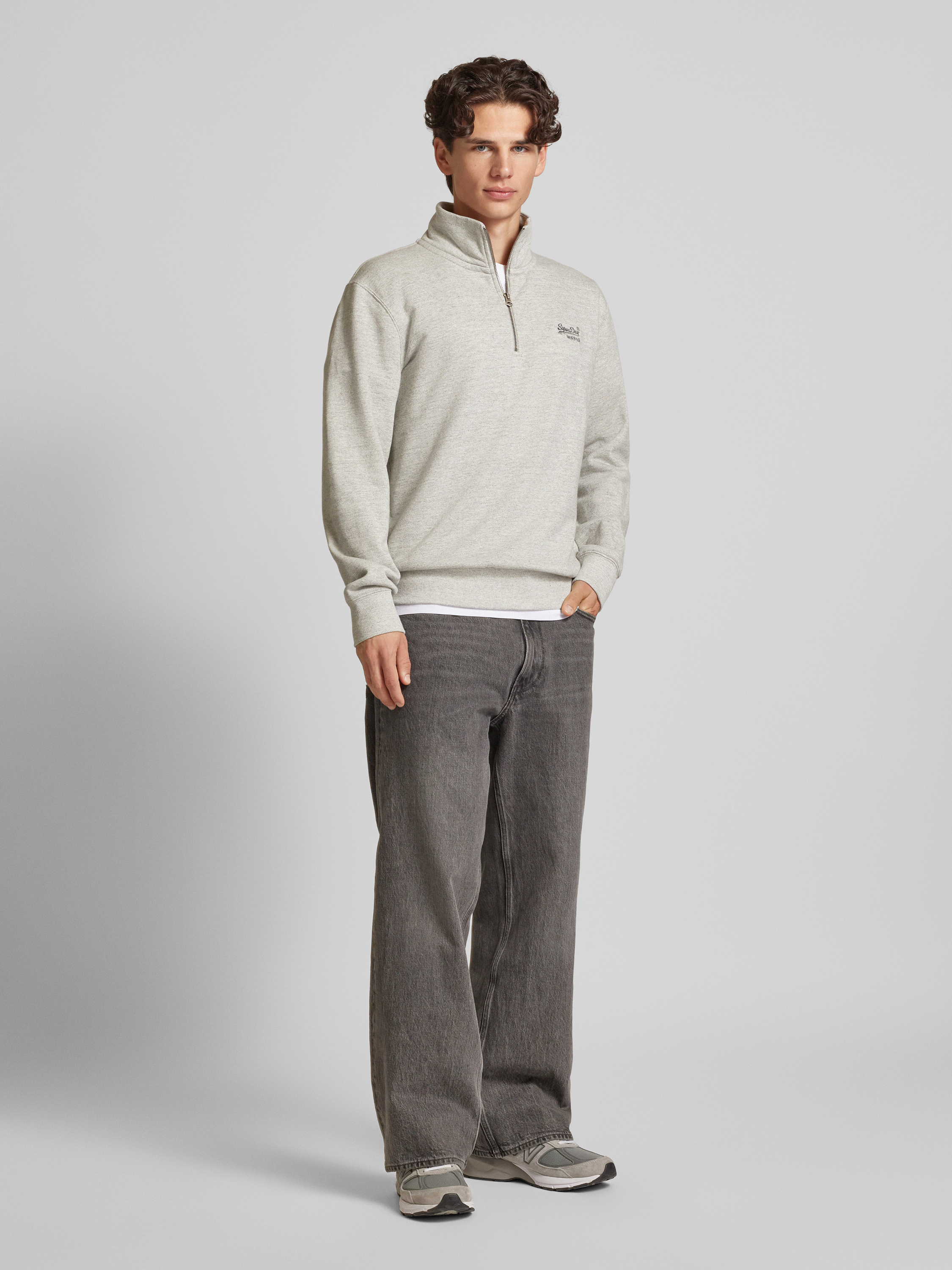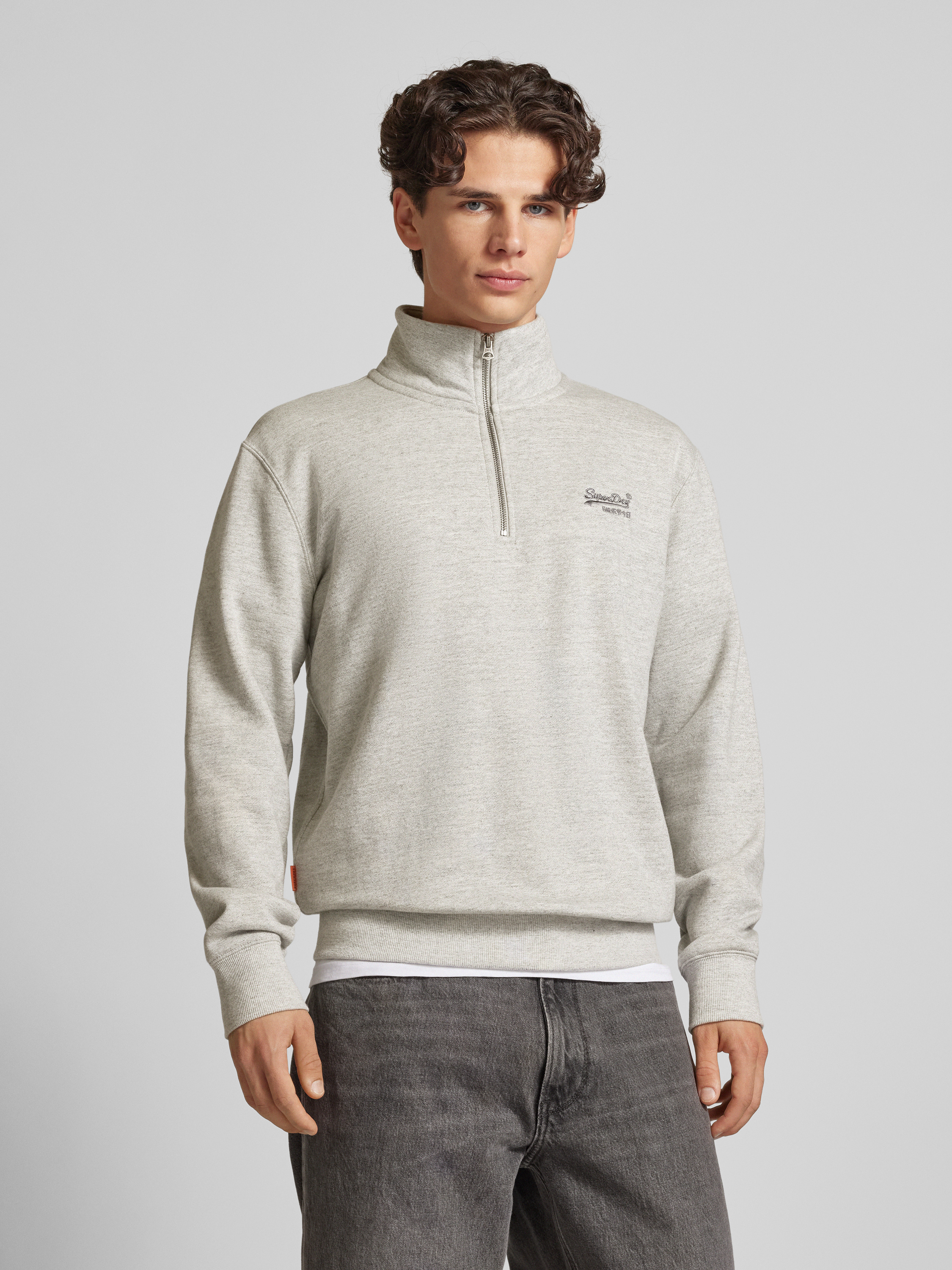 Sweter z kołnierzem i wyhaftowanym logo model ‘Essential’ - jasnoszary