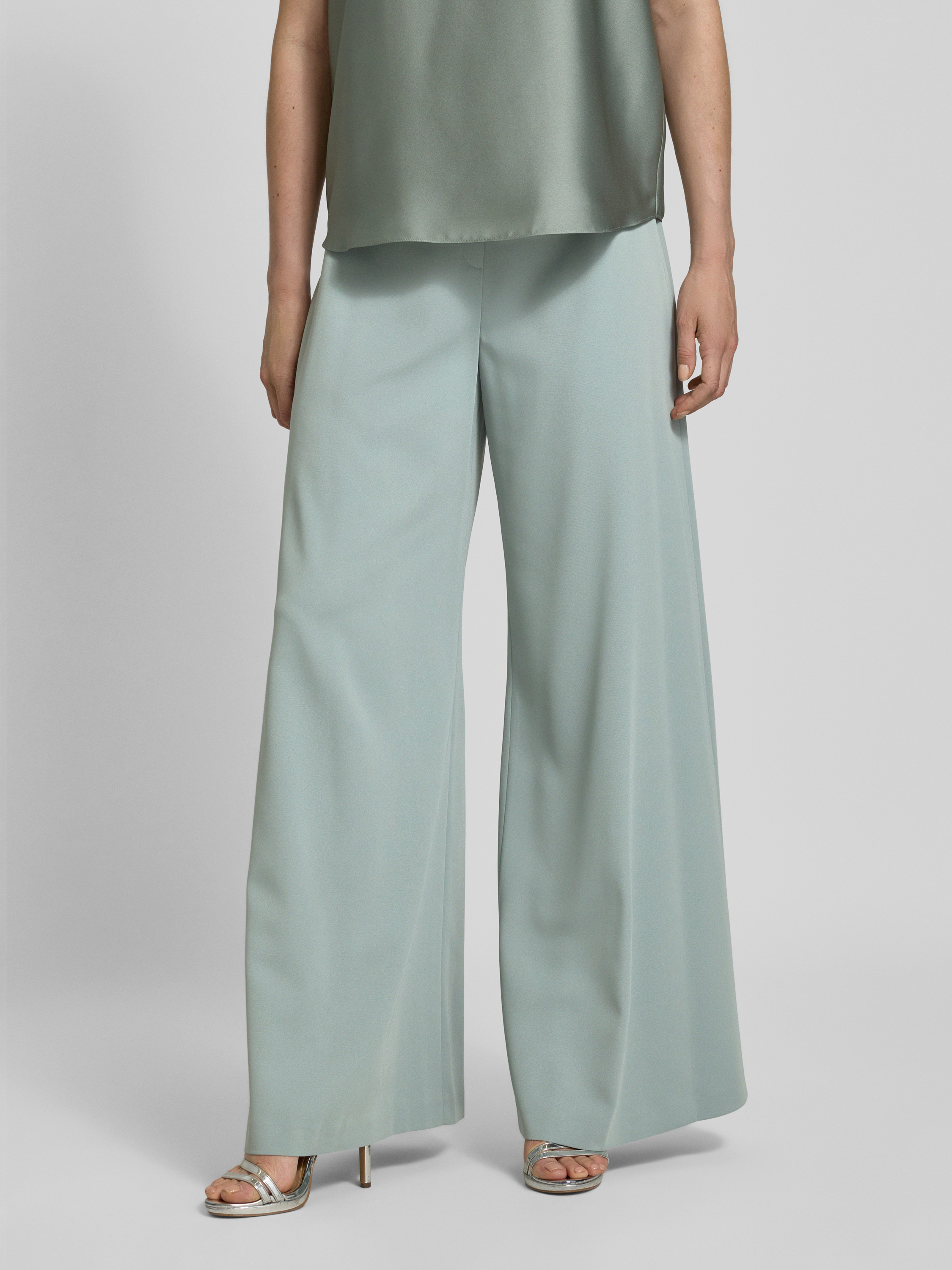 Spodnie materiałowe z szeroką nogawką i elastycznym pasem - limonkowy